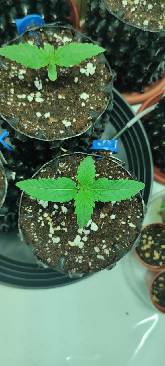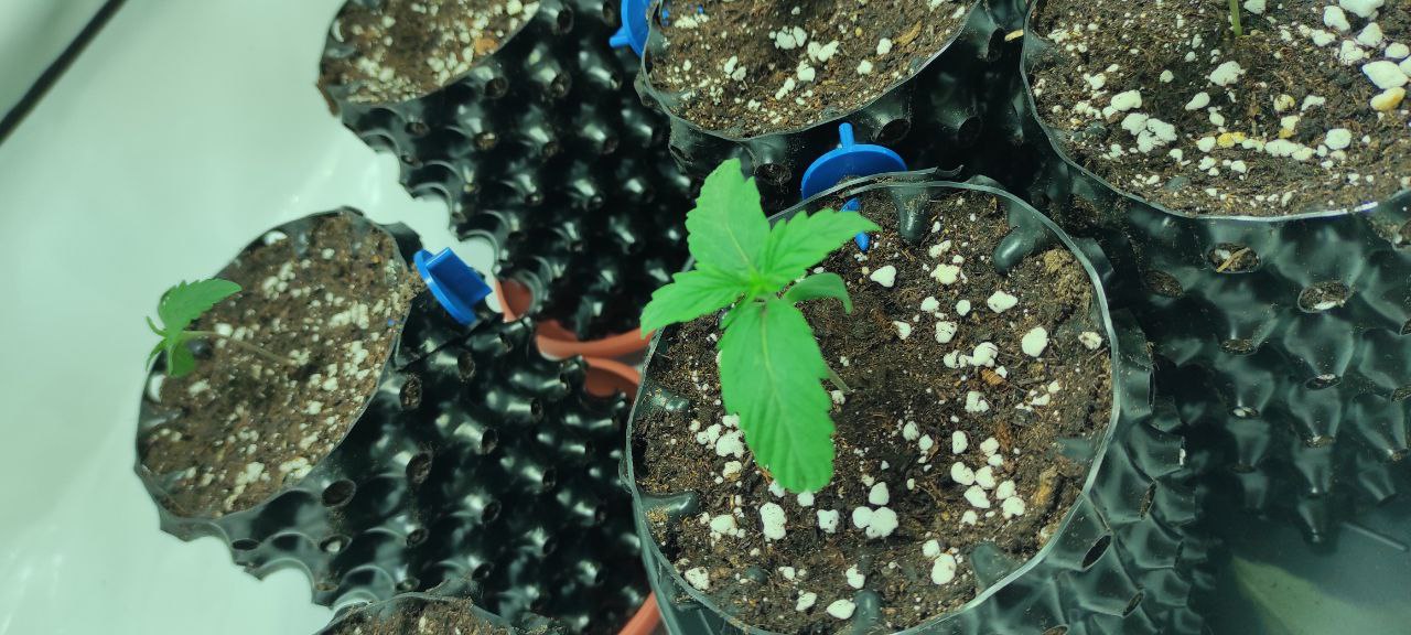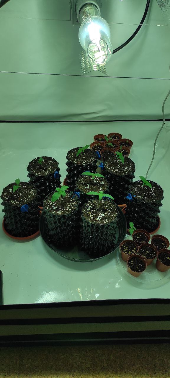 Die die unten am Topf schon die ersten Wurzeln zeigen werden heute oder morgen direkt in die 1l AirPots getopft, auch ne gute Übung