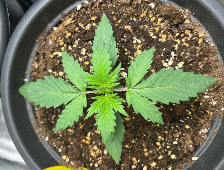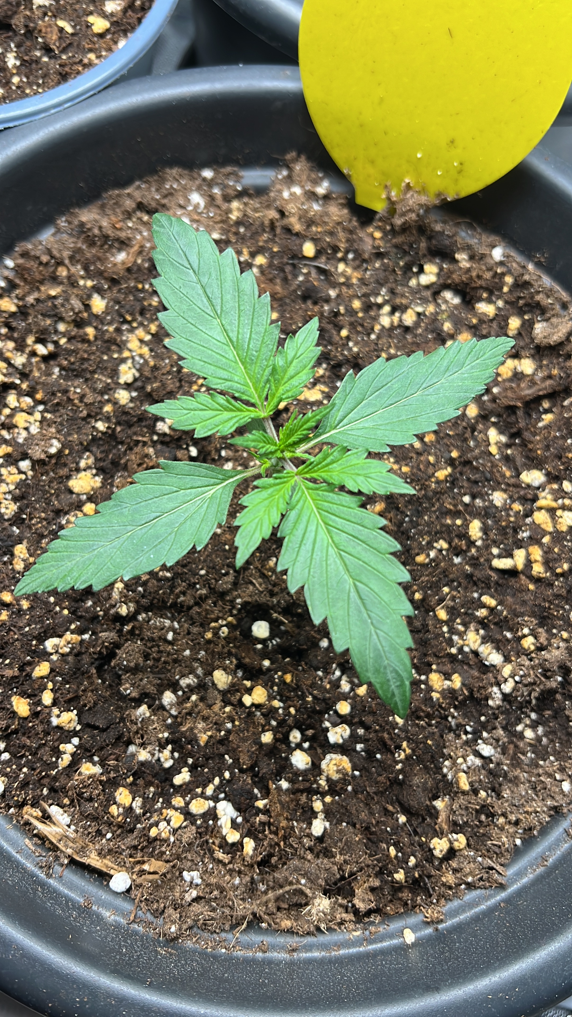 so, da nun die ersten 5-Finger Blätter ausgebildet sind habe ich mich mal an das Düngen gewagt. Gedüngt wurde heute mit Bio-Grow von BioBizz 1ml pro Liter Leitungswasser.