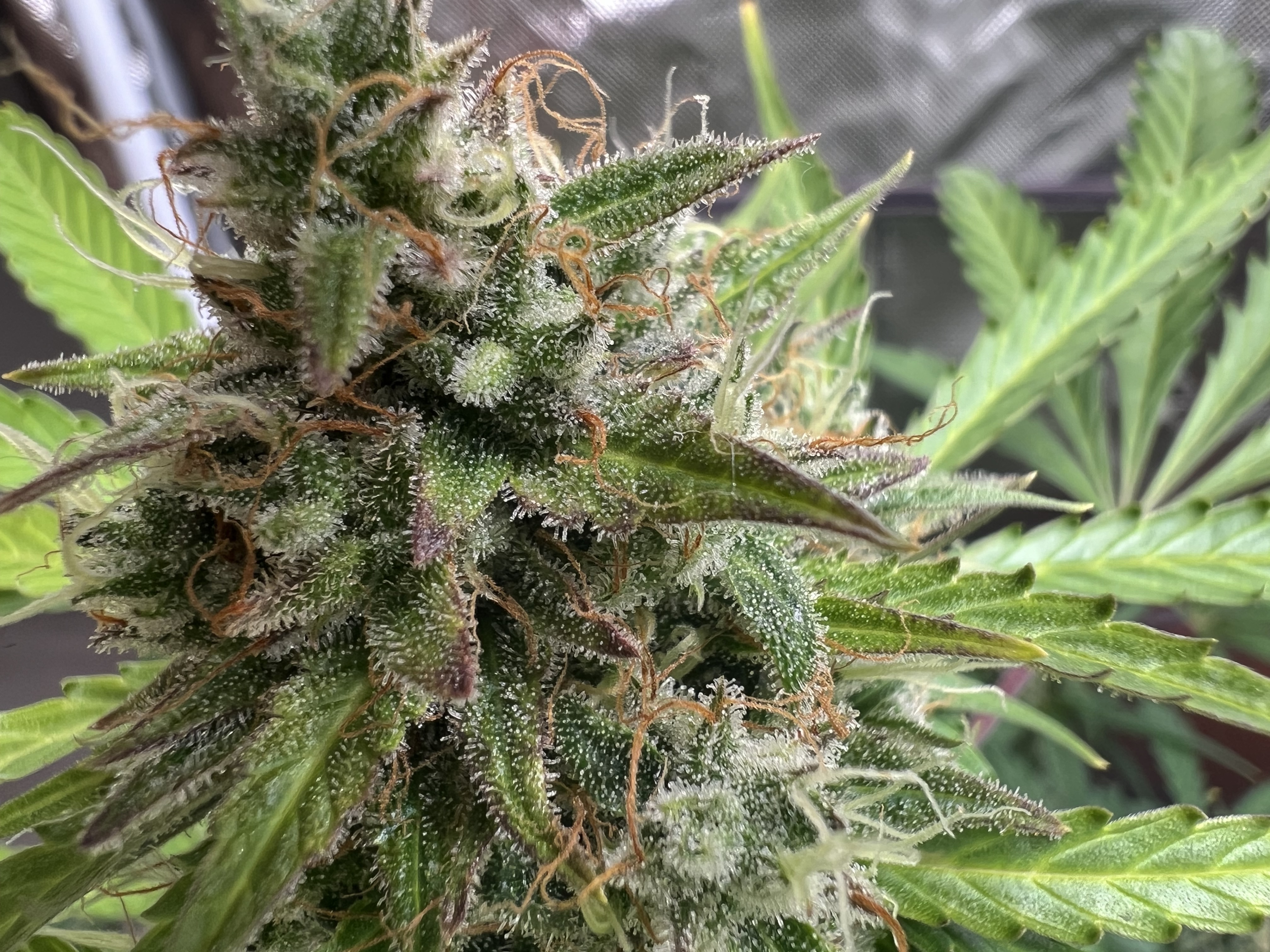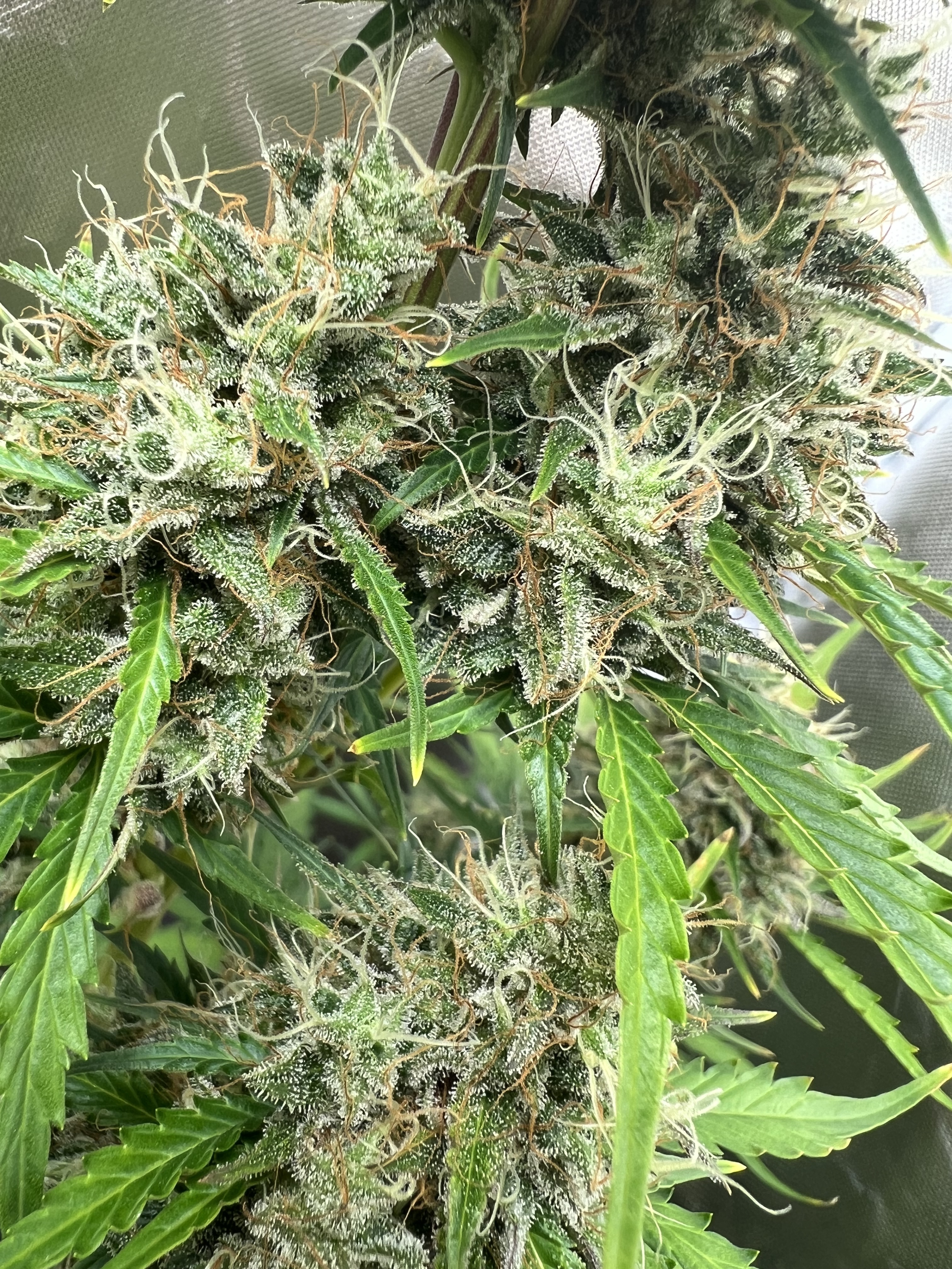 Ich denke noch 2 Wochen dann sind sie erntereif. Möchte 80% milchig und 20% Bernsteinfarbige Trichome.