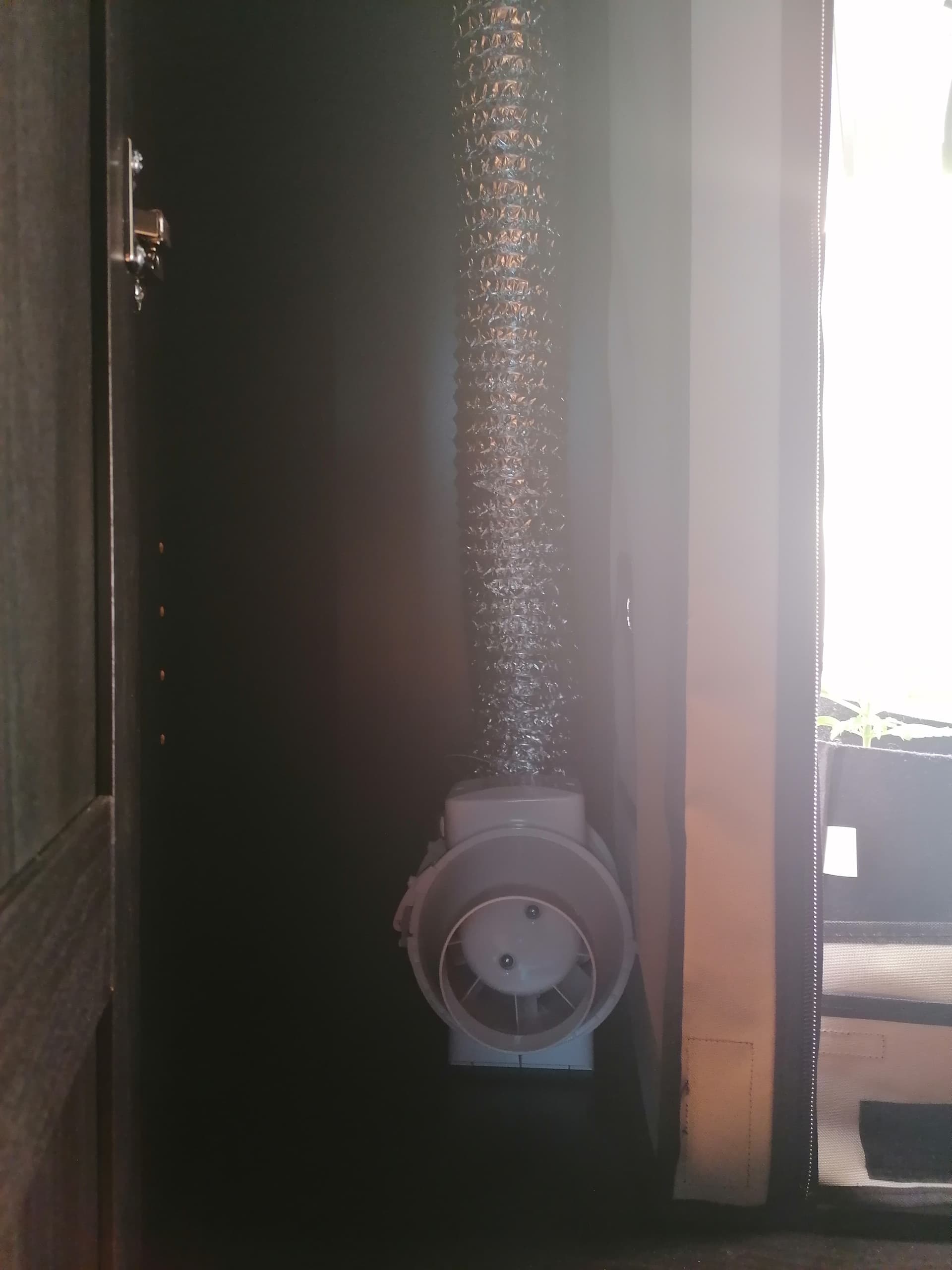 Hier mal 2 pics Aufbau meines Zeltes. AKF drin mit Schlauch raus und dann das Teil mit dem Abluft Venti ganz am Ende montiert, steht neben dem Zelt im Kleiderschrank ![]()