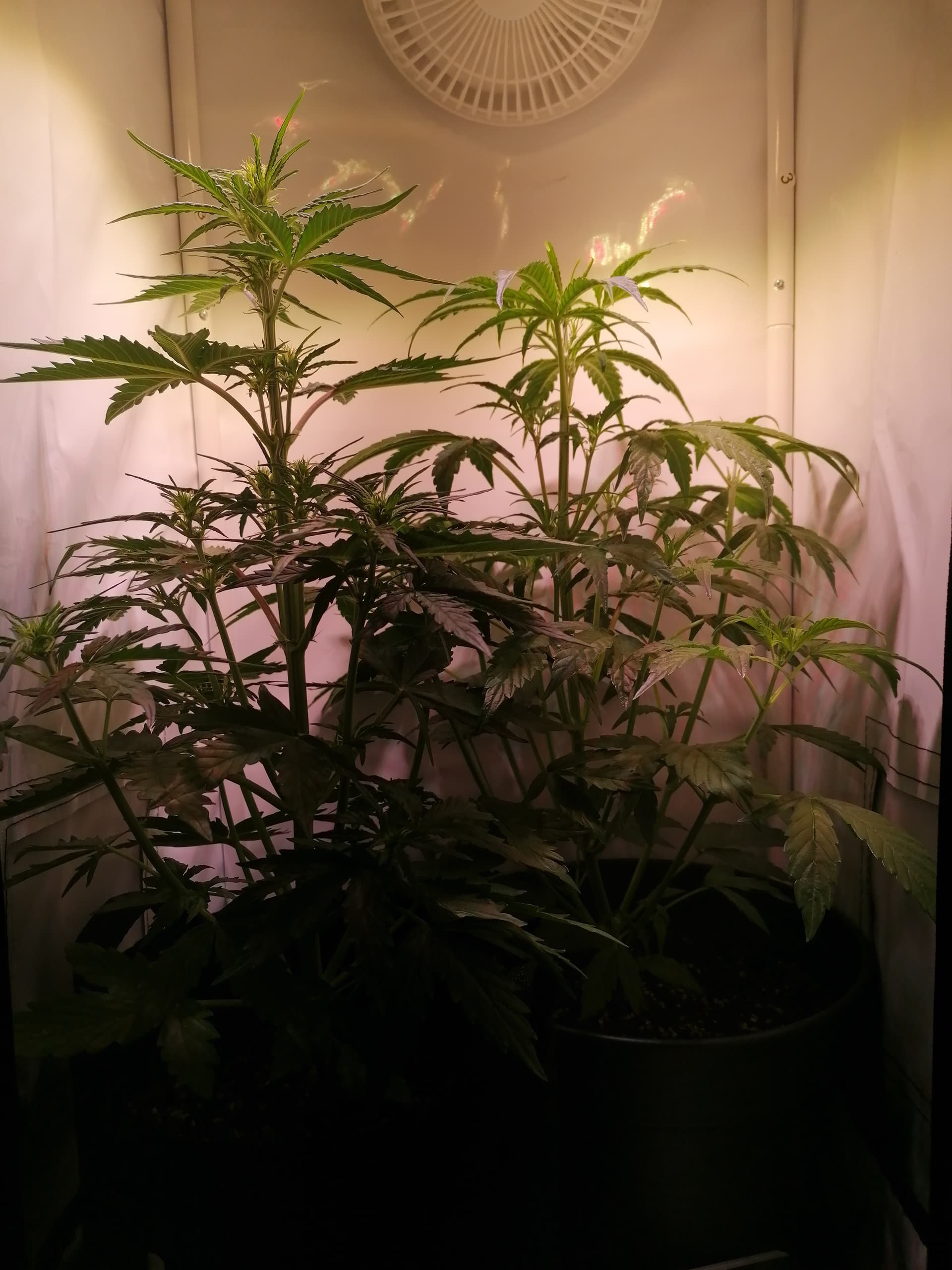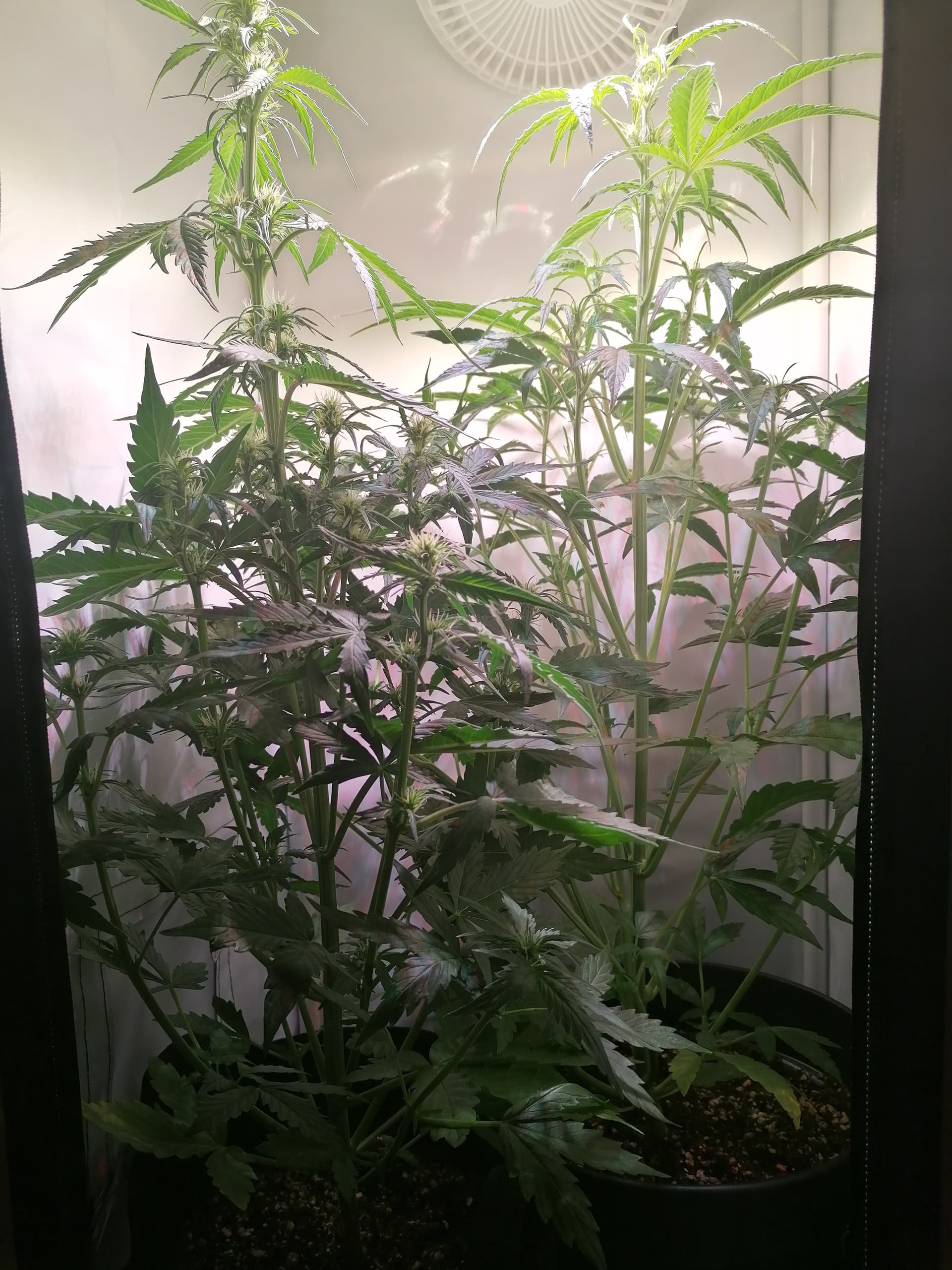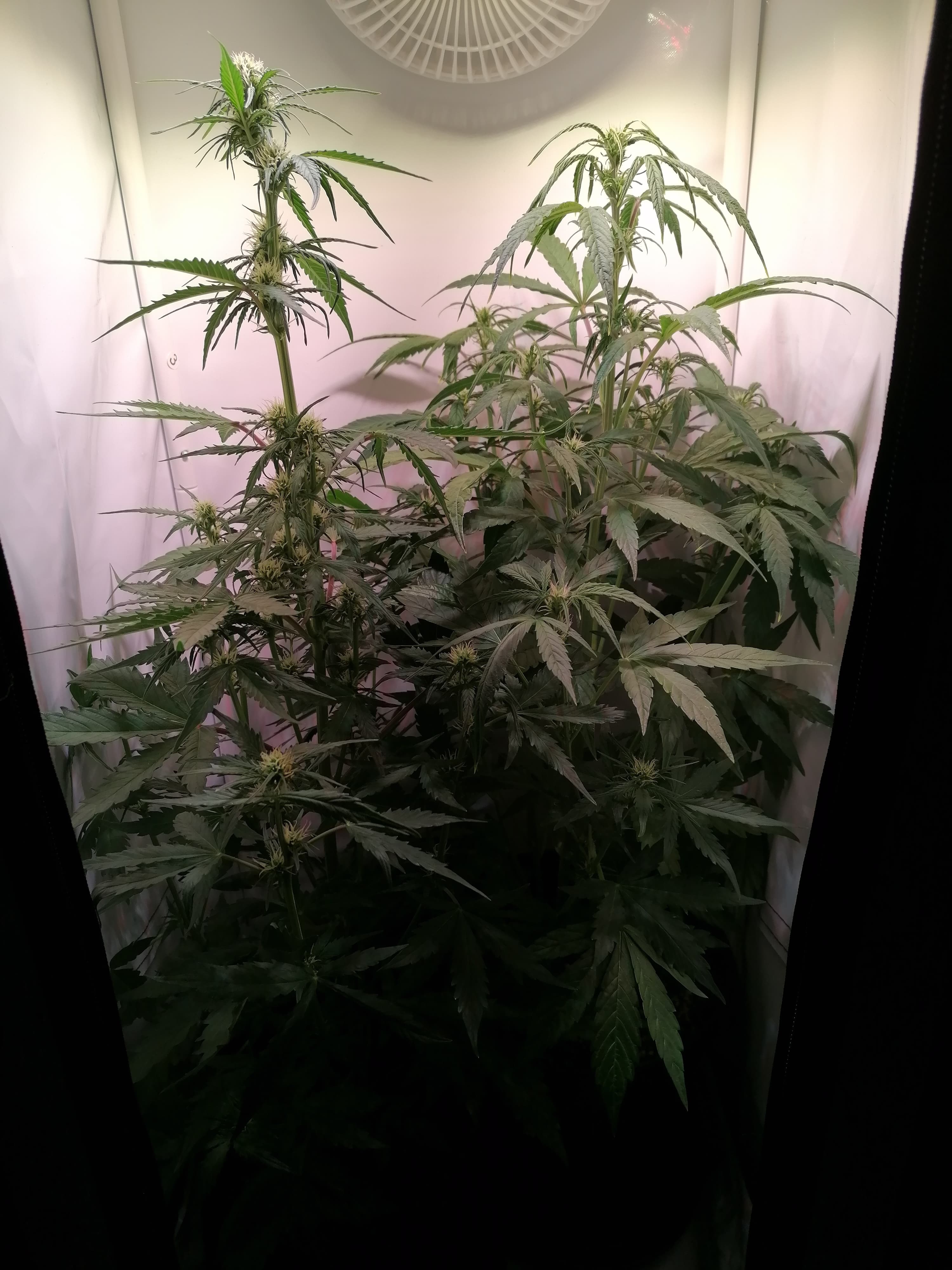 Die wachsen immer noch, sind jetzt 67 und 64 cmtr hoch und sondern einen gewöhnungsbedürftigen Geruch zwischen Fisch, Kuhdung und leckeren Cannabis Blüten aus ![]()