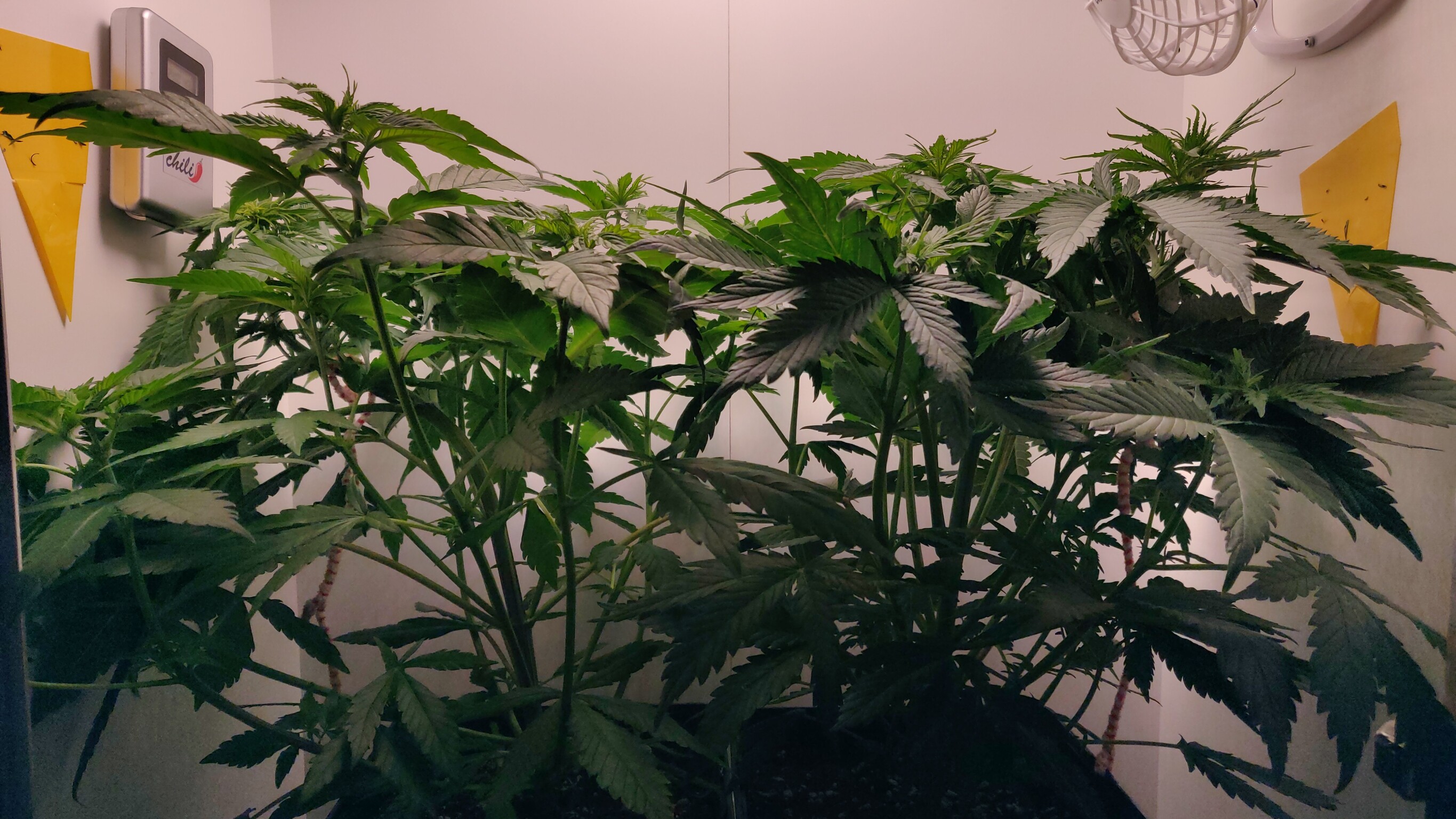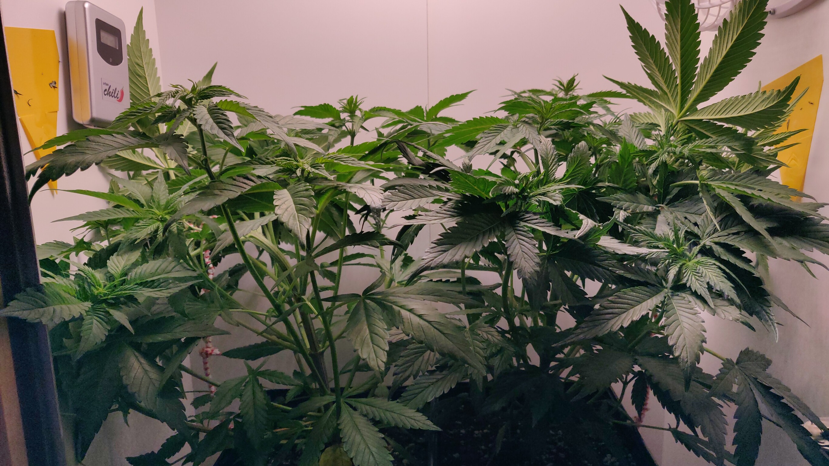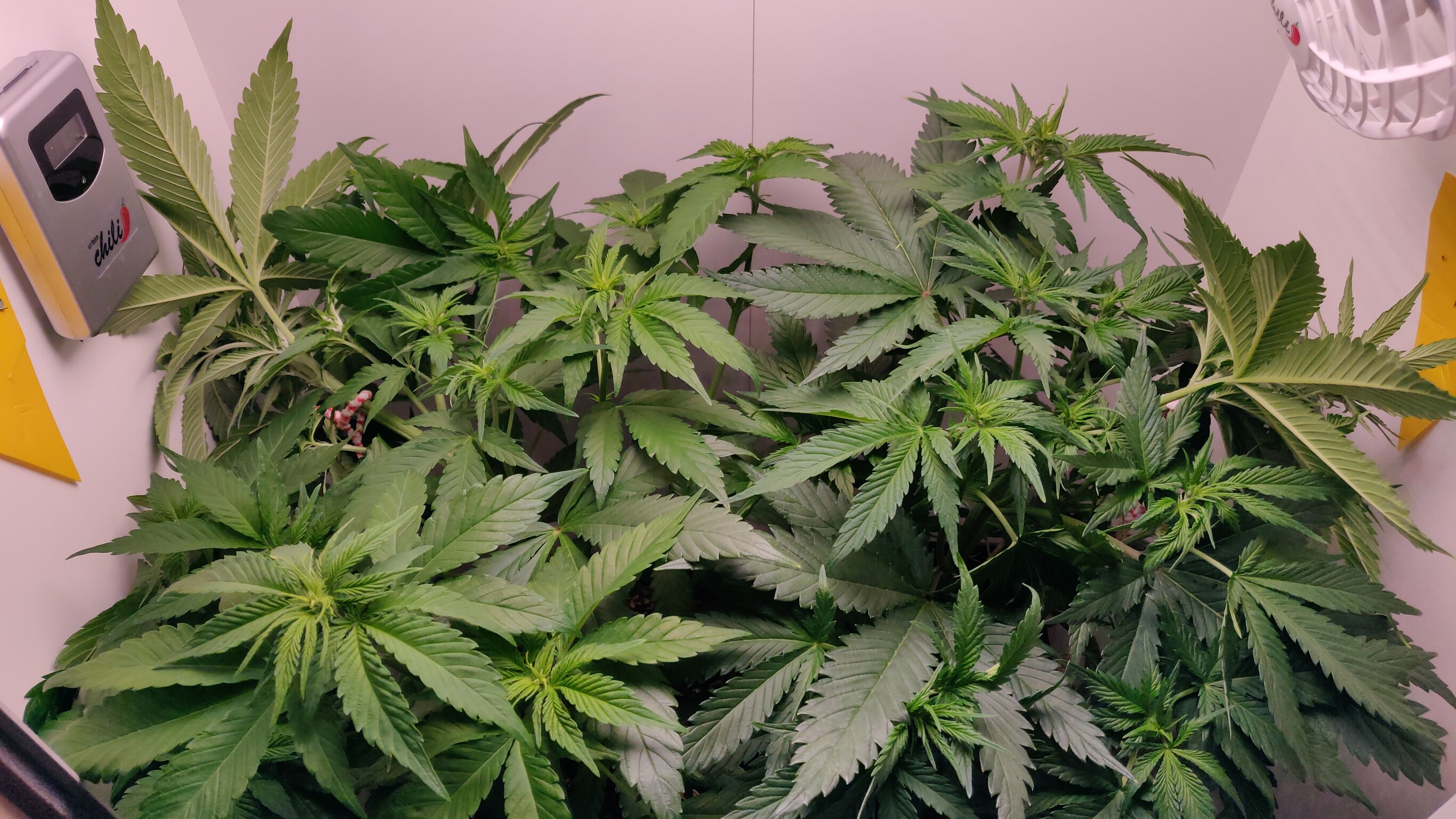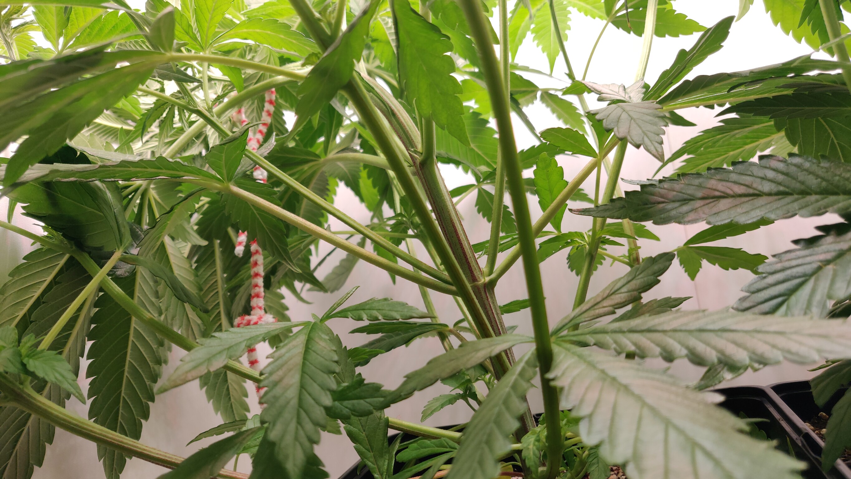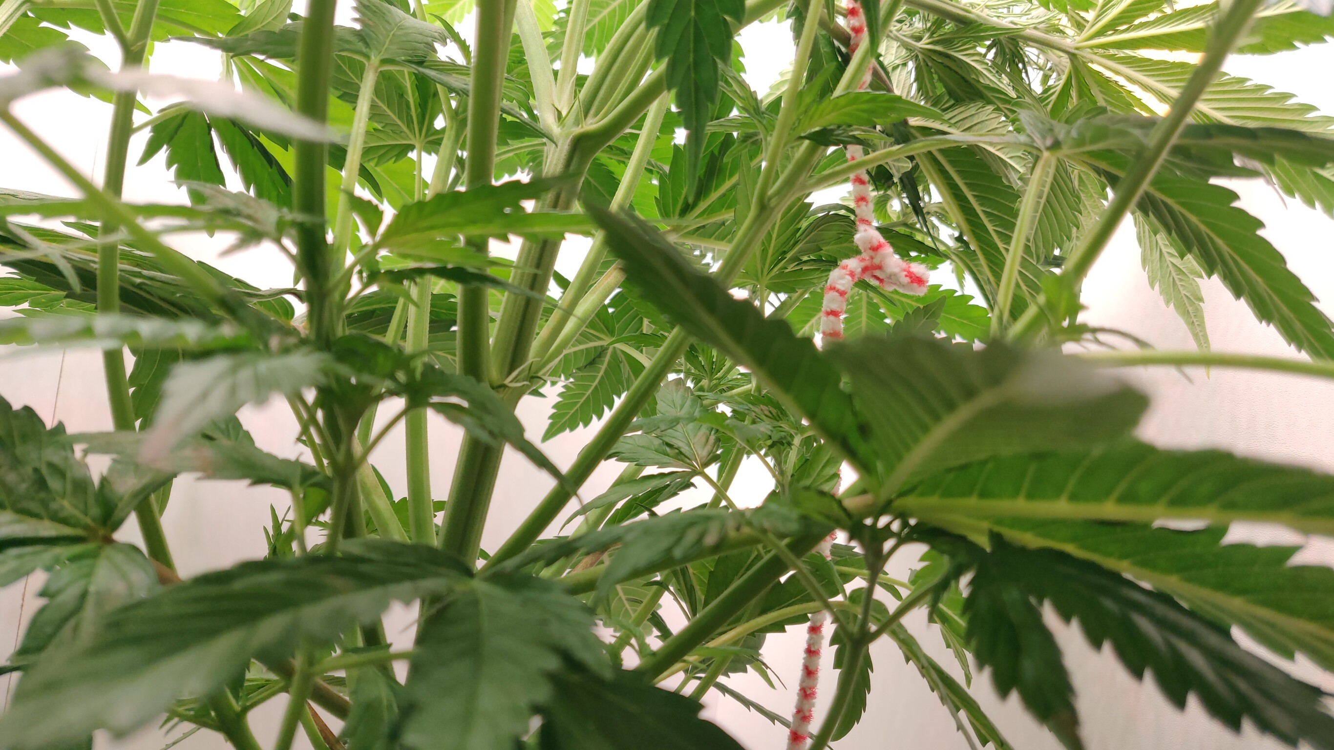 Insgesamt sind sie jetzt 10cm niedriger als vorher. Da ist schon Kraft auf den Pfeifenreinigern Ich hoffe, dass sie nicht abbrechen oder die Buds an den Bindestellen schädigen wenn die Pflanze strecht.