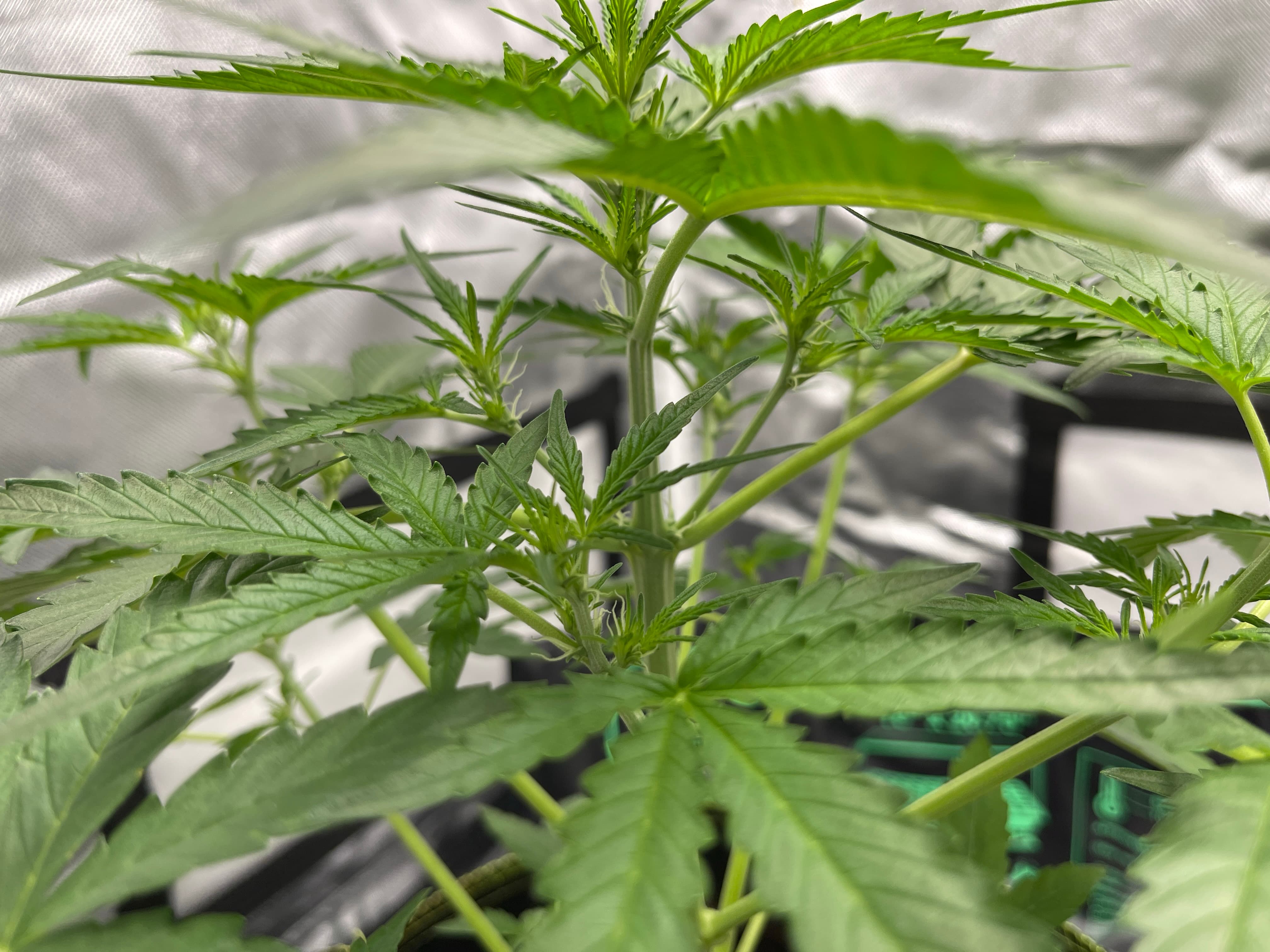 Wechsel von MarsHydro TS1000 zu SanLight EVO 3-80. Ich habe auch die Mimosa höher gestellt, da sie sonst sehr wenig Licht abbekommt. Lichtintensität laut Photone App: ~600umol
