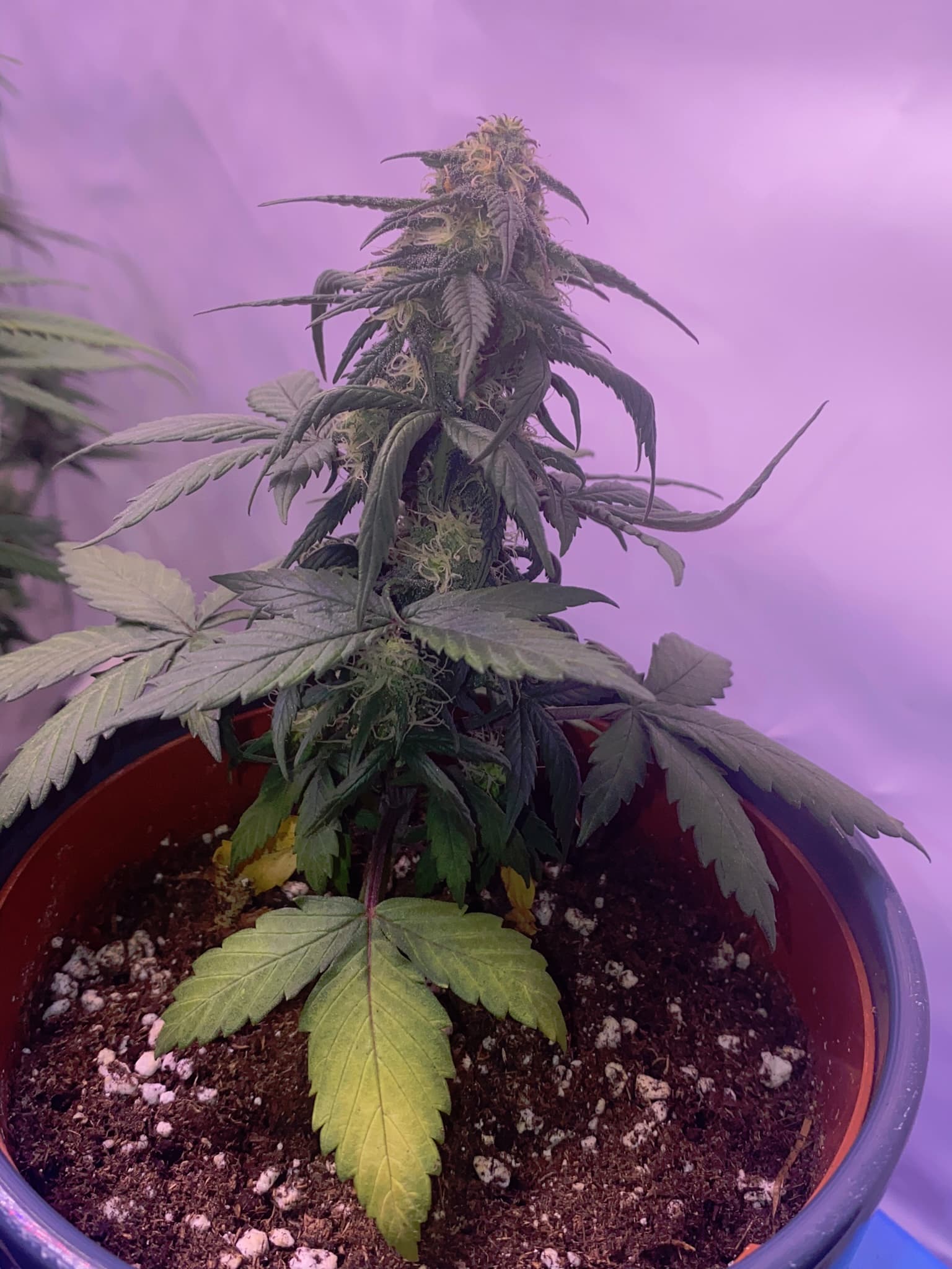 Hab zwischendruch nen Steckling von der WW genommen, leider Trauermückenbefall alles entsorgt , die Orangexxl war vor dem Steckling in nem 11 L Topf ca seit 5 Tagen gekeimt , kam dann in den kleinen Topf und einfach dazu gestellt. Topf dient jetzt als erhöhung , wollte die damals nicht wegwerfen.