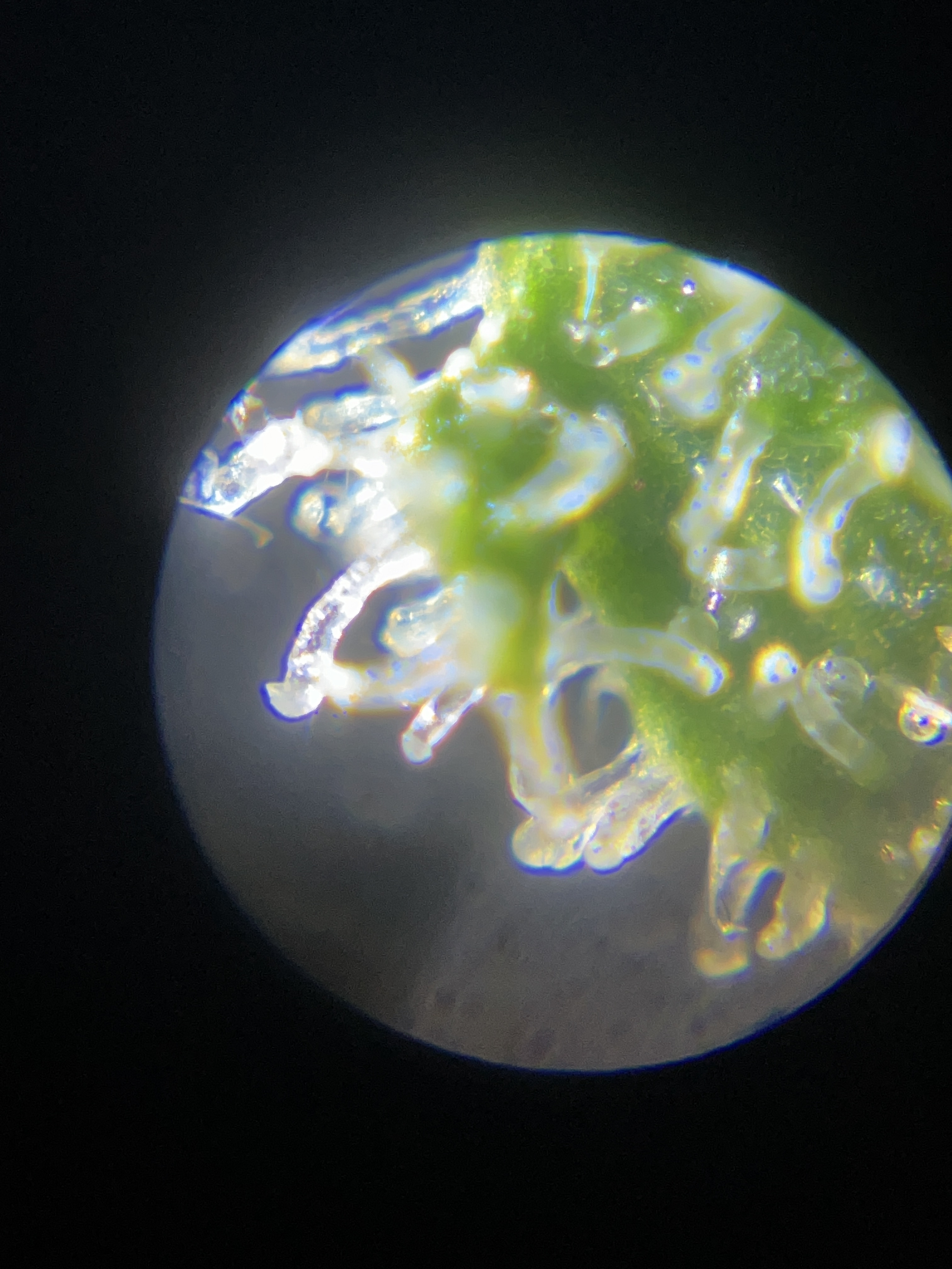 Ich komme der Ernte immer näher und hab mir von einem Kumpel ein Mikroskop ausgeliehen, weil ich mir irgendwie noch keinen selber gekauft habe und wollte mal fragen was eure Vermutungen sind wie lange die Damen noch brauchen wird bis ich sie ernten kann. Für mich sehen die trichome noch recht durchsichtig bis weiß aus wenn ich mich nicht täusche.