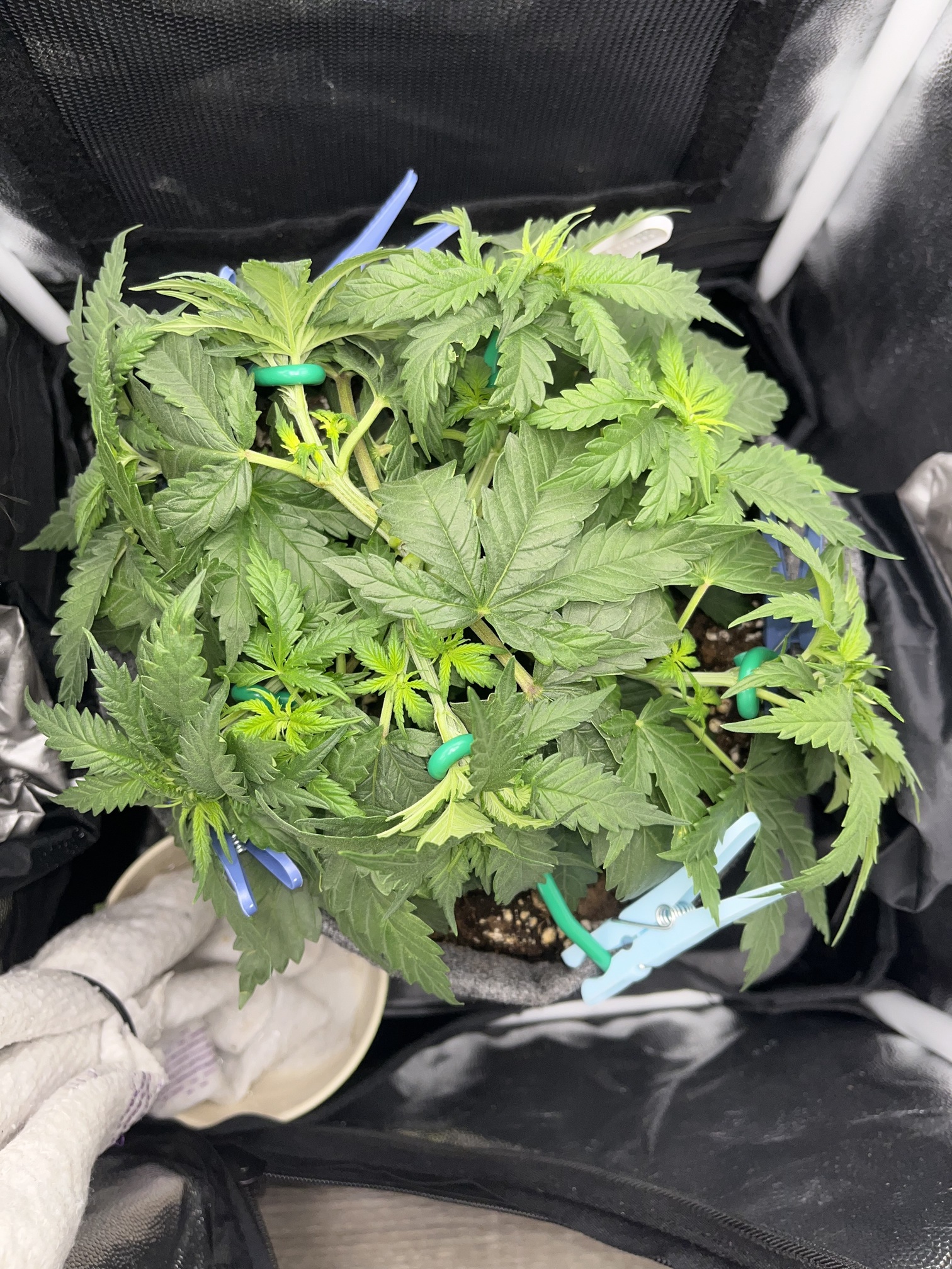 Durch das Entfernen einiger Blätter kann die Pflanze ihre Energie und Nährstoffe von der Aufrechterhaltung großer Fächerblätter auf die Entwicklung von Blüten umleiten. Dies kann möglicherweise zu größeren und potenteren Blüten führen, da die Pflanze ihre Ressourcen eher auf das reproduktive Wachstum als auf das vegetative Wachstum konzentriert (FloraFlex, 2023; Fast Buds, 2023).