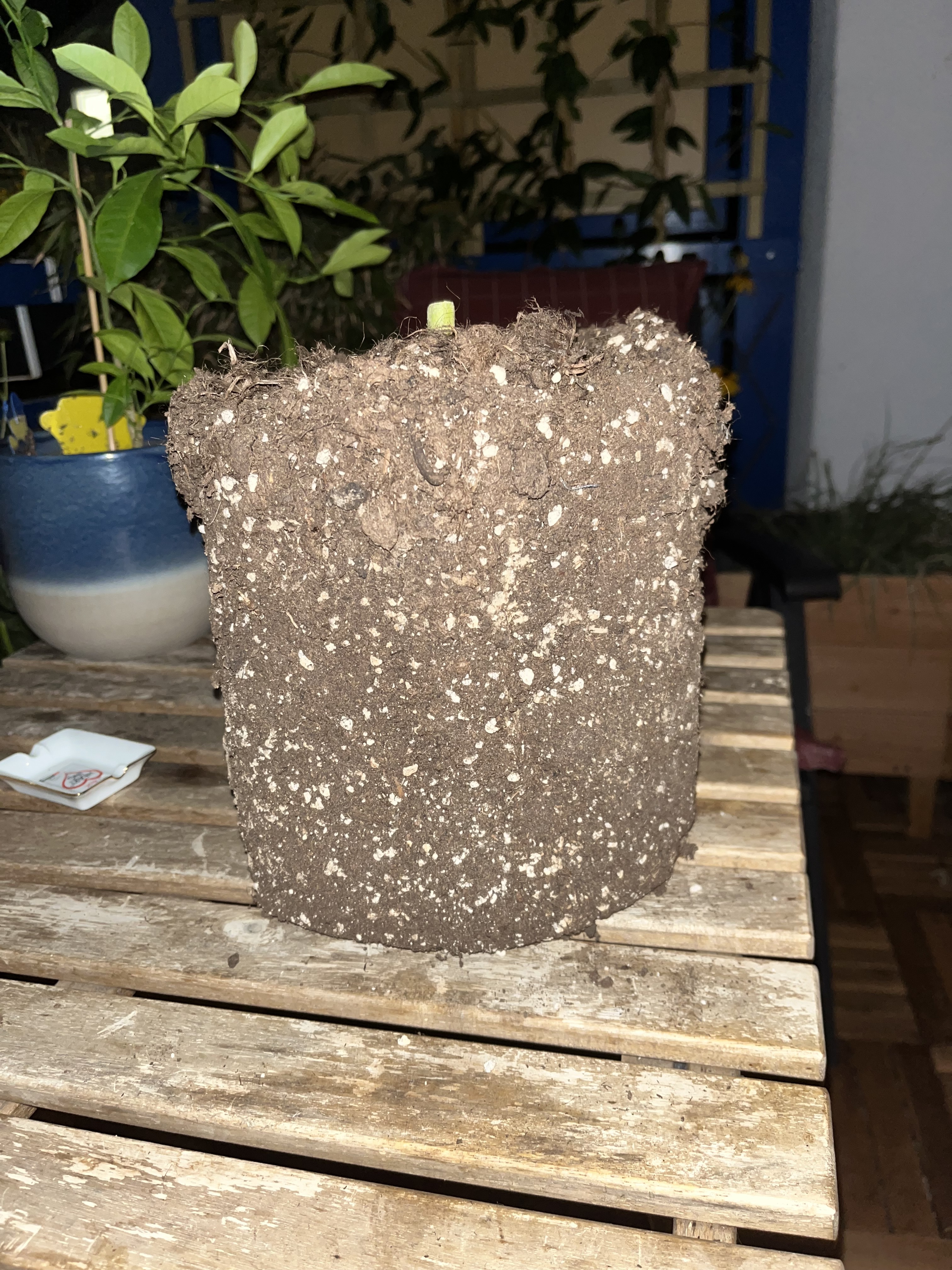 Die Erde wirkt zwar von der Stabilität als wäre sie gut durchwurzelt, allerdings sieht man am Rand des Ballens überhaupt keine Wurzel