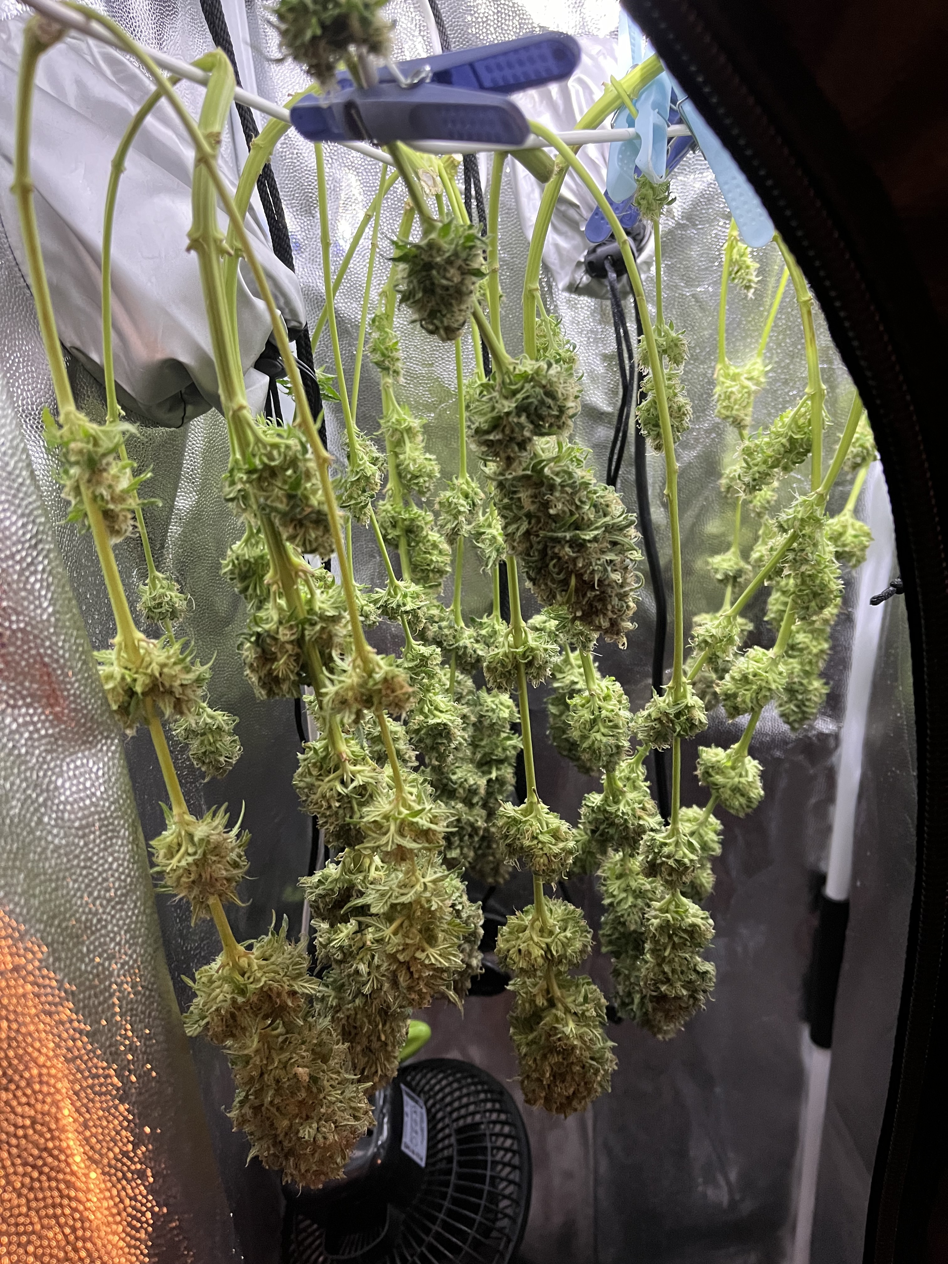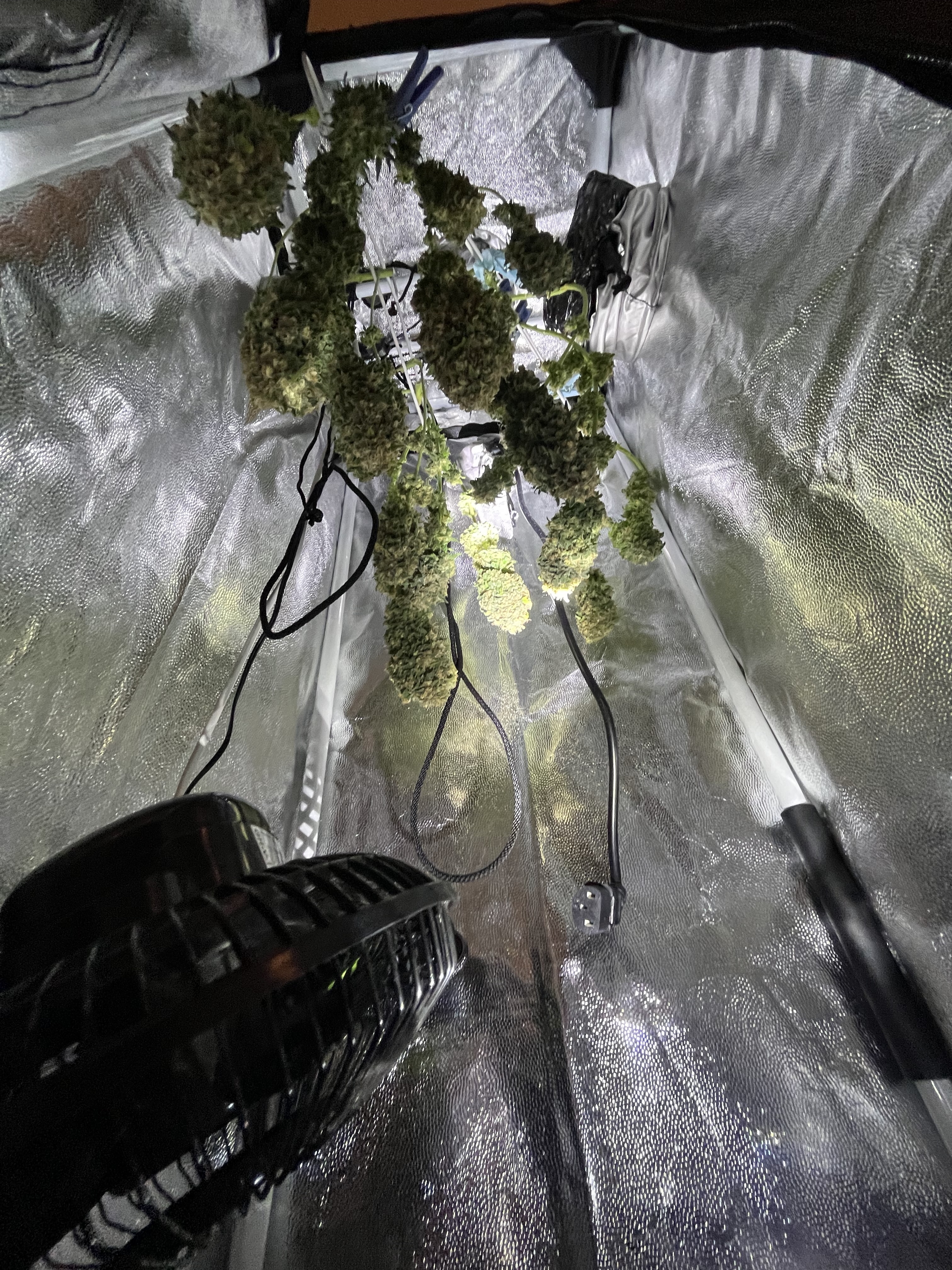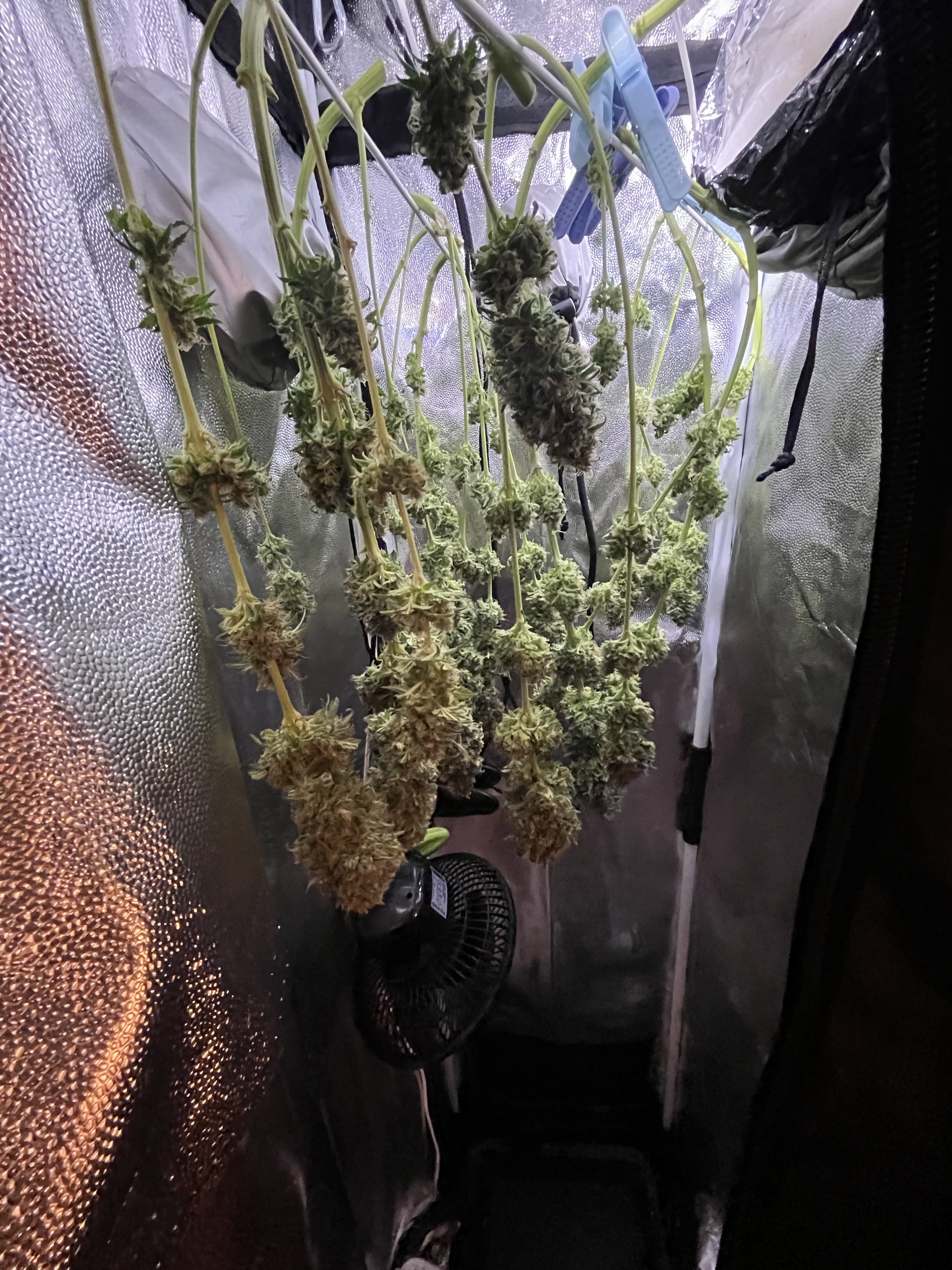 Ich werde wet-trimmen, das Licht sollte ab jetzt eigentlich aus bleiben und Wasser gibts jetzt auch keins mehr - habe das letzte mal vor vier Tagen gegossen, dass passt also ganz gut. Ernten werde ich Sonntag, solange bleibt es dann auch dunkel.