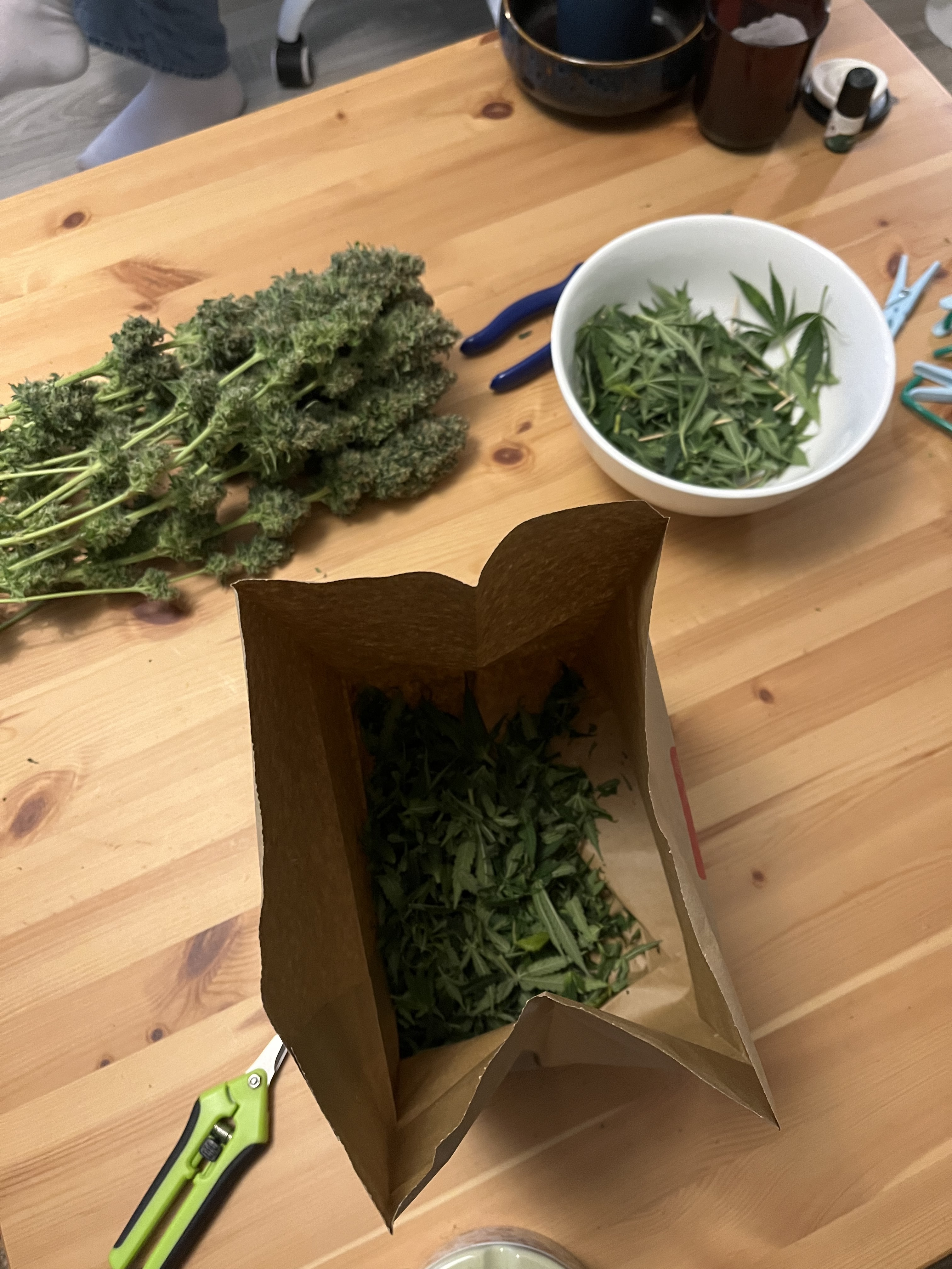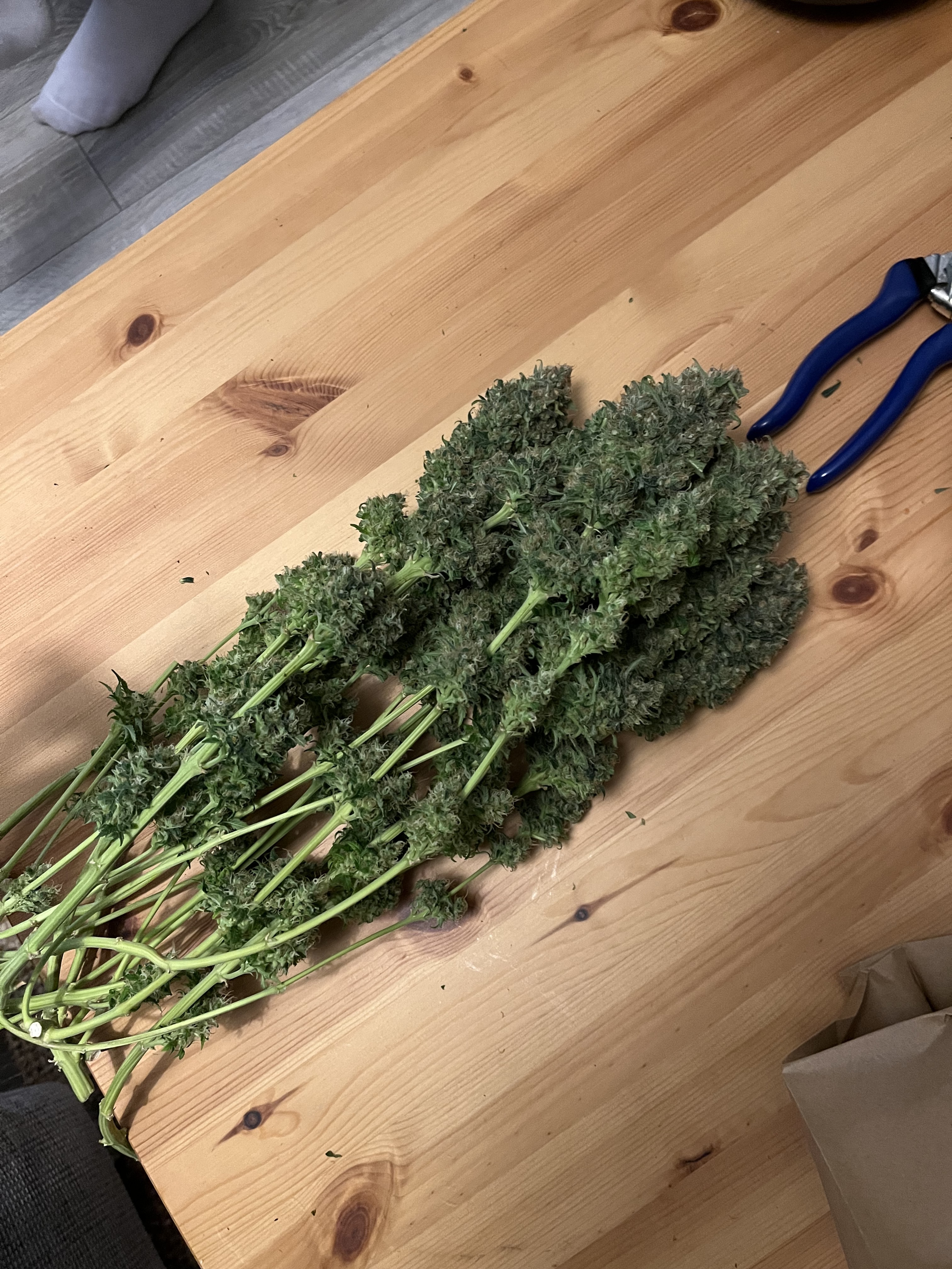 Da ich mich ja fürs wet-trim entschieden habe wurde sie nach der Ernte erstmal manikürt - hier einmal das fertige Ergebnis: