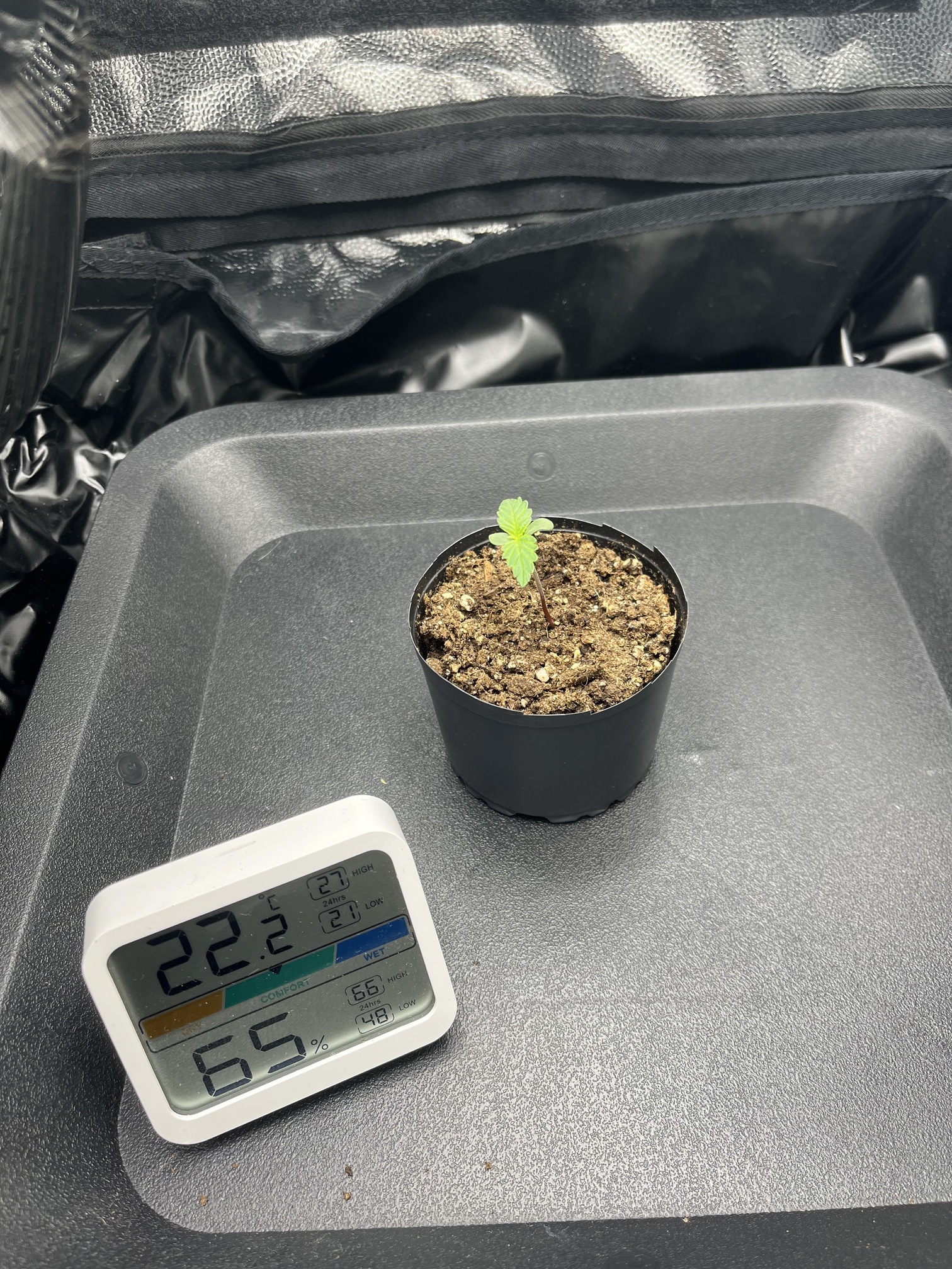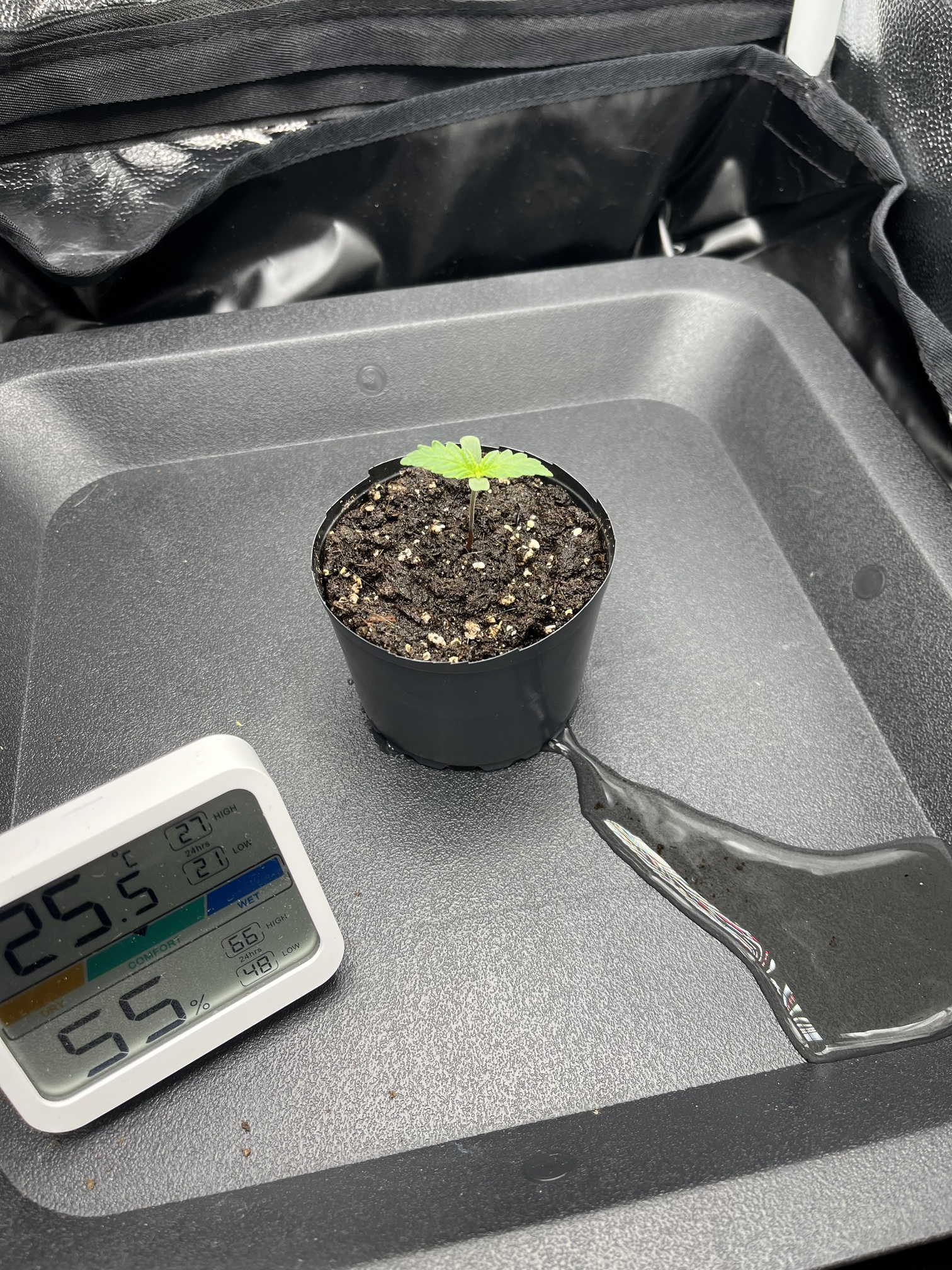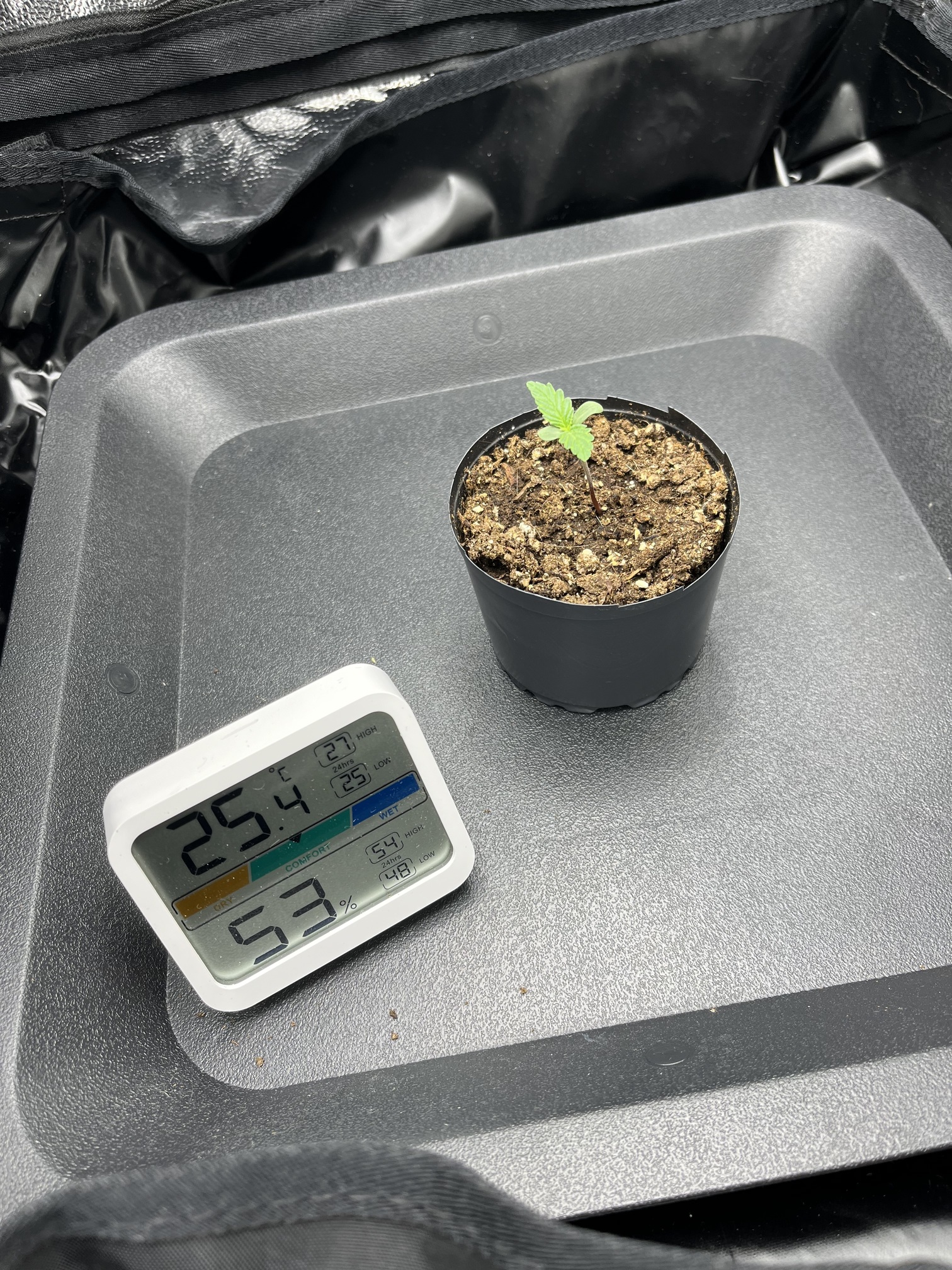 Ansonsten habe ich eben die Abluft um eine Stufe erhöht, die Temperatur ist heute auf bis zu 27°C angestiegen. Jetzt durch die Umstellung ist die Temperatur wieder auf 25°C abgesunken. RLF lag relativ konstant um die 50%. Die wird dann heute Nacht bei abkühlen wahrscheinlich wieder etwas nach oben gehen. Mal sehen was das Thermometer morgen sagt ![]()