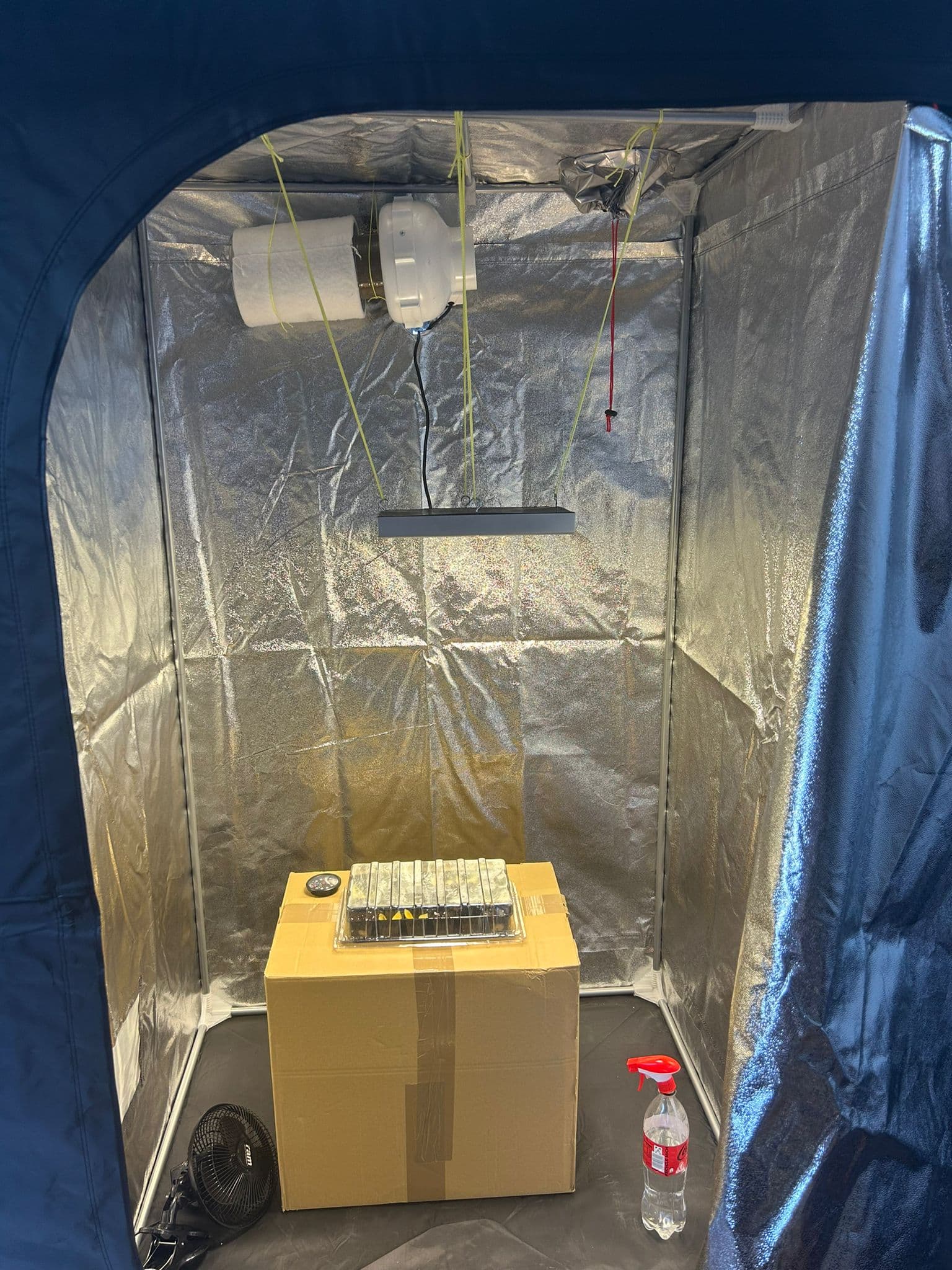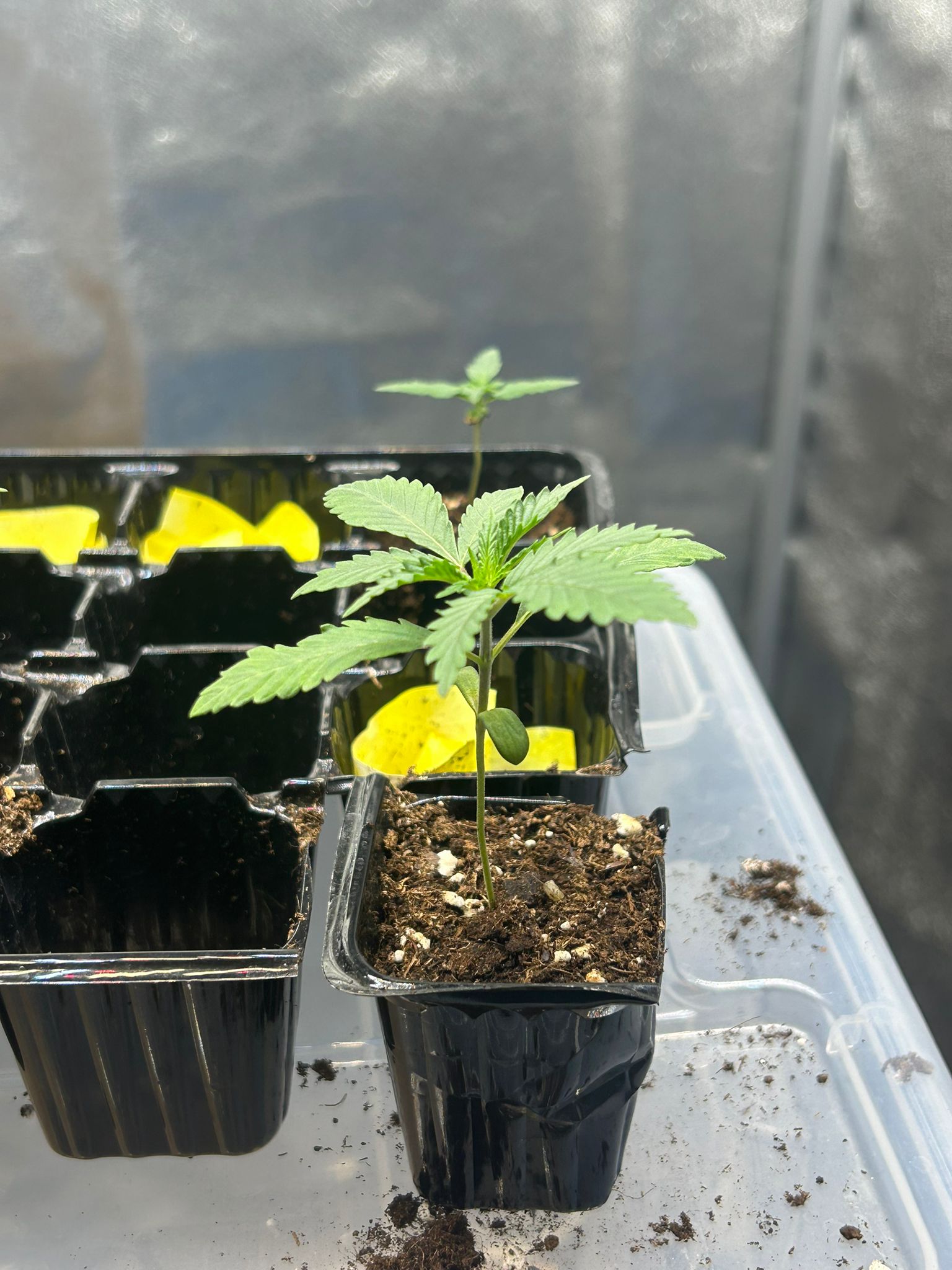 Ich werde die kleinen jetzt heute in Zelt setzen mit erstmal 24h Licht, bis alle ihre Blätter zeigen, also schätzungsweise 24-28h. Ventilator eingeschaltet.