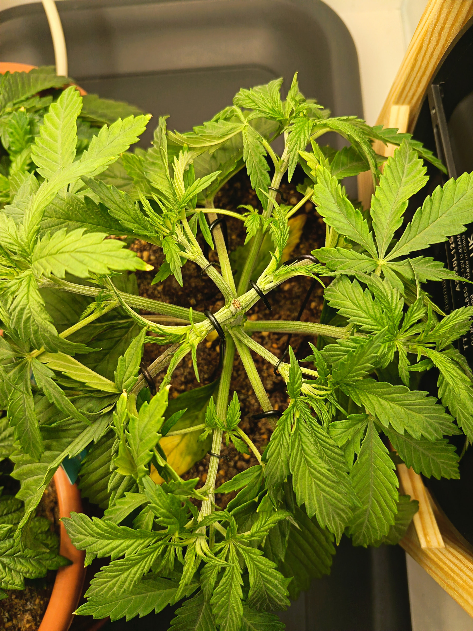 Der Plan: Einmal toppen (vermutlich über der 4 Nodie) ungefähr nach 14 Tagen, dann circa weiter 14 Tage Ruhe, ggf. mit leichtem LST und Umstellung auf 12/12 um den 16.2.26 rum und dann rechne ich mit der ersten Ernte frühstens Mitte April.
