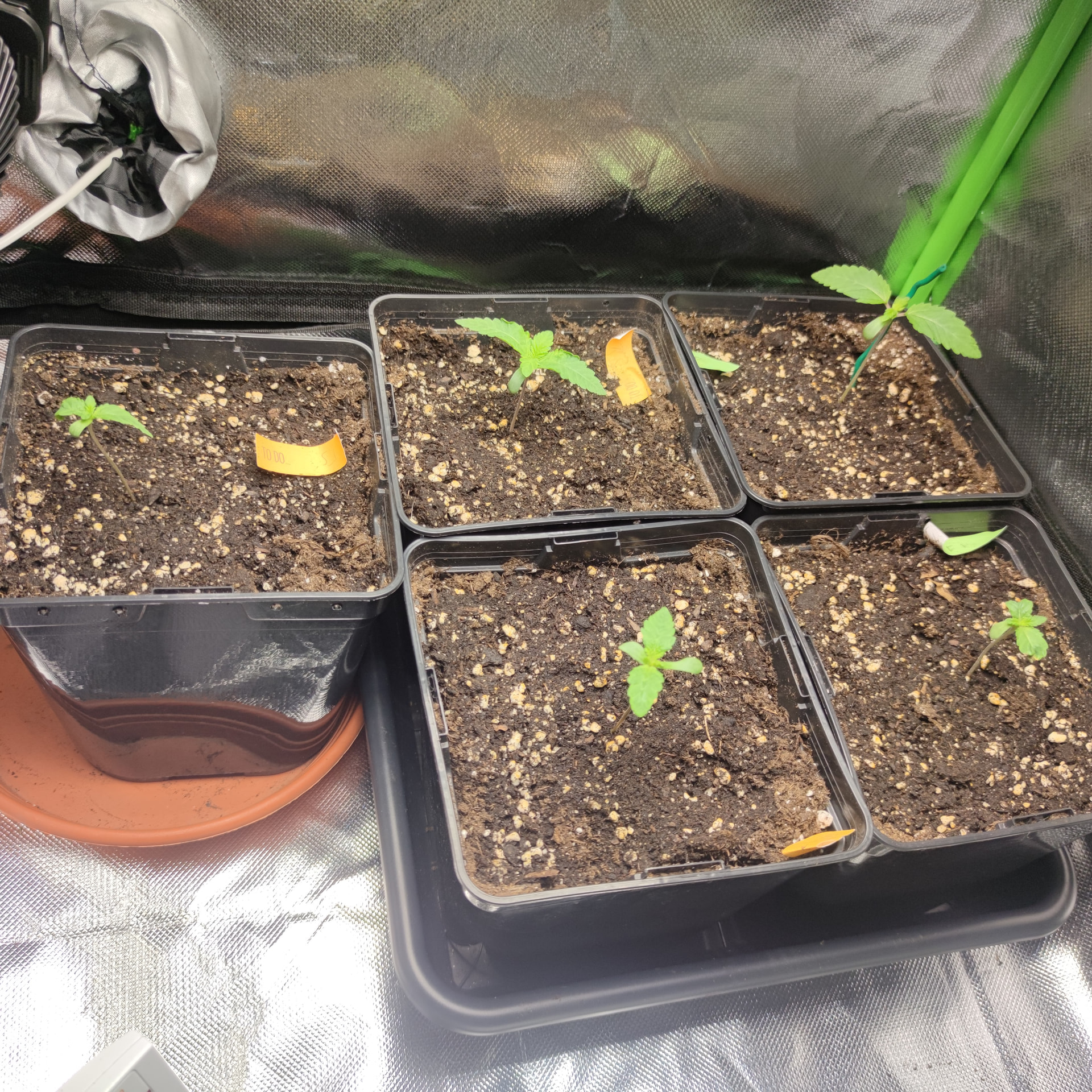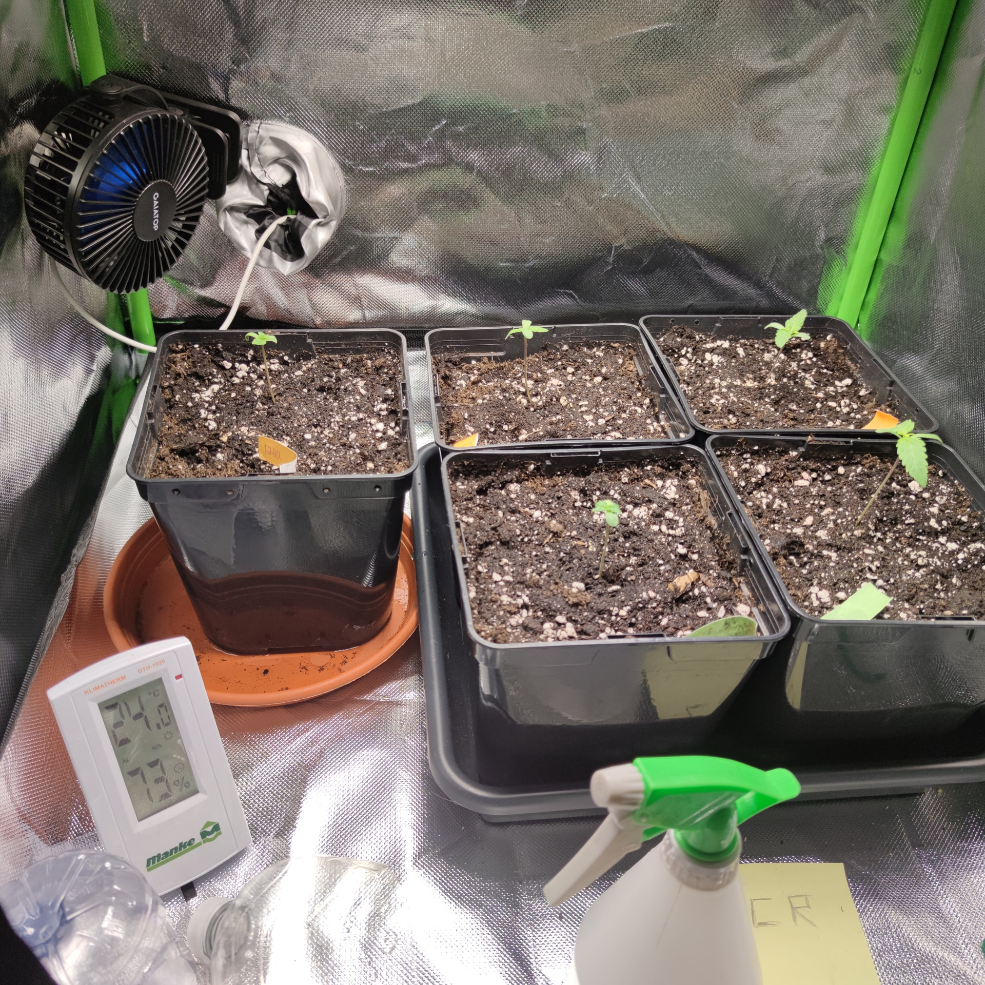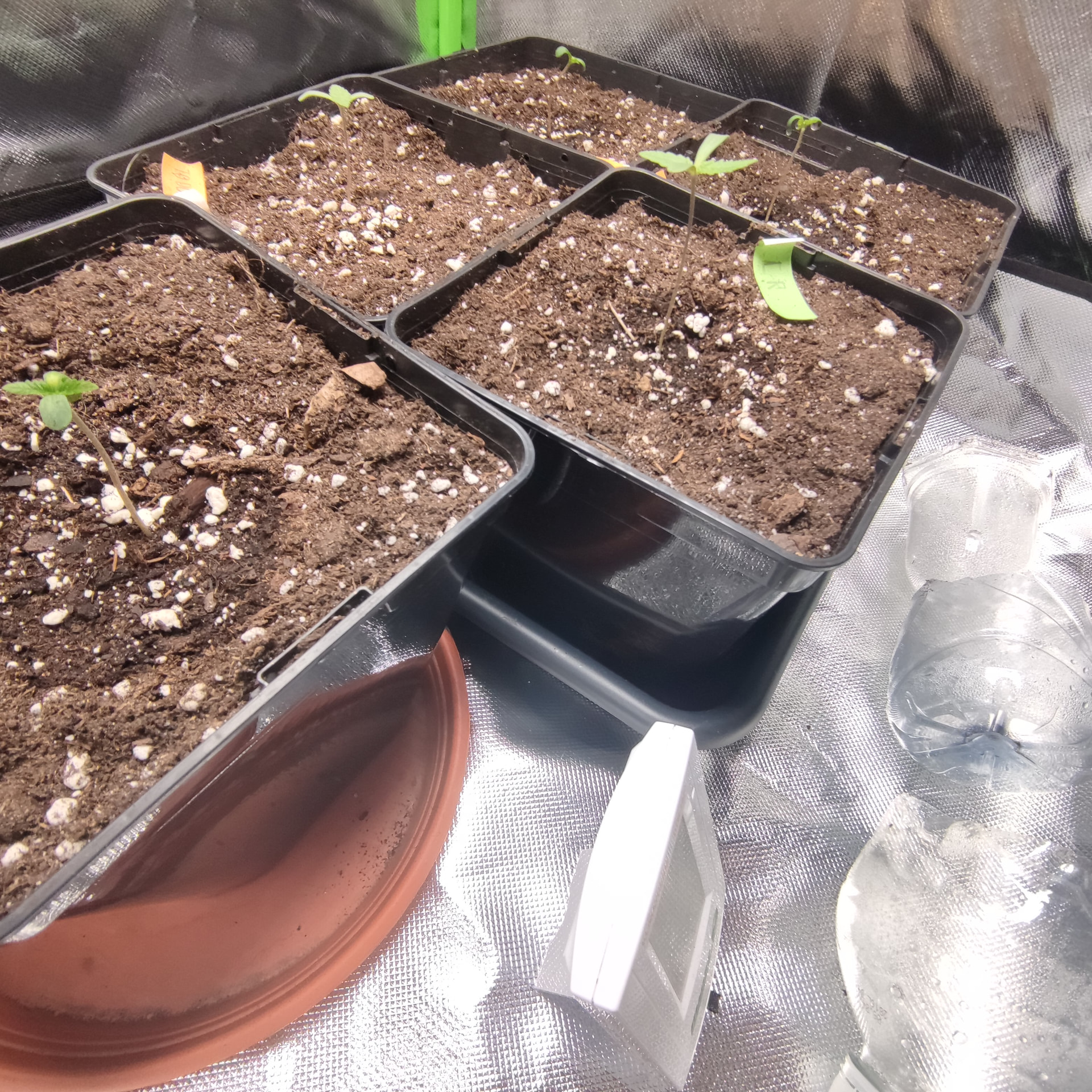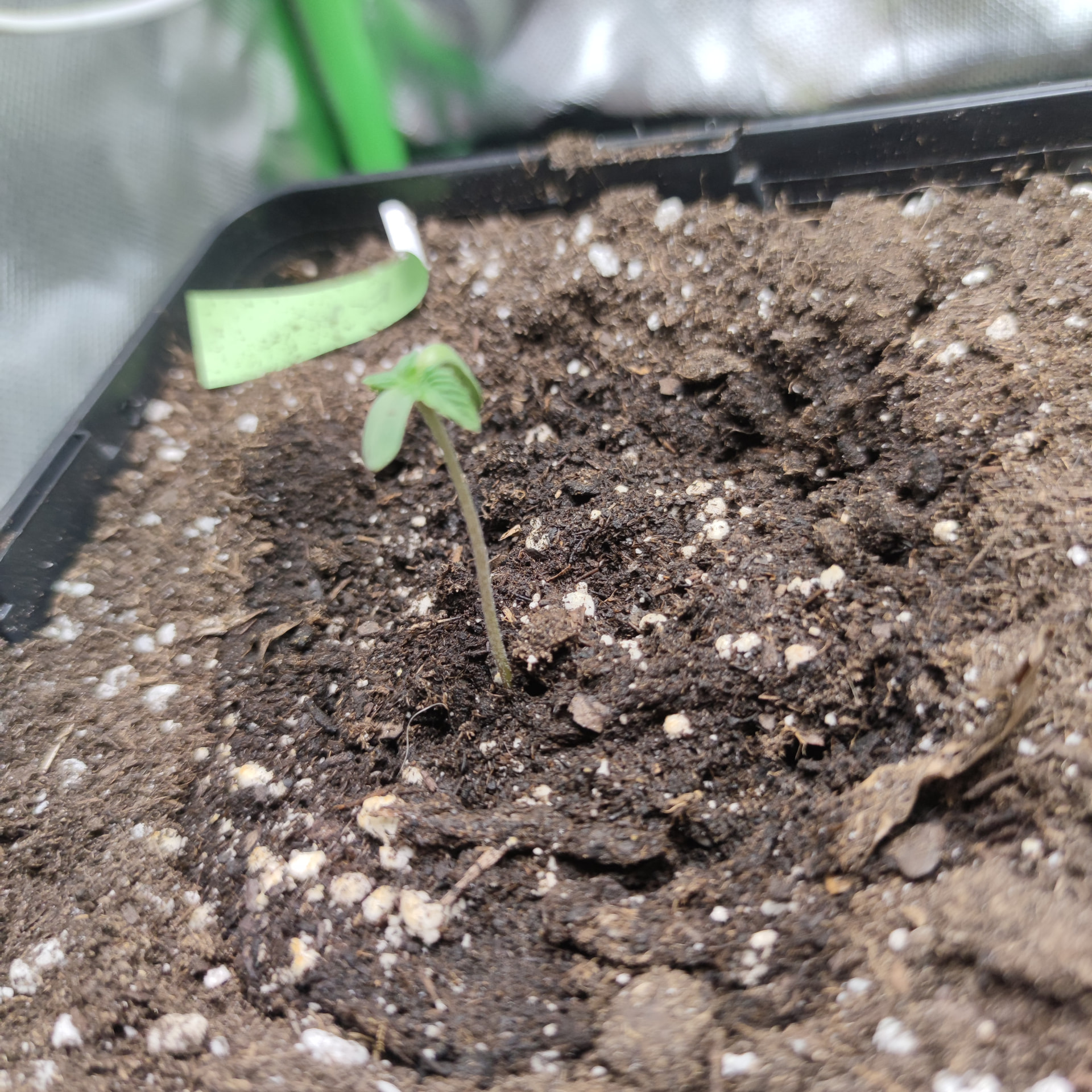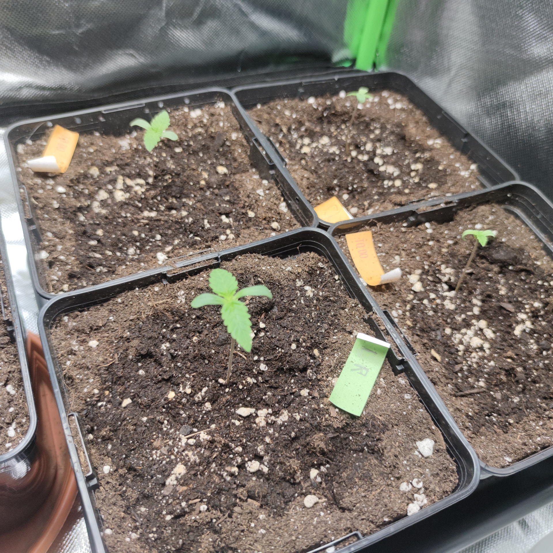 Ich hab für die Vorzucht bis zum Ende meines noch laufenden Jack herer grows, eine 50watt LED geholt( NoName ) da bleiben die Kleinen erstmal drunter, in der 60×60×120 Box, ohne Lüfter ist die RLF bei 60-70%. Die Lampe hängt 45 cm über den Pflanzen, alle sind geschlüpft durch erst in ein Glas Wasser, sobald die Nüsse geknackt sind, in die ersten Töpfe, sind bei 3 l mit light Mix. Ich hab noch Mykorhhiza an die Wurzeln geklatscht um den Start ins Leben zu erleichtern. Die kleinen bekommen 20 h Licht bis sie eine gewisse größe haben und ins große Zelt ziehen dürfen. Ich hatte einen Scrog geplant für diesen Run, also werde ich in einigen Wochen toppen, damit wir das ganze Zelt schön voll bekommen.