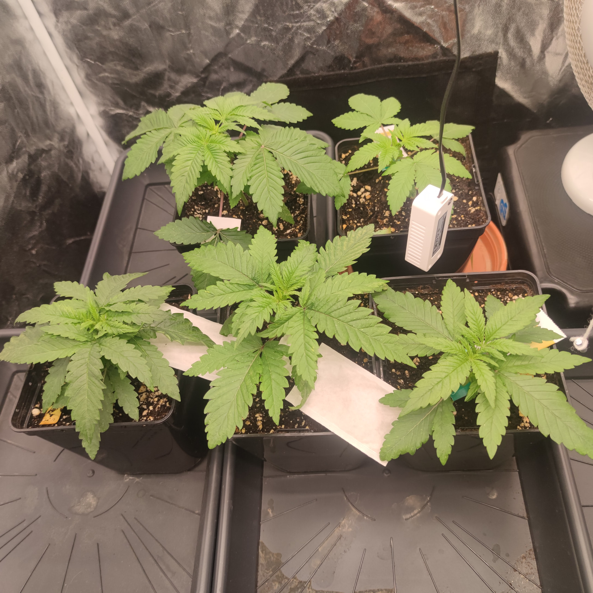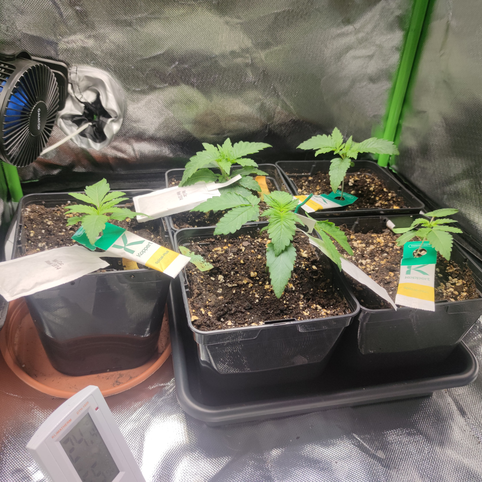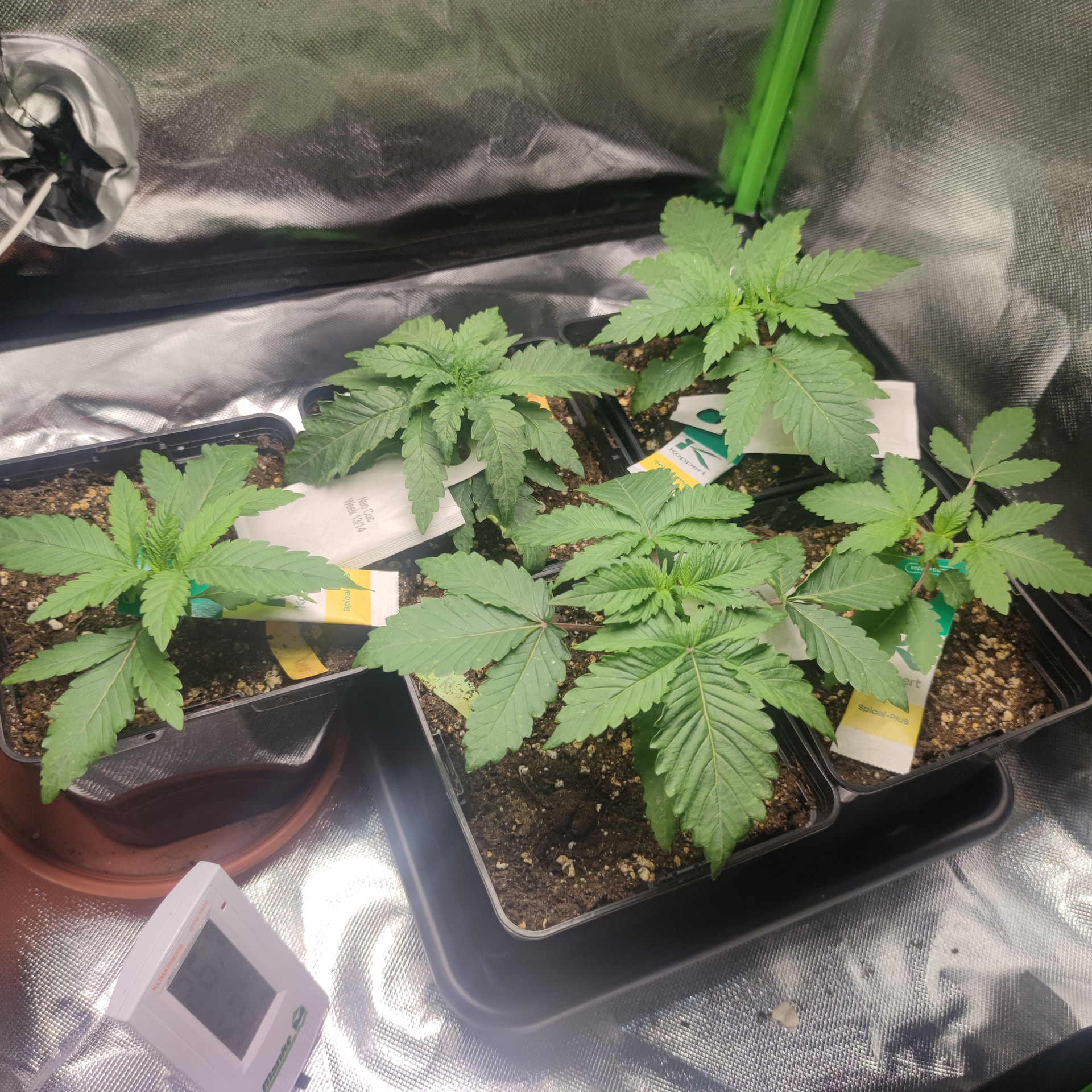 Bin mir noch nicht ganz sicher wie ich jetzt weitermachen soll, erst toppen, umziehen lassen oder Umtopfen. Durchgewurzelt ist der Topf noch nicht, habe unter dem Topf noch keine Wurzeln entdeckt. Ich würde also noch etwas abwarten, die Box fertig machen und dann wenn eine 5te Nodie Existiert nochmal schauen wie weit ich bin. Ich glaube unter der großen Lampe würden sich die kleinen bestimmt wohler fühlen, als unter dem 20€ Teil. Im Zentrum schafft die zwar 600-670 ppfd, aber am Rand sind es nur 150-250, was jetzt nur die 60×60 mit sehr wenig Abstand schon das Ultimo ist. Unter der Mars Hydro bekommen wenigstens alle gleich viel Licht ab. Werde zusehen dass sie morgen umziehen können.