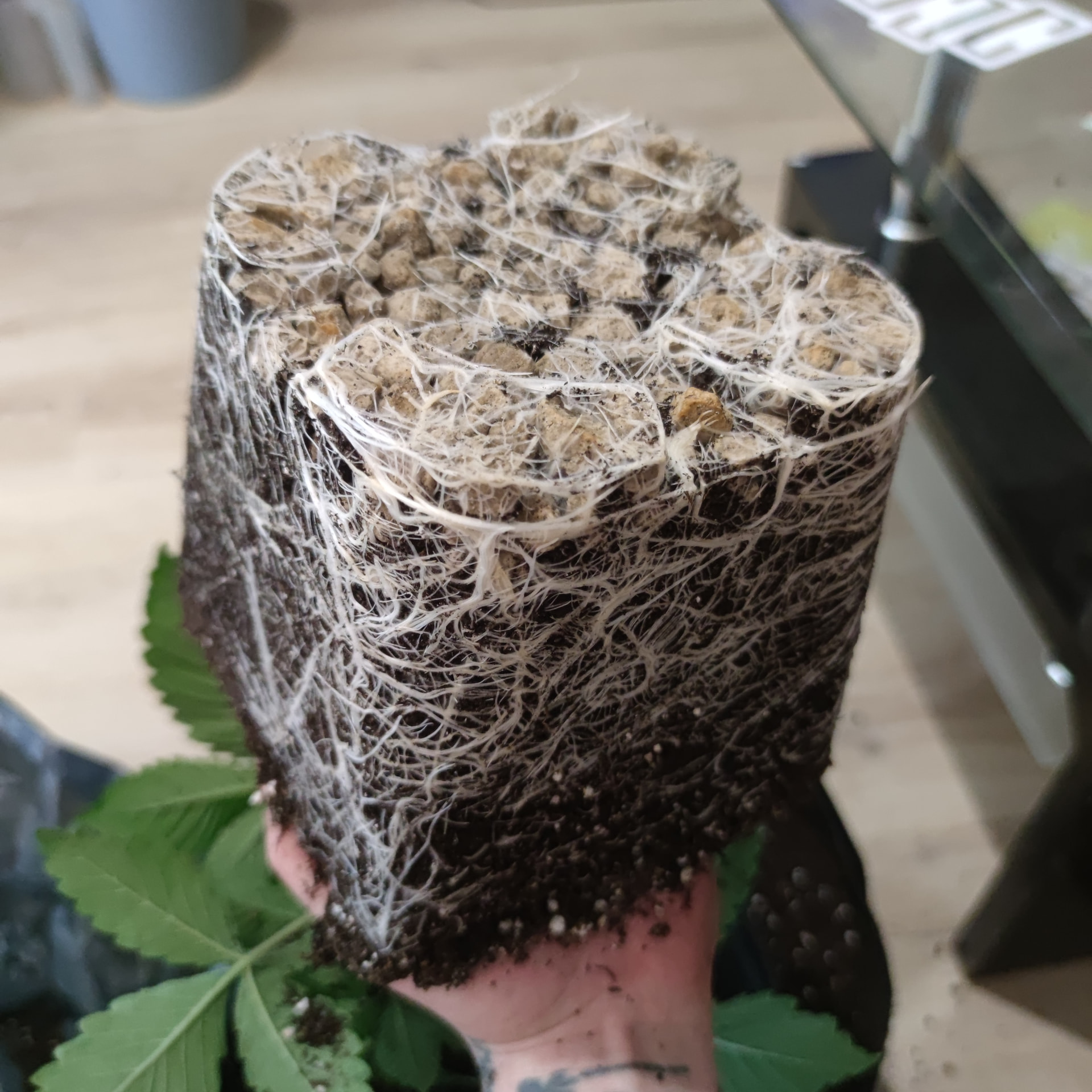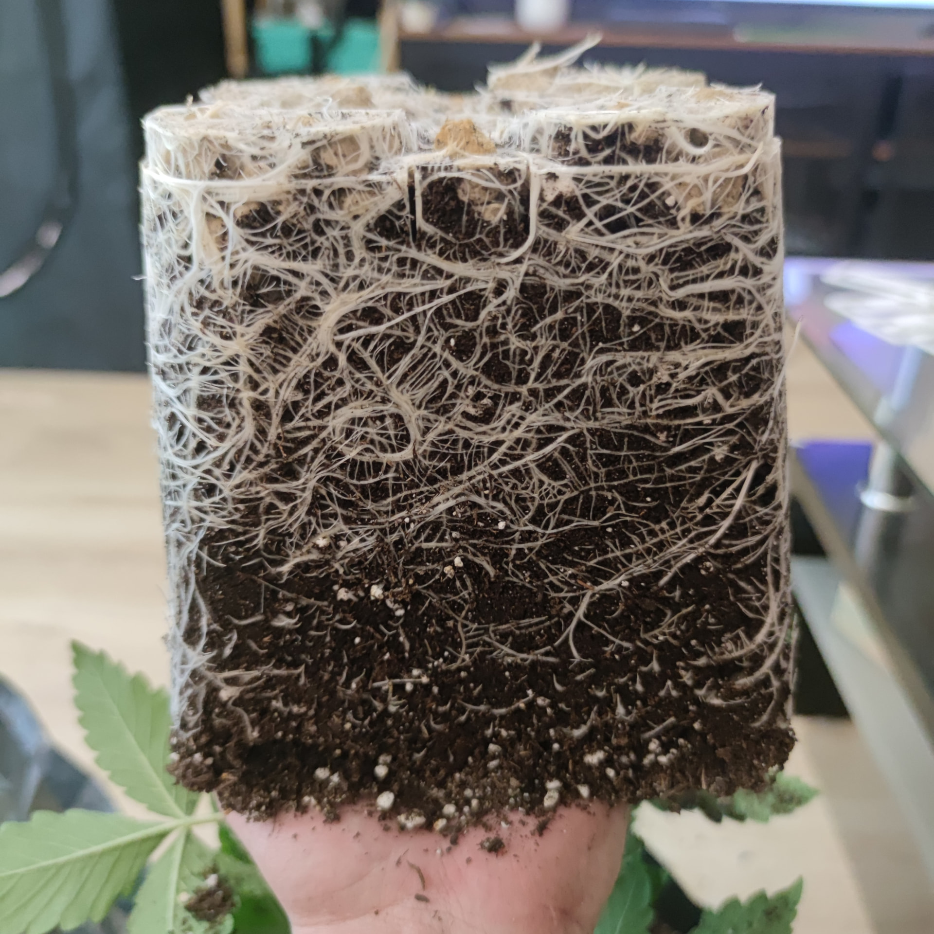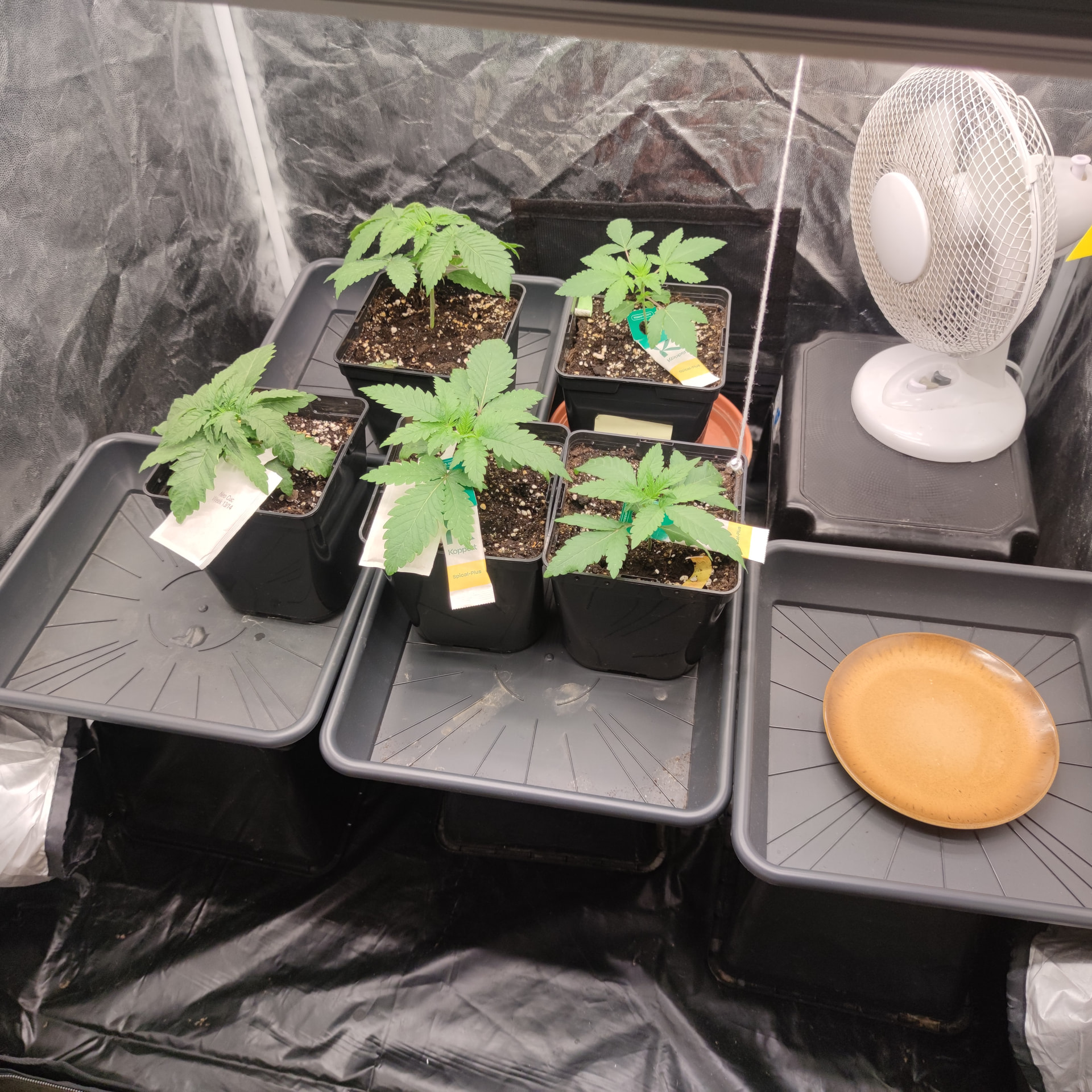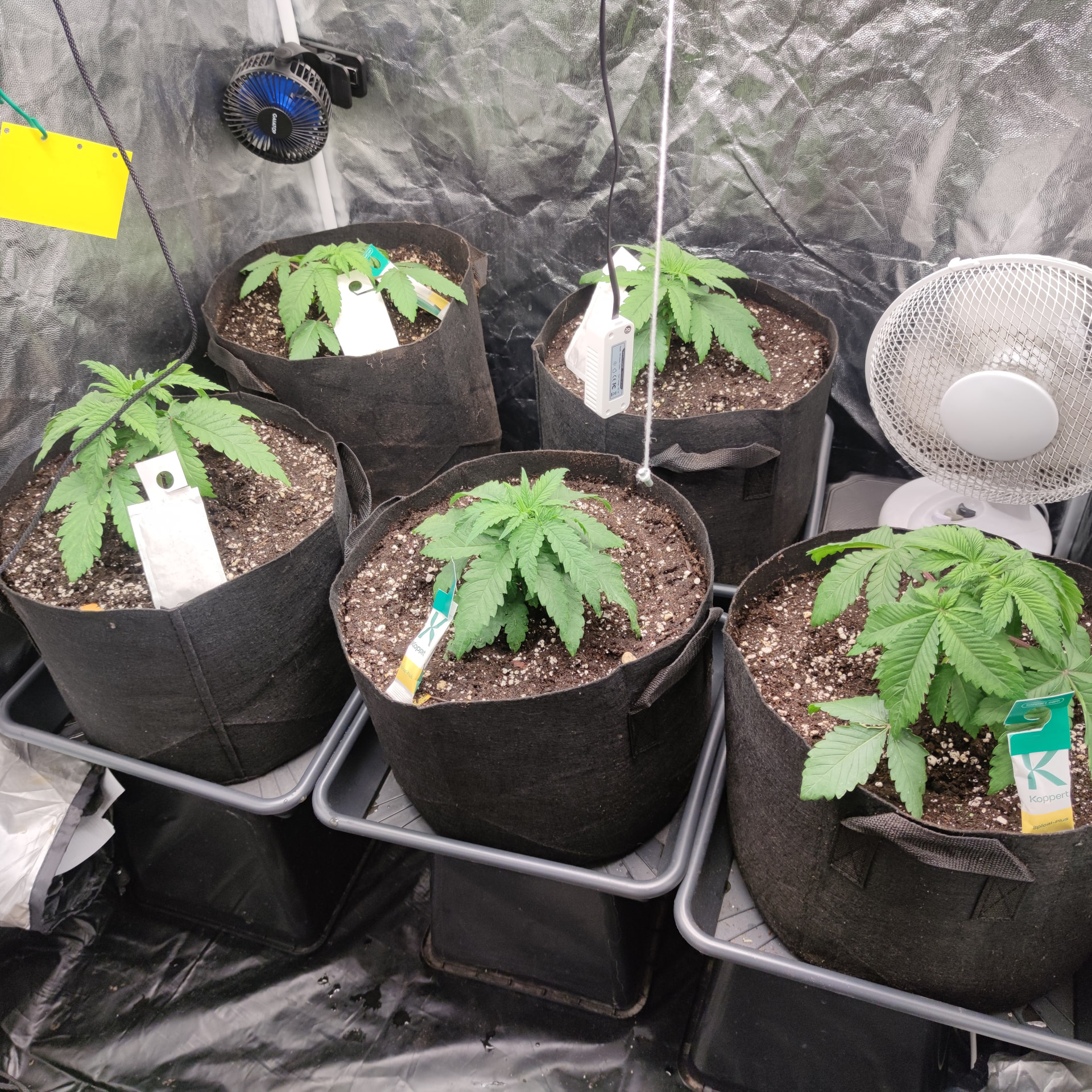 Bin mir noch nicht ganz sicher wie ich jetzt weitermachen soll, erst toppen, umziehen lassen oder Umtopfen. Durchgewurzelt ist der Topf noch nicht, habe unter dem Topf noch keine Wurzeln entdeckt. Ich würde also noch etwas abwarten, die Box fertig machen und dann wenn eine 5te Nodie Existiert nochmal schauen wie weit ich bin. Ich glaube unter der großen Lampe würden sich die kleinen bestimmt wohler fühlen, als unter dem 20€ Teil. Im Zentrum schafft die zwar 600-670 ppfd, aber am Rand sind es nur 150-250, was jetzt nur die 60×60 mit sehr wenig Abstand schon das Ultimo ist. Unter der Mars Hydro bekommen wenigstens alle gleich viel Licht ab. Werde zusehen dass sie morgen umziehen können.