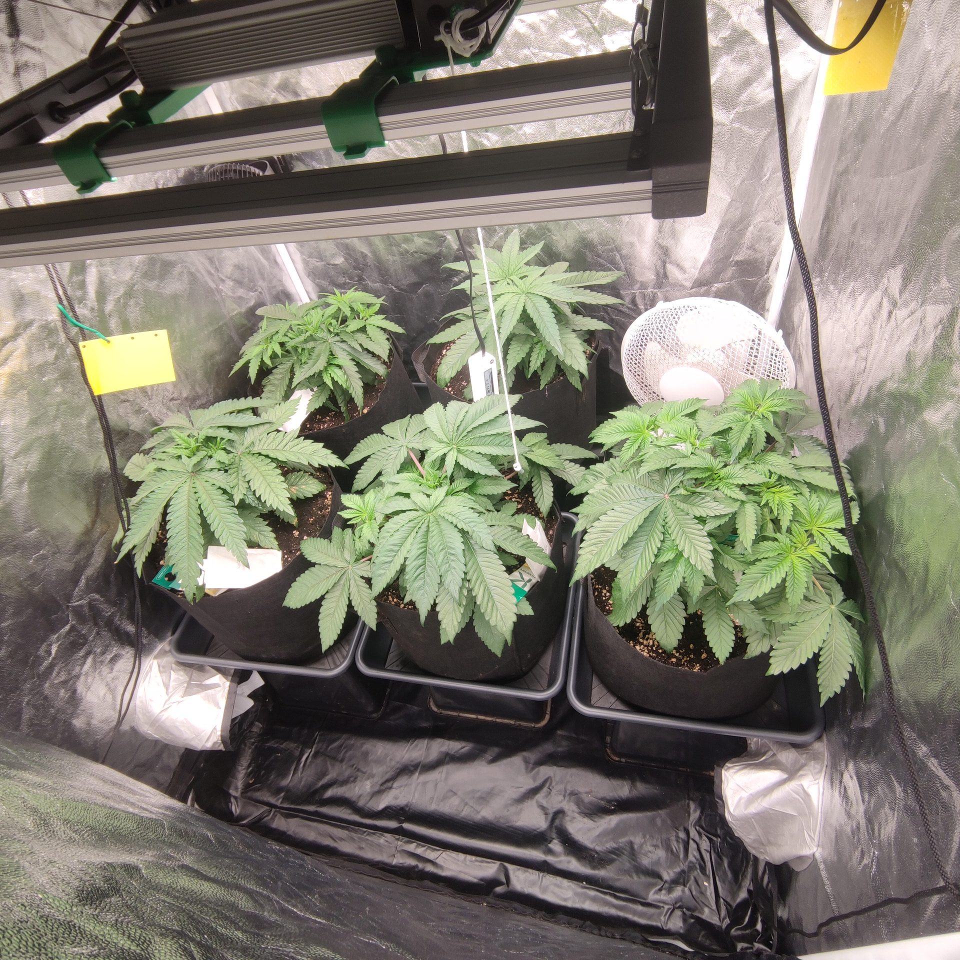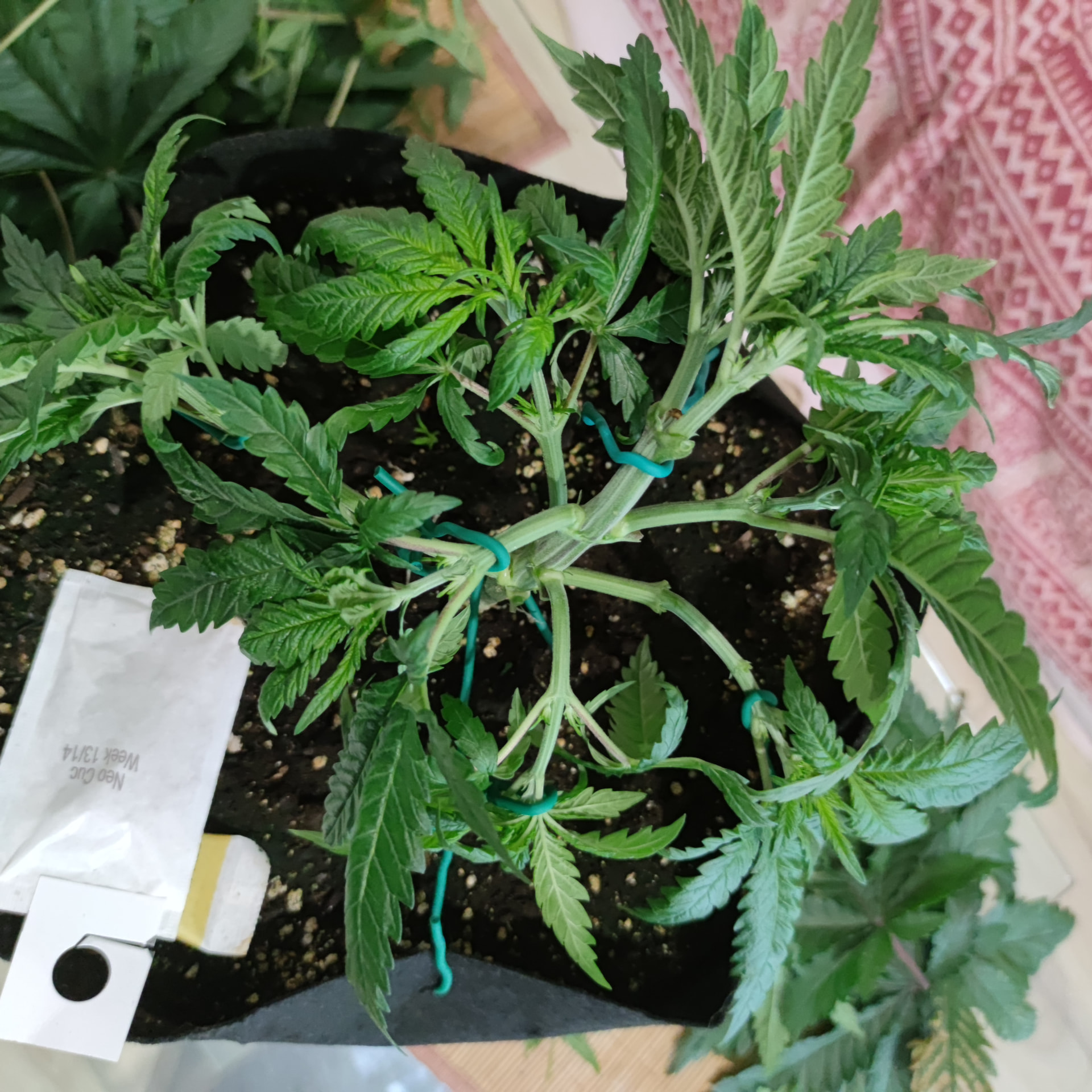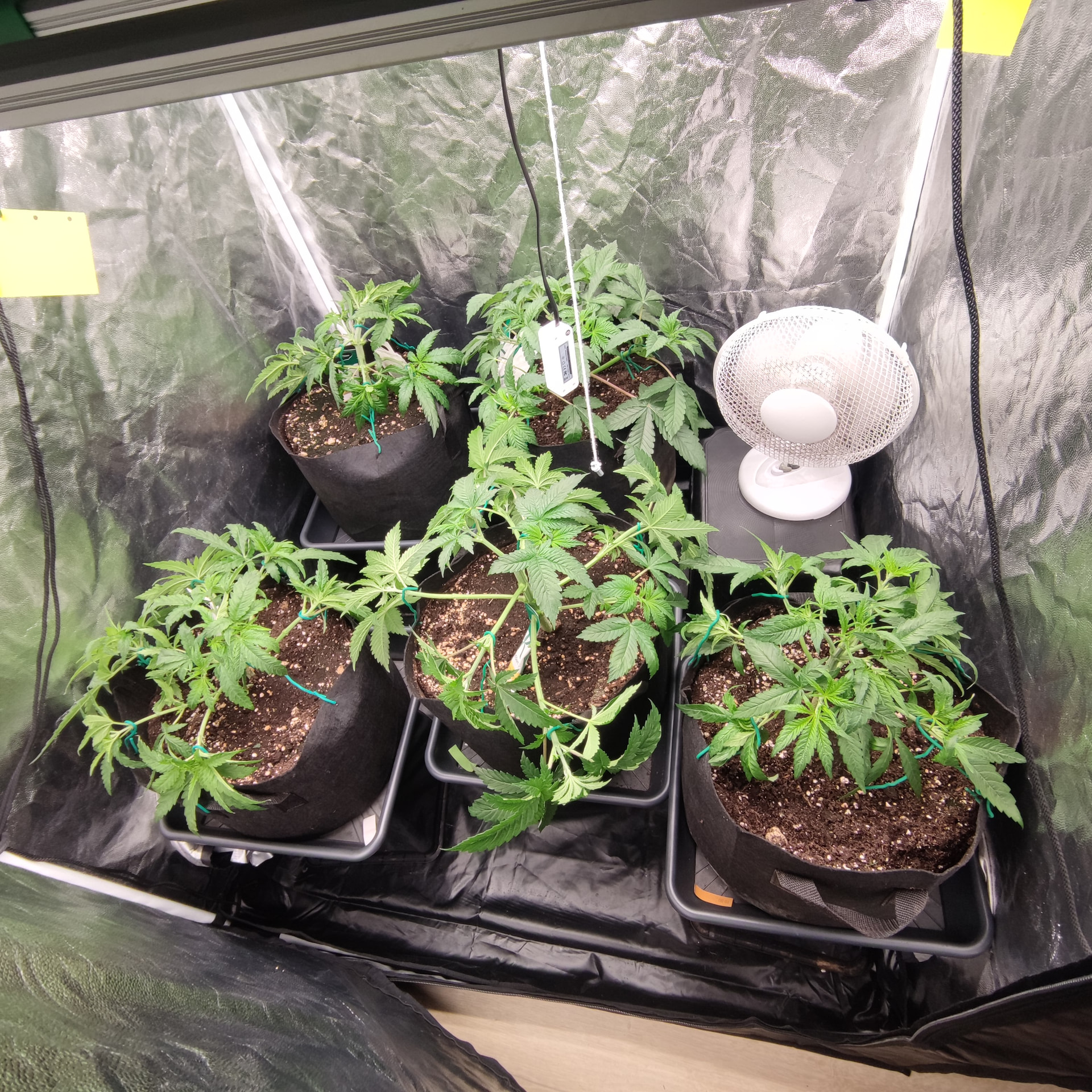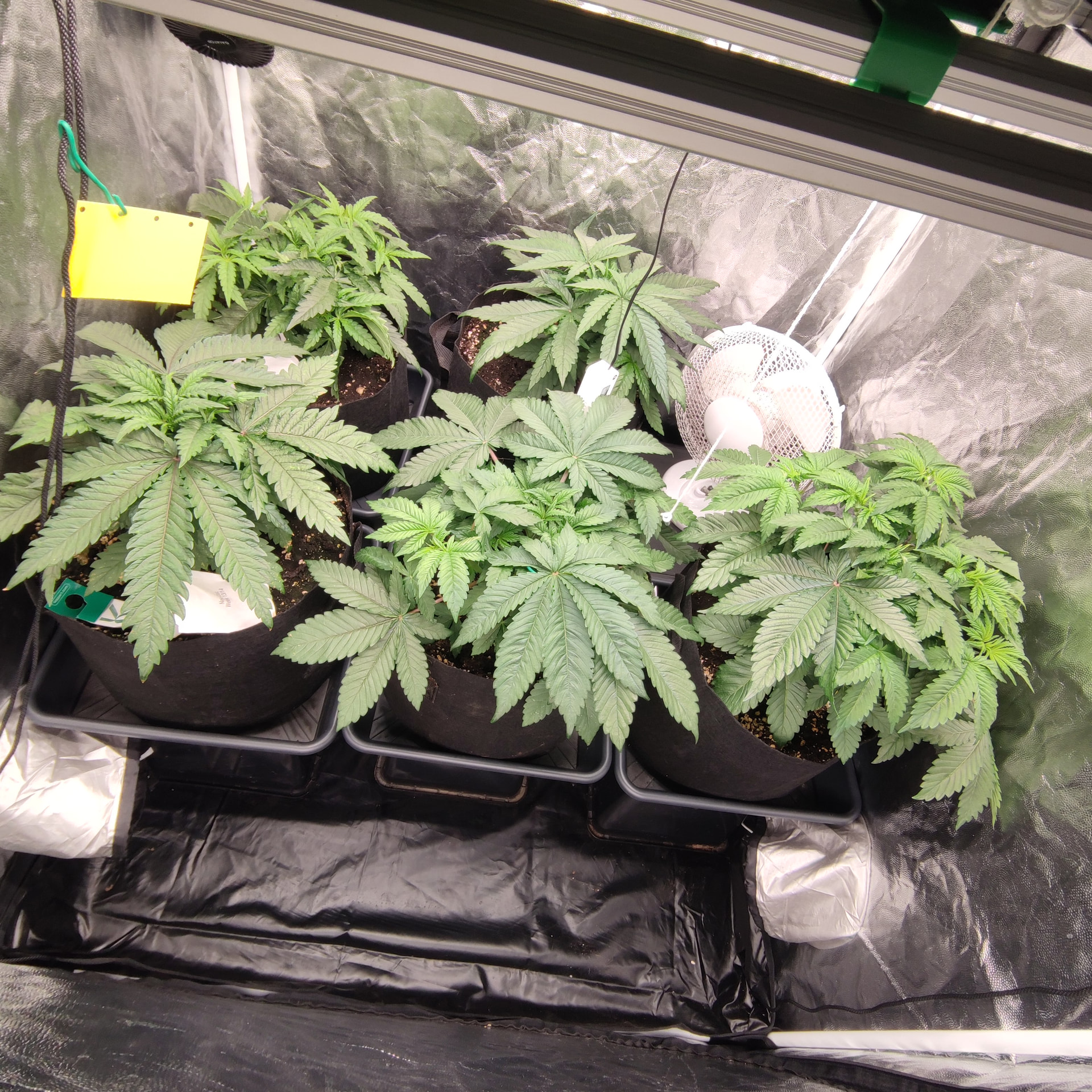 Die Box ist 1×1m und 2 Meter hoch. Bisher sind die Pflanzen nichtmal so hoch wie die Töpfe tief. Ich geb den noch etwas Zeit, klar würden da schon gute Ergebnisse bei rumkommen, ich Versuche halt auf einen besseren Watt/G wert zu kommen als letztes Mal. Mir macht es nichts die noch ein wenig in der vegi zu lassen und das mit dem toppen ist ja bisher nur ein Experiment, ich hatte einen Scrog geplant für diese Runde, deswegen die mehrfache toppung, bisher hab ich mit LST ganz ordentliche Ergebnisse eingefahren, die Töpfe sind groß genug um die Pflanzen noch etwas in die Höhe und Breite zu ziehen. Ich denke schon dass es drauf ankommt wie die buds am Ende verteilt sind, wenn ich wieder teile im Schatten habe, Bringt es mir nicht soviel dass ich dafür 2 Wochen weniger vegi hatte. Dazu ist so die Qualität des weeds auch nicht überall gleich gewesen, was ich auch nicht so schön fand. Gleichmäßige Ausleuchtung und unten alles wegnehmen = gute gleichmäßig belichtete buds ist meine Rechnung. Das hat nur mit lst schon gut funktioniert. Nur hab ich die critical runtz und Tangerine sugar bisher nur mit dem HST Training etwas trainiert. Biegen und entlauben kommt dann kurz vor der Blütephase.