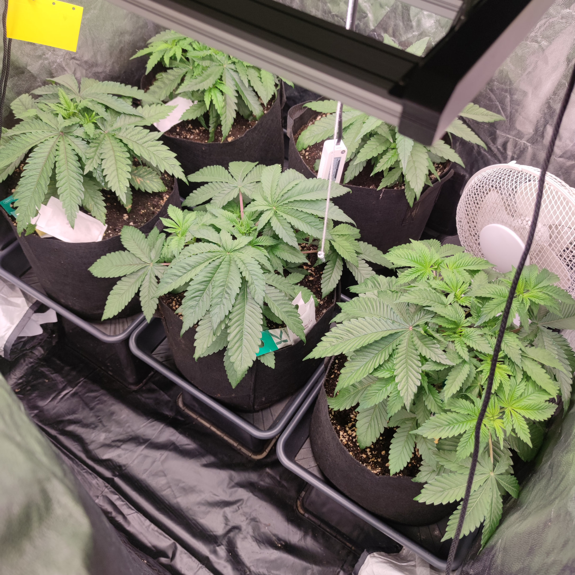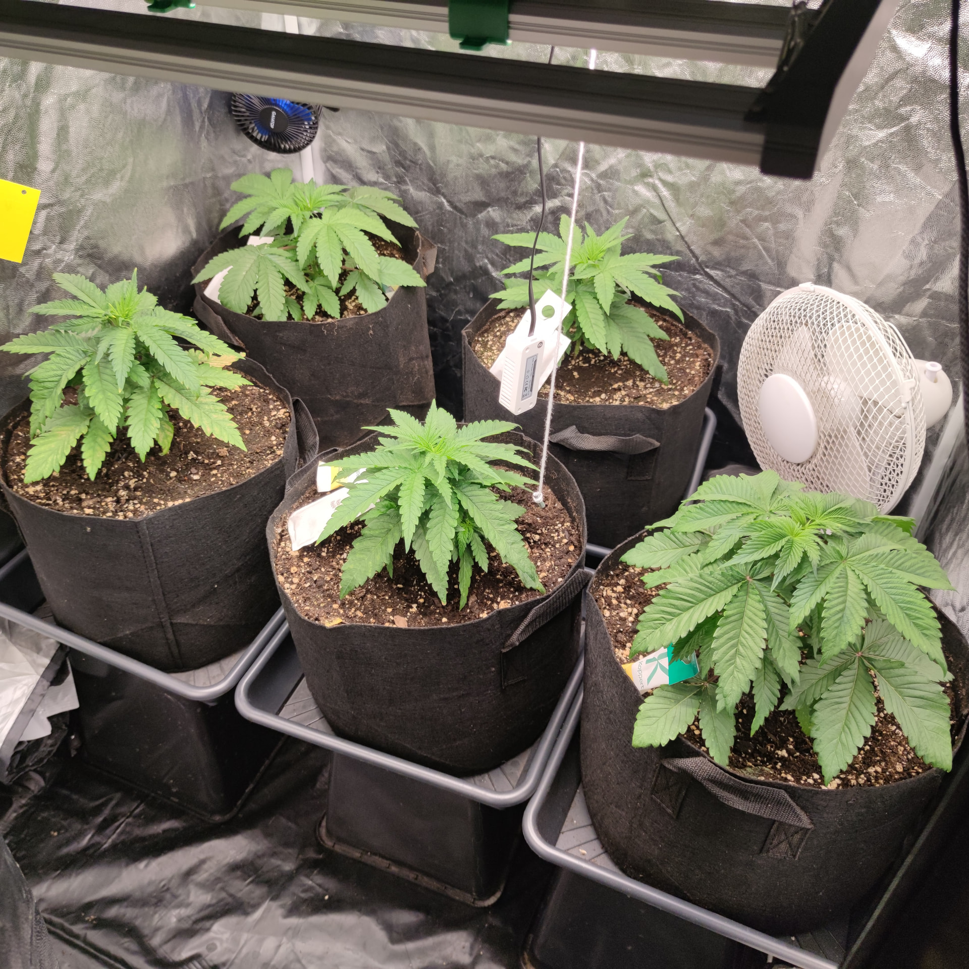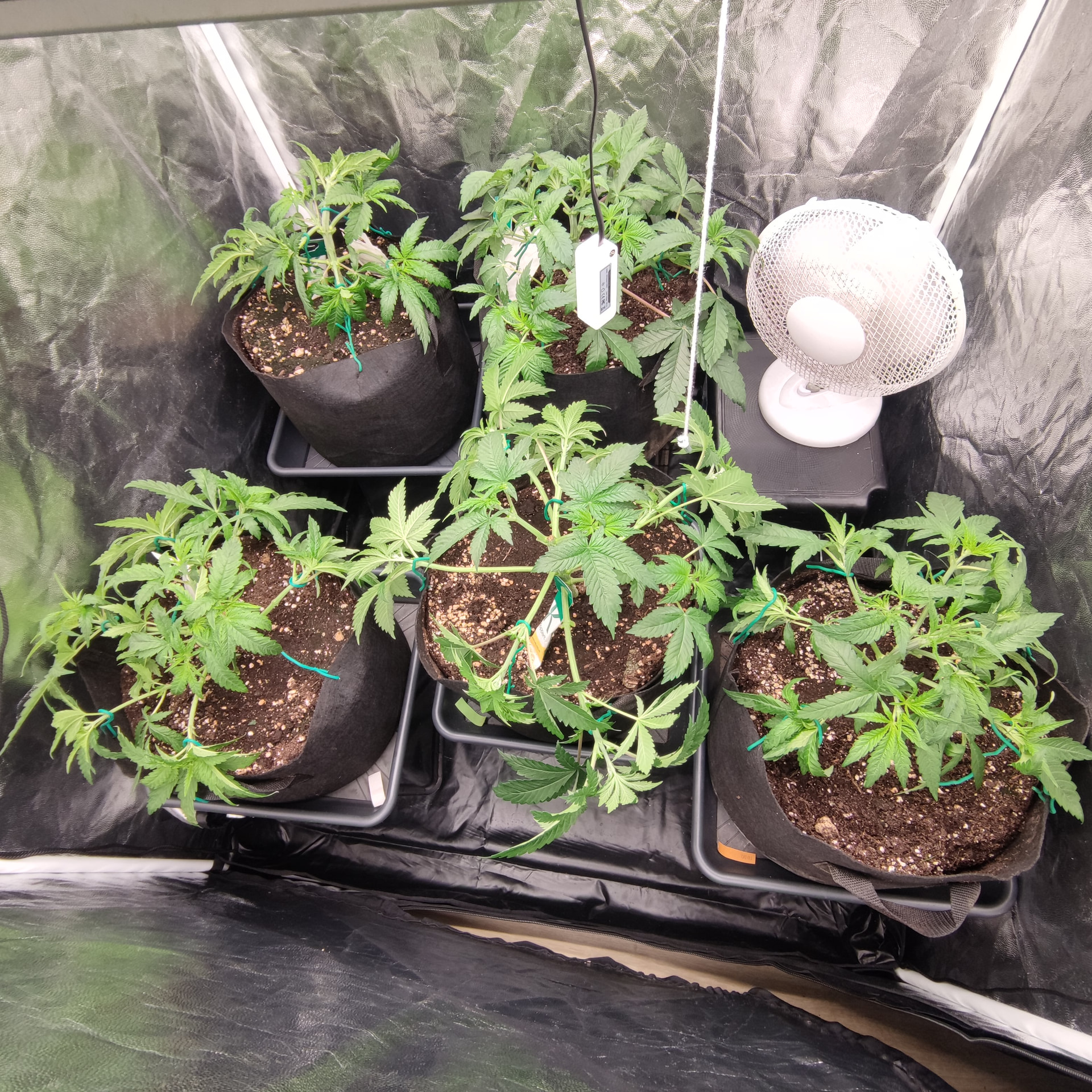 Die Box ist 1×1m und 2 Meter hoch. Bisher sind die Pflanzen nichtmal so hoch wie die Töpfe tief. Ich geb den noch etwas Zeit, klar würden da schon gute Ergebnisse bei rumkommen, ich Versuche halt auf einen besseren Watt/G wert zu kommen als letztes Mal. Mir macht es nichts die noch ein wenig in der vegi zu lassen und das mit dem toppen ist ja bisher nur ein Experiment, ich hatte einen Scrog geplant für diese Runde, deswegen die mehrfache toppung, bisher hab ich mit LST ganz ordentliche Ergebnisse eingefahren, die Töpfe sind groß genug um die Pflanzen noch etwas in die Höhe und Breite zu ziehen. Ich denke schon dass es drauf ankommt wie die buds am Ende verteilt sind, wenn ich wieder teile im Schatten habe, Bringt es mir nicht soviel dass ich dafür 2 Wochen weniger vegi hatte. Dazu ist so die Qualität des weeds auch nicht überall gleich gewesen, was ich auch nicht so schön fand. Gleichmäßige Ausleuchtung und unten alles wegnehmen = gute gleichmäßig belichtete buds ist meine Rechnung. Das hat nur mit lst schon gut funktioniert. Nur hab ich die critical runtz und Tangerine sugar bisher nur mit dem HST Training etwas trainiert. Biegen und entlauben kommt dann kurz vor der Blütephase.