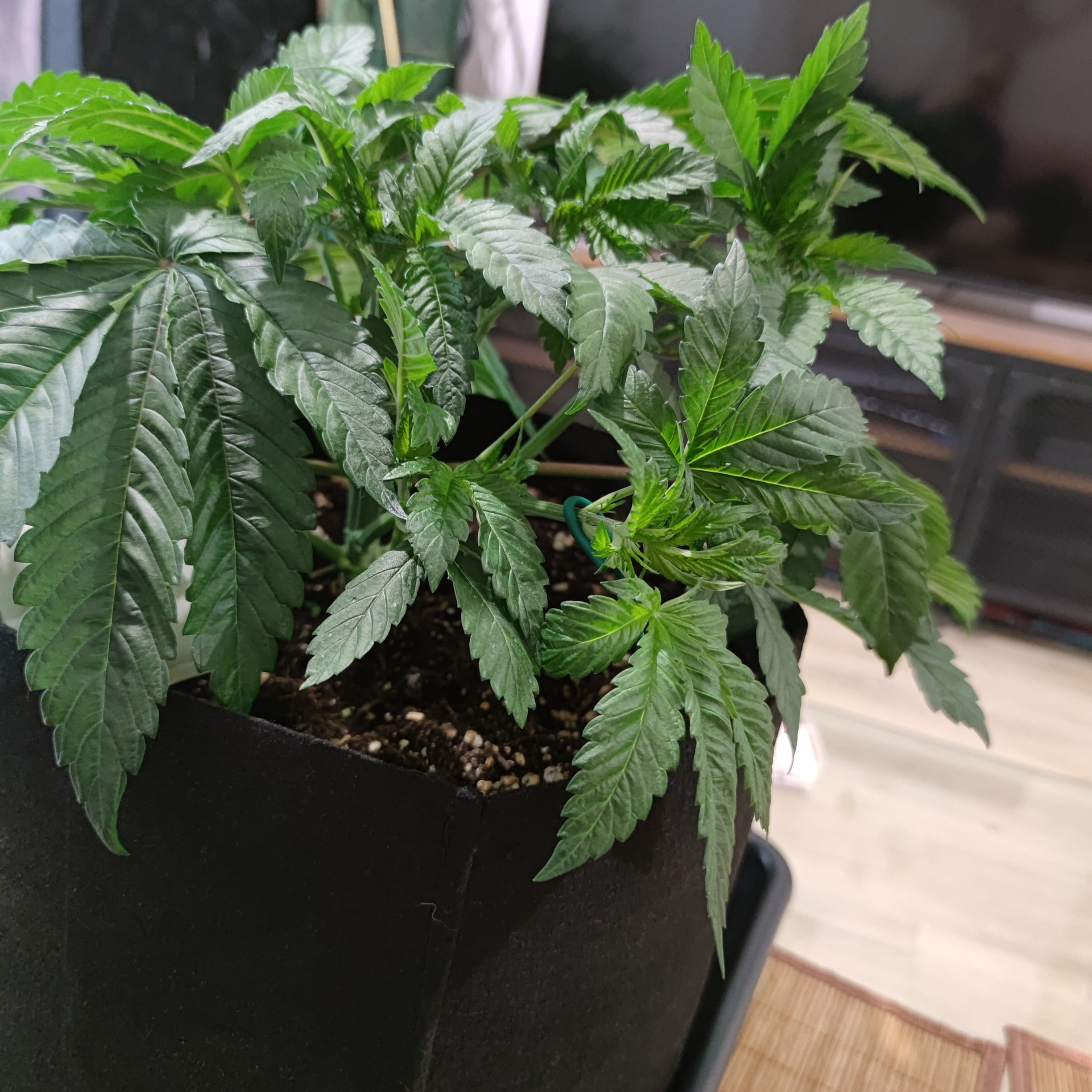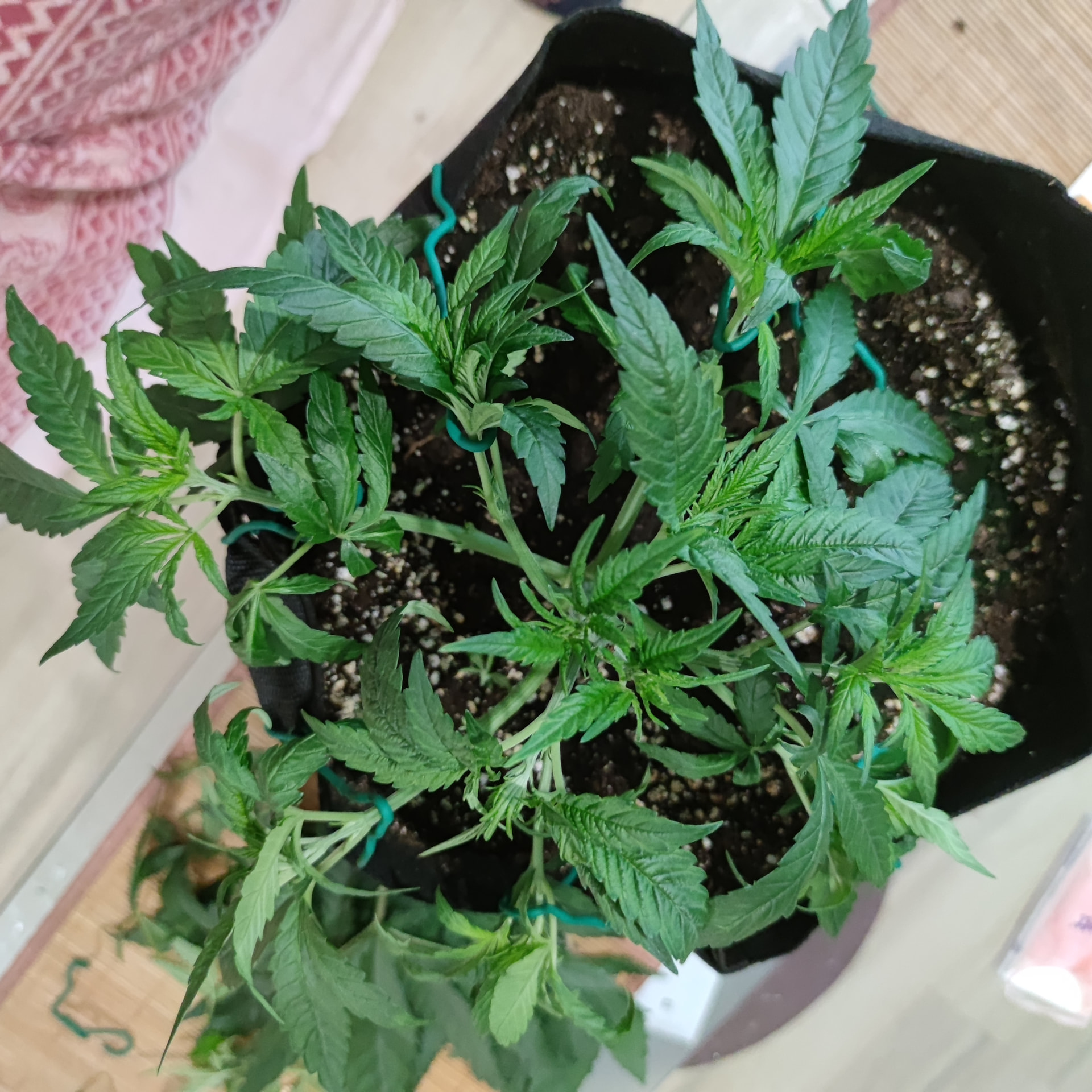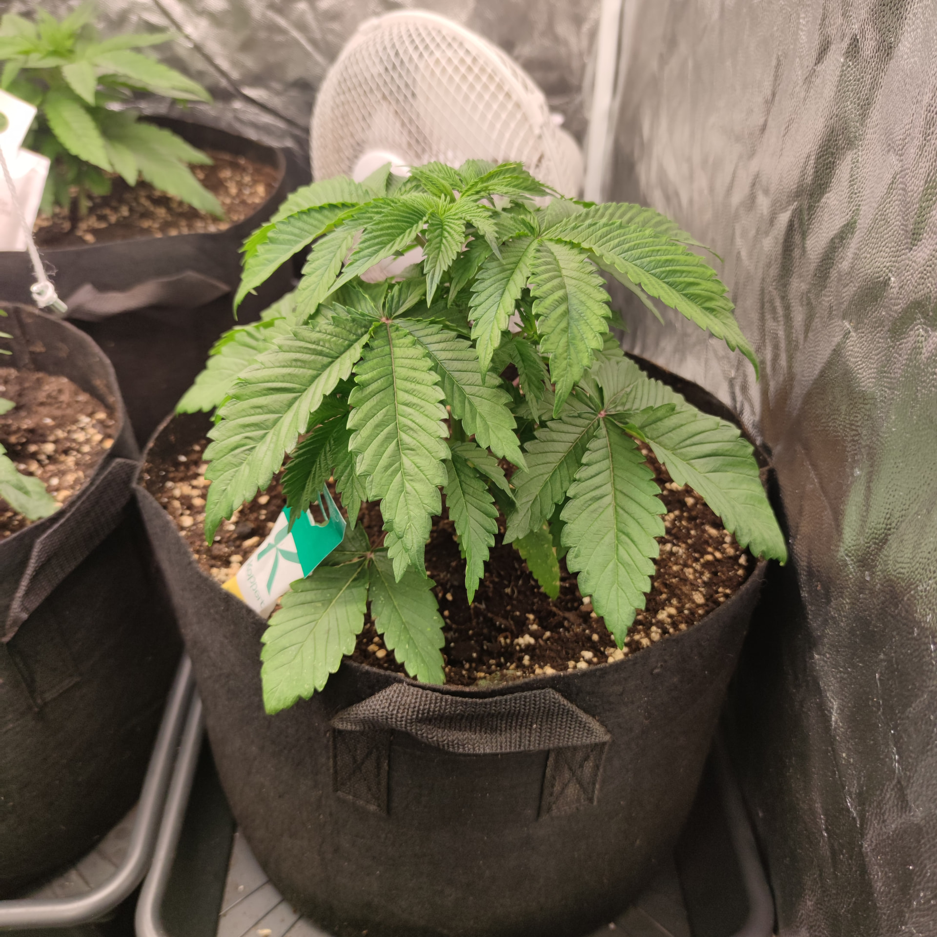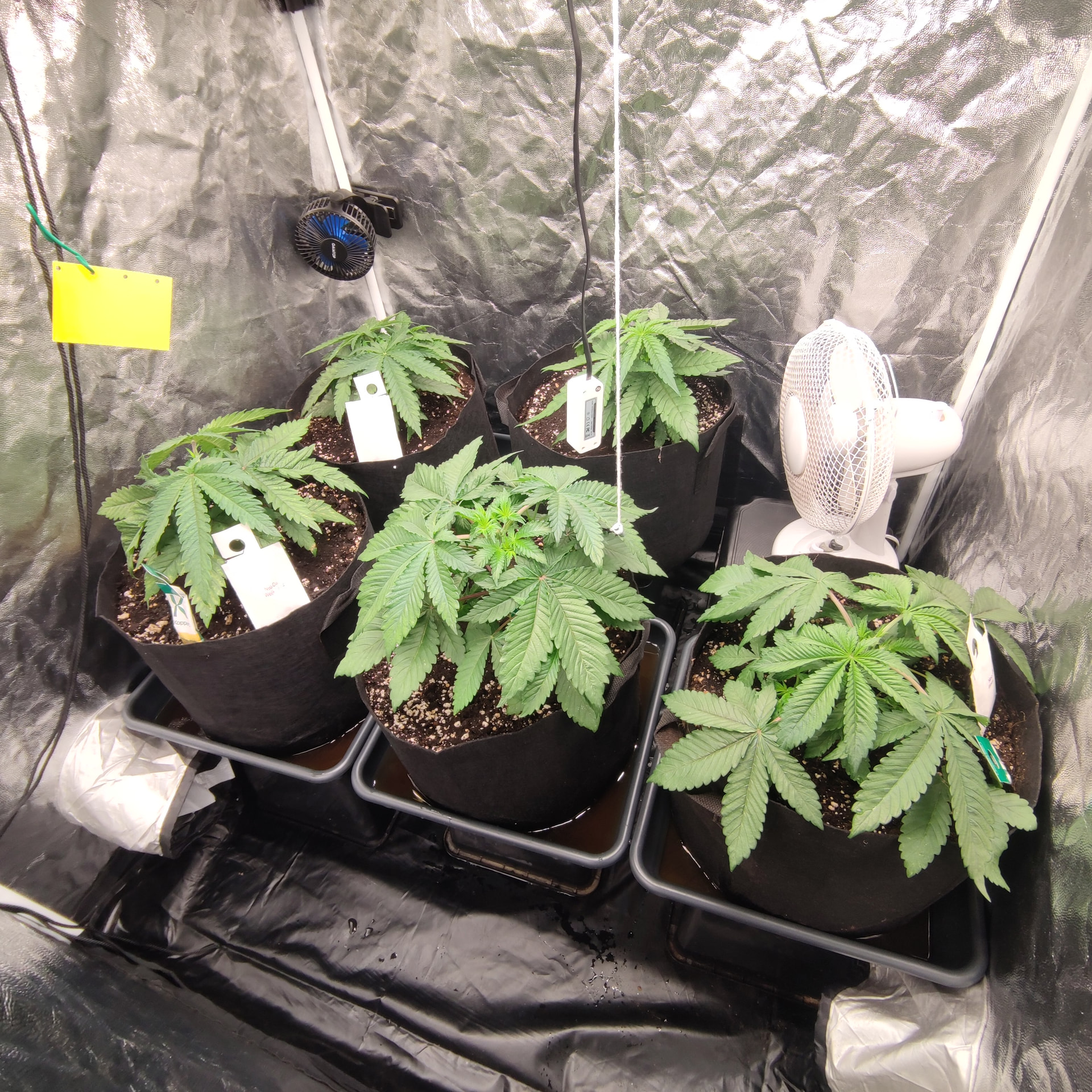 Die Box ist 1×1m und 2 Meter hoch. Bisher sind die Pflanzen nichtmal so hoch wie die Töpfe tief. Ich geb den noch etwas Zeit, klar würden da schon gute Ergebnisse bei rumkommen, ich Versuche halt auf einen besseren Watt/G wert zu kommen als letztes Mal. Mir macht es nichts die noch ein wenig in der vegi zu lassen und das mit dem toppen ist ja bisher nur ein Experiment, ich hatte einen Scrog geplant für diese Runde, deswegen die mehrfache toppung, bisher hab ich mit LST ganz ordentliche Ergebnisse eingefahren, die Töpfe sind groß genug um die Pflanzen noch etwas in die Höhe und Breite zu ziehen. Ich denke schon dass es drauf ankommt wie die buds am Ende verteilt sind, wenn ich wieder teile im Schatten habe, Bringt es mir nicht soviel dass ich dafür 2 Wochen weniger vegi hatte. Dazu ist so die Qualität des weeds auch nicht überall gleich gewesen, was ich auch nicht so schön fand. Gleichmäßige Ausleuchtung und unten alles wegnehmen = gute gleichmäßig belichtete buds ist meine Rechnung. Das hat nur mit lst schon gut funktioniert. Nur hab ich die critical runtz und Tangerine sugar bisher nur mit dem HST Training etwas trainiert. Biegen und entlauben kommt dann kurz vor der Blütephase.