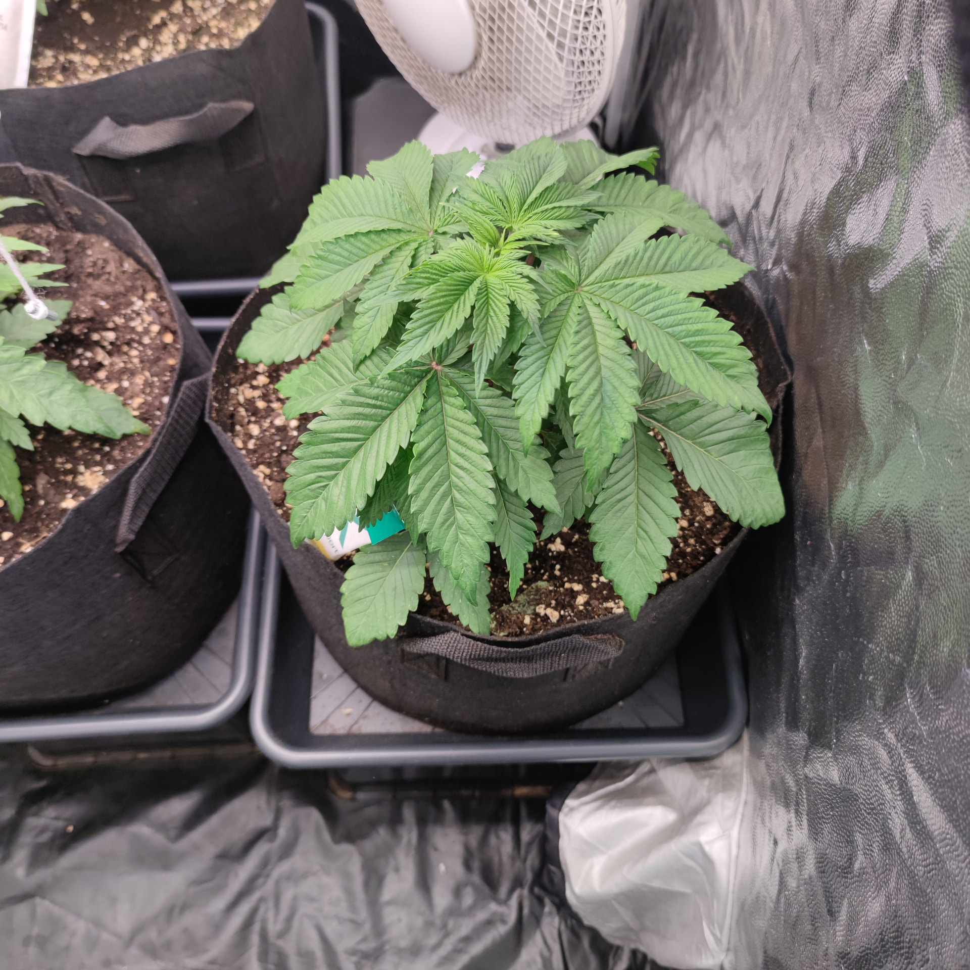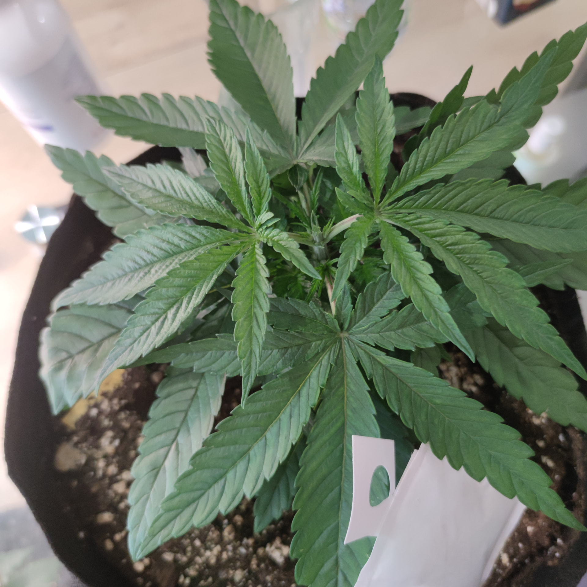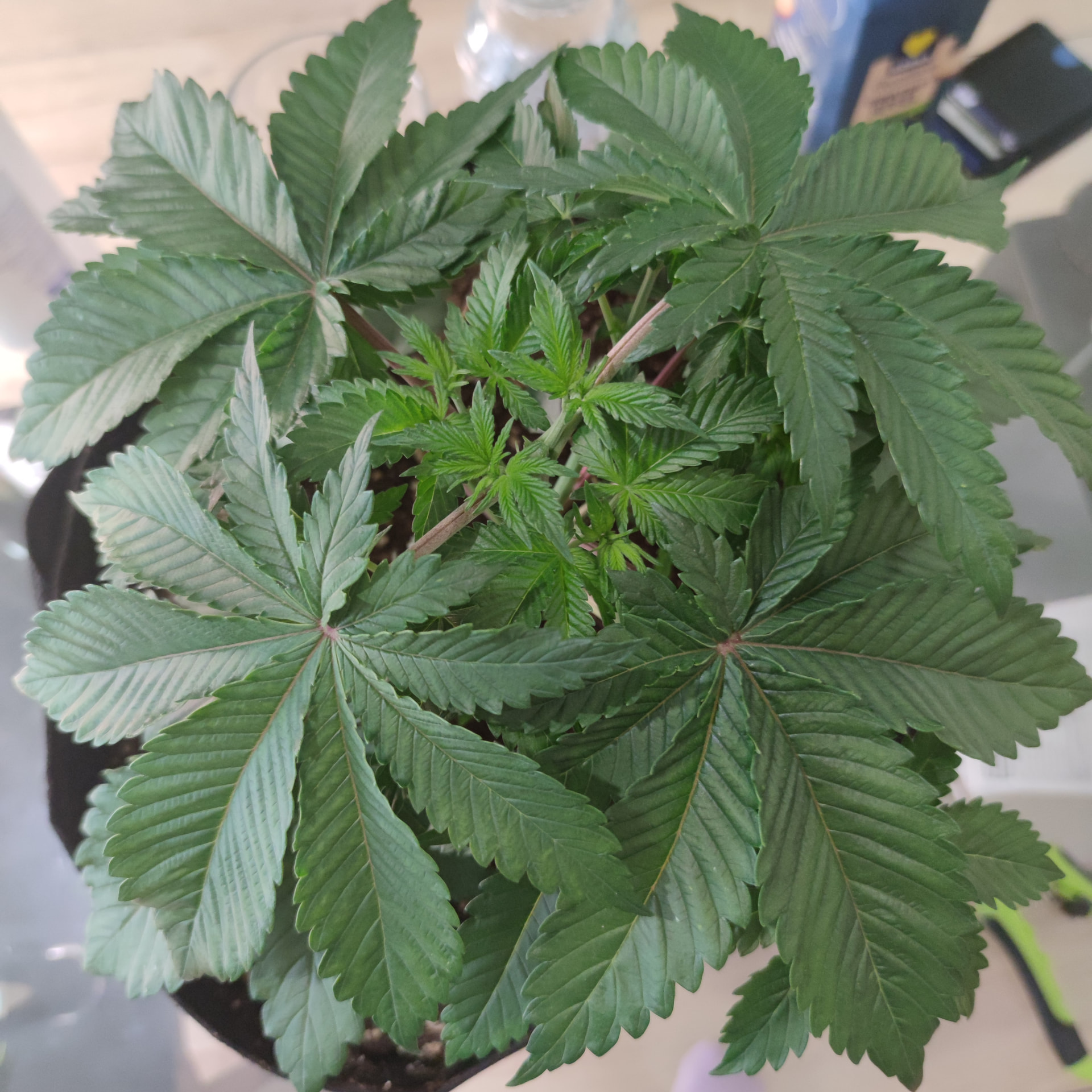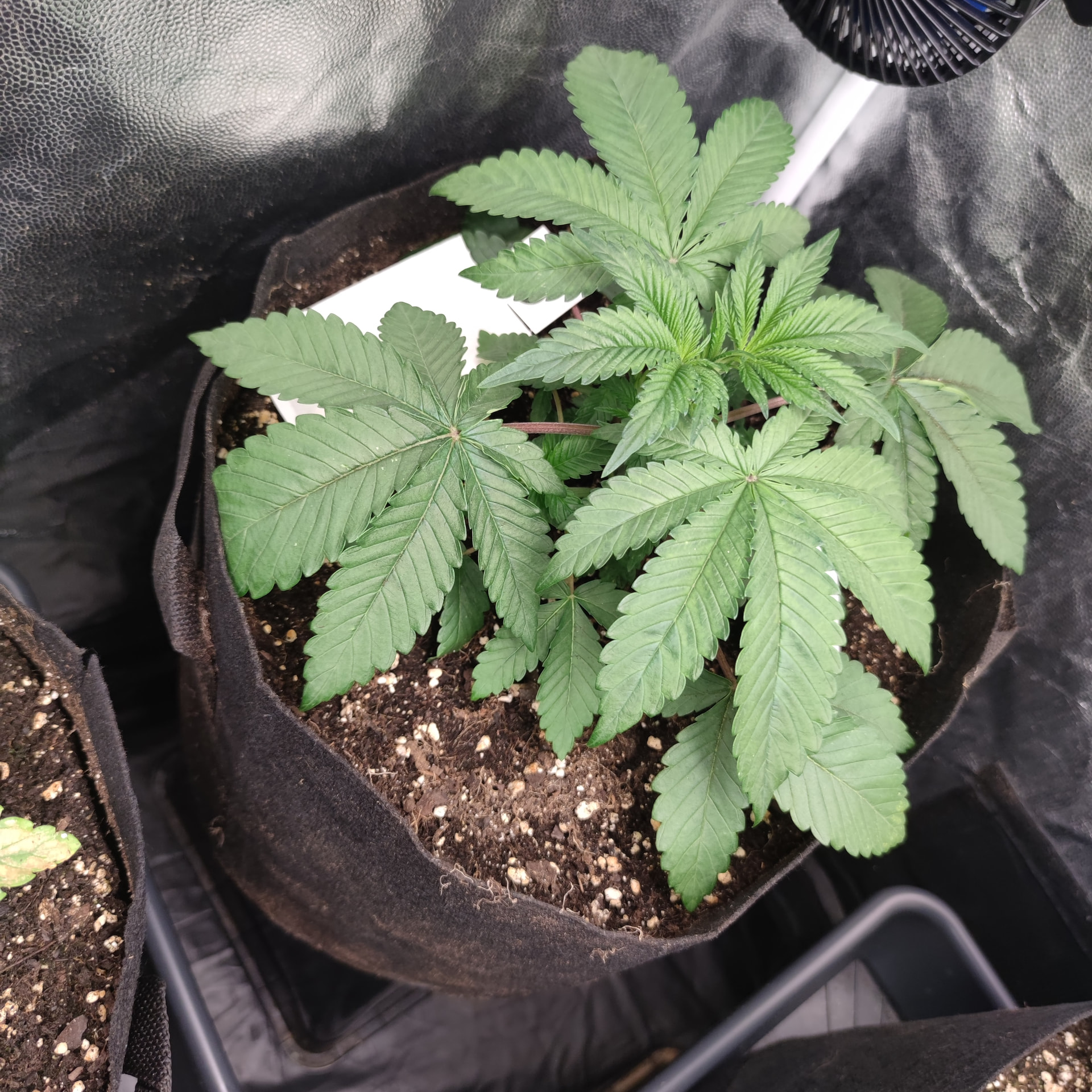 Hab bei der über der 5 Nodie gekappt. Werkzeug desinfiziert und nochmal die Seitenansicht. Bis auf die Blätter mit ihren Spots bin ich eigentlich ganz zufrieden für 2-3 Wochen Vegi bisher.