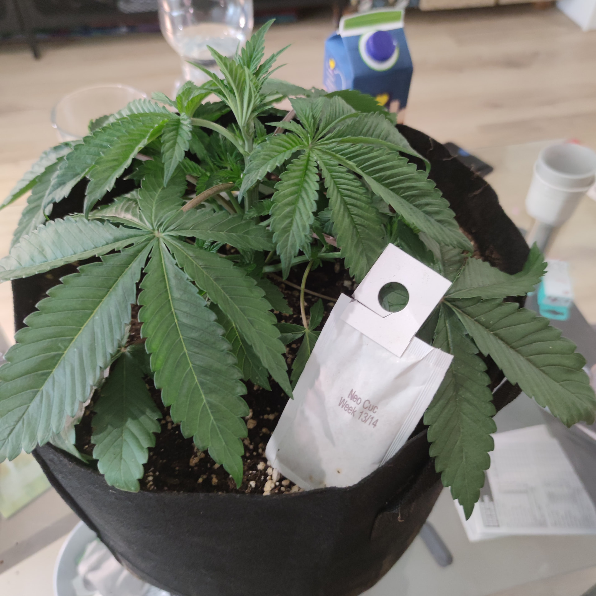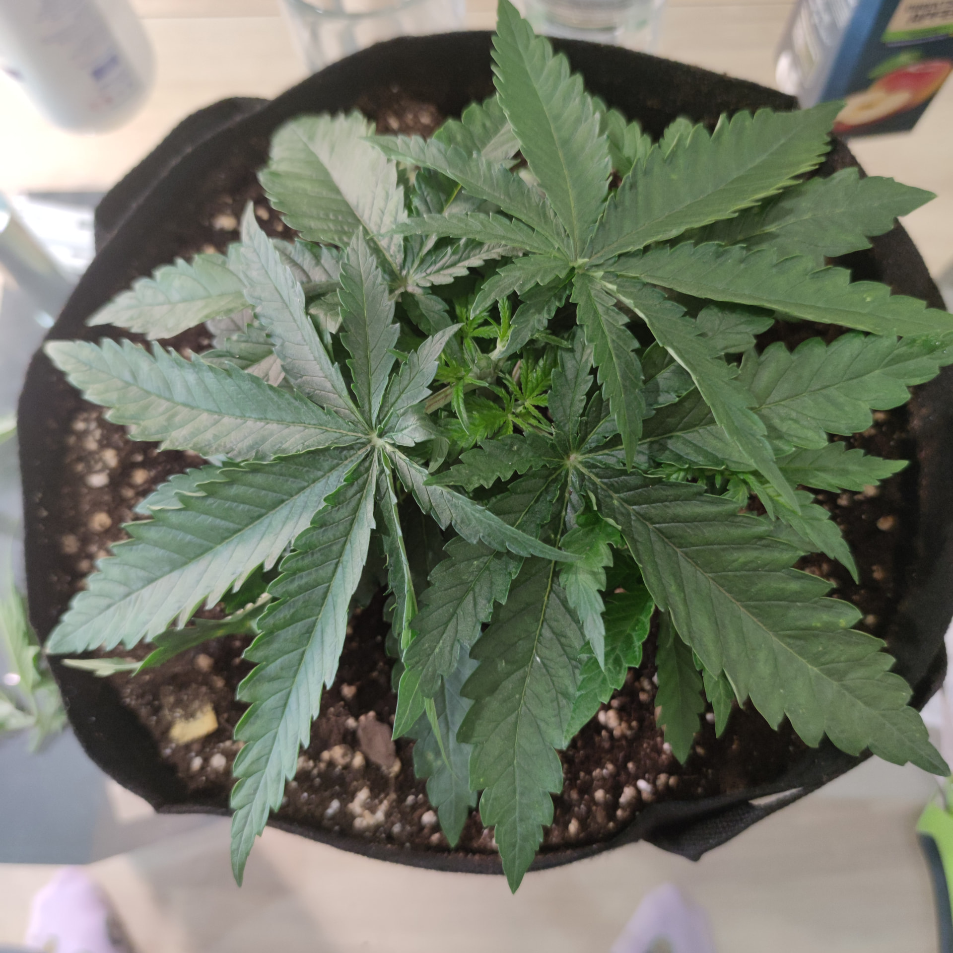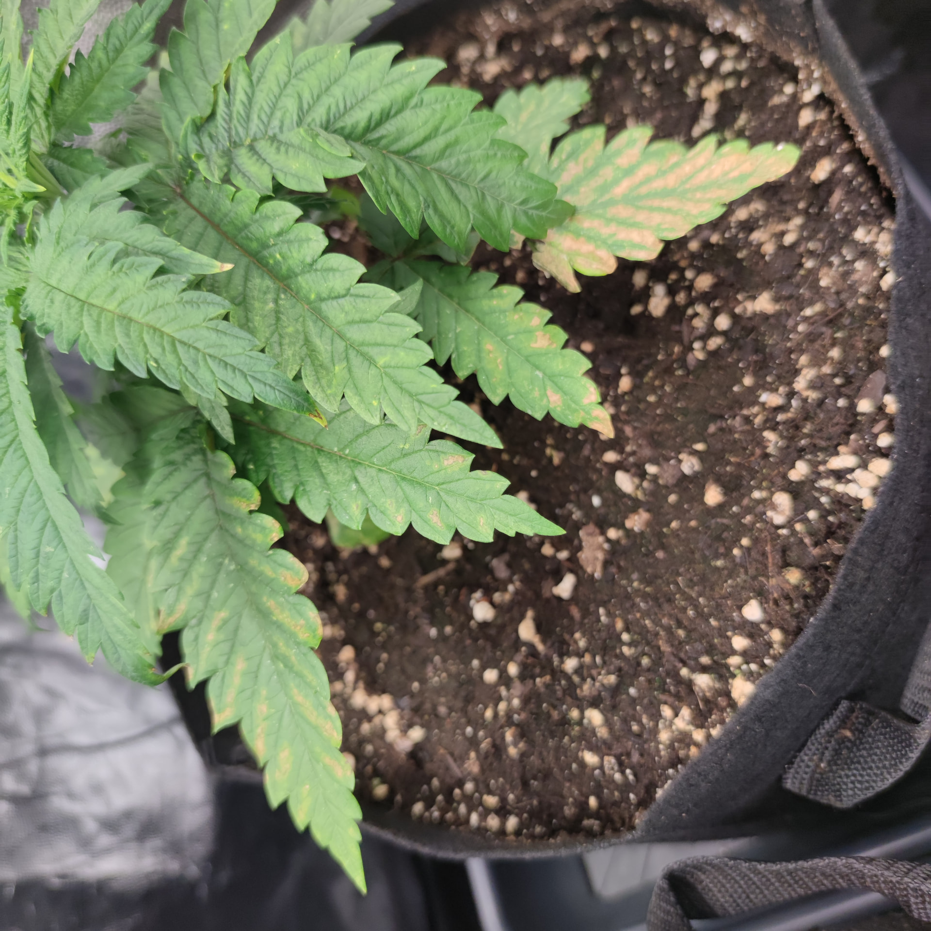 Aufgrund von Genpools Informationen über den Bio bizz light Mix und vielleicht der fehlenden Aktivierung der Erde, hab ich nun nochmal 5 L Nährlösung in die Untersetzer gekippt. Diese sind um die 15 cm hoch, habe nur 1 L von oben gegossen und den Rest in die Untersetzer. Die Töpfe waren bereits Feucht und noch schwerer vom angießen, aber da es Stofftöpfe sind, gehe ich trotzdem von weiterhin guter Sauerstoffversorgung aus.
