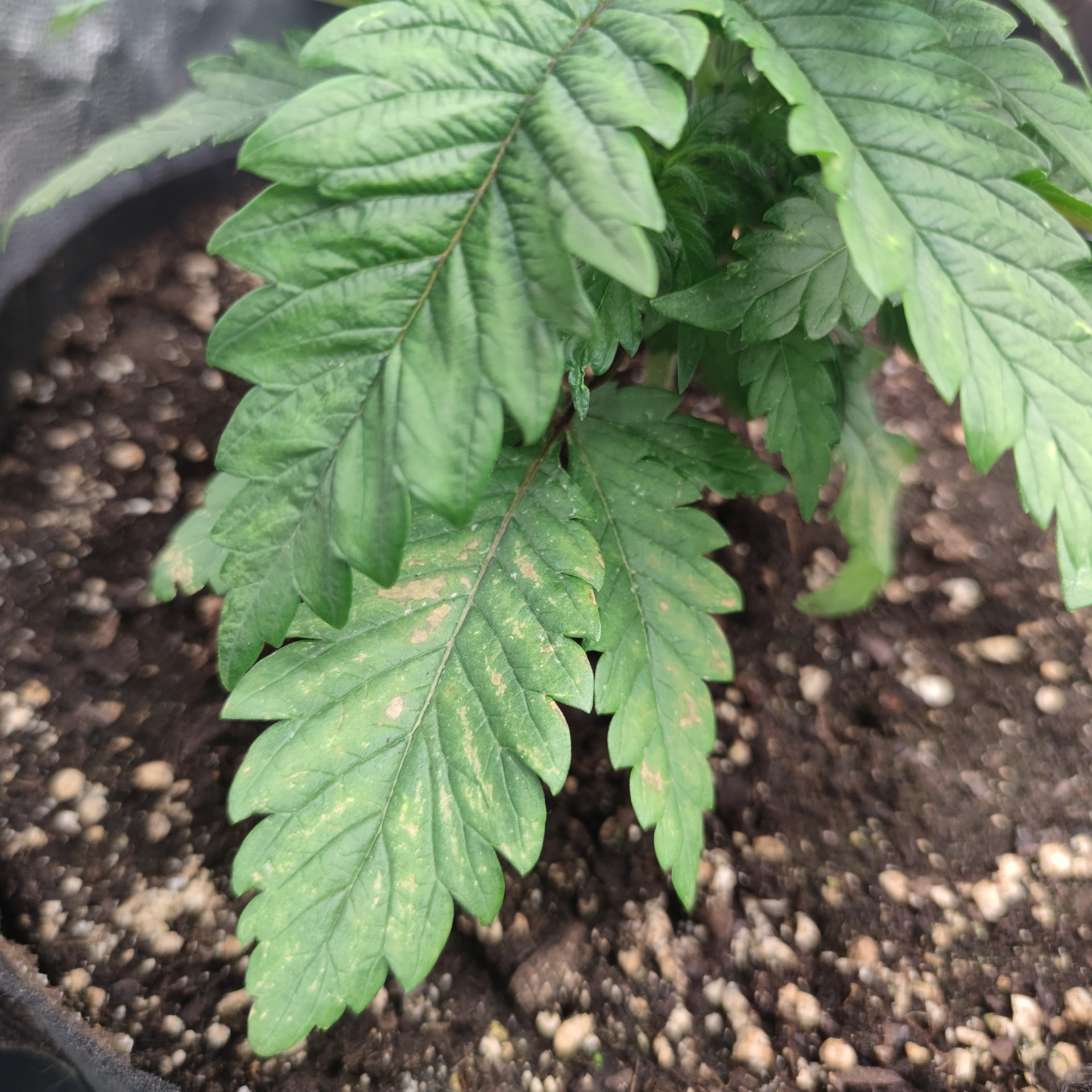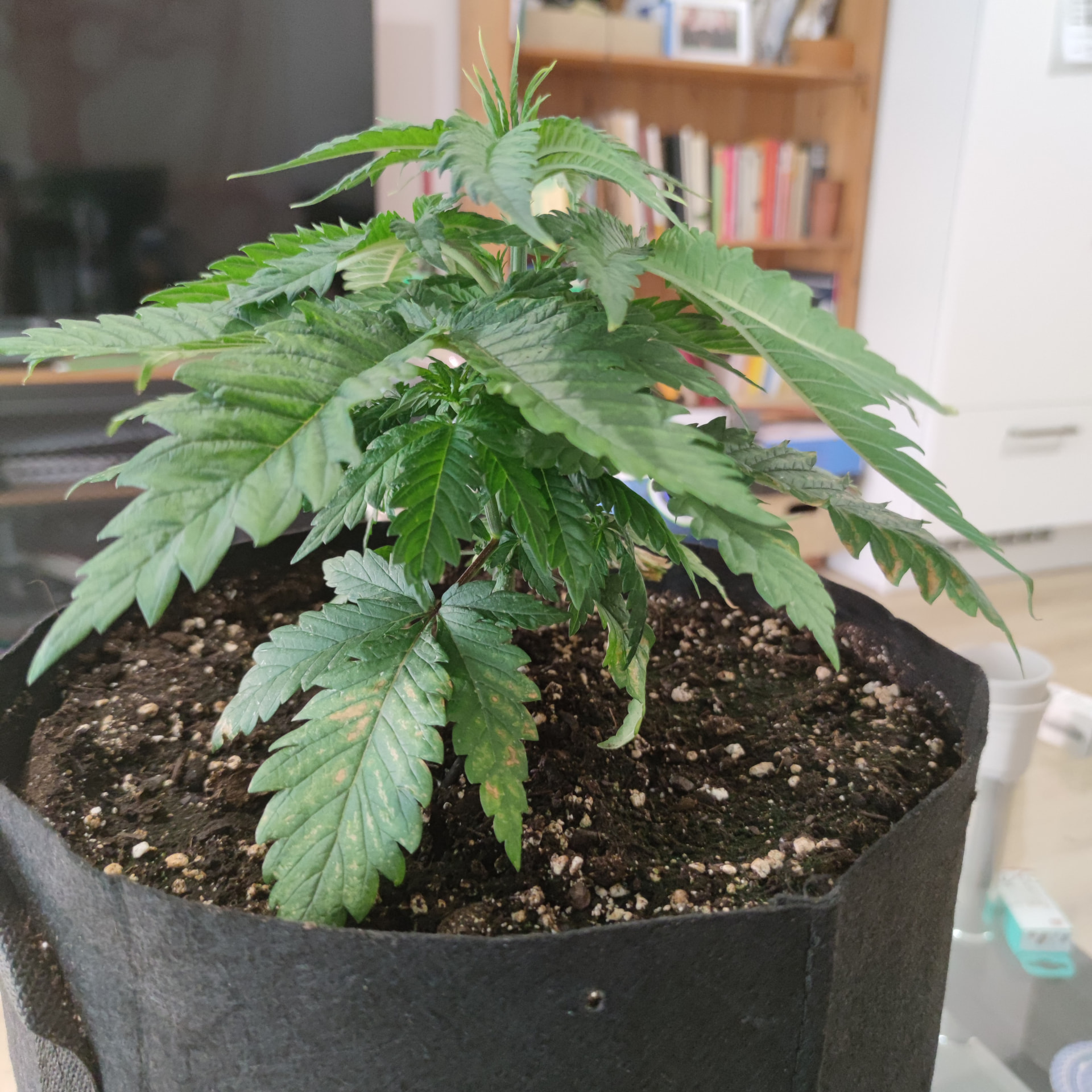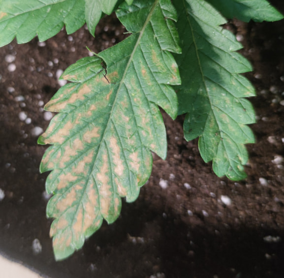 Dazu sieht die eine Tangerine wirklich scheiße aus, die Braun nekrotischen stellen breiten sich aus, obwohl ich Magnesium nachkorrigiert habe. Ich bin etwas ratlos, hab orgendlich Growdünger beim umtopfen, 4 L Wasser pro Pflanze, aber im 20 L Stofftopf. Die Box ist nicht zu warm, nicht zu nass. RLf bei 55-60% Temperatur zwischen 25-27 Grad tags und 21 nachts.