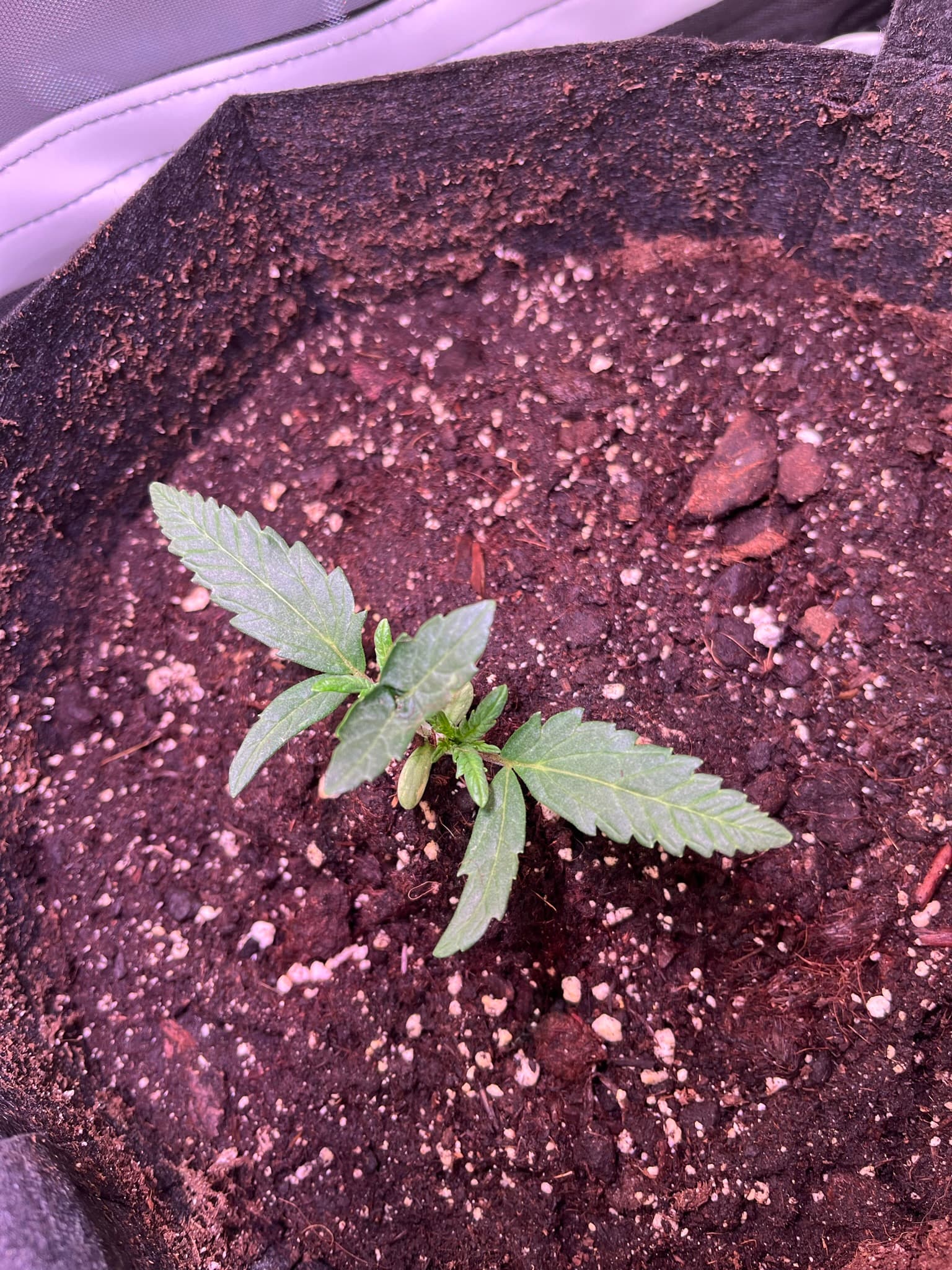 Die Genetik scheint eine Überraschungsbox zu sein, da fehlen Blattfinger und sie hat sich quasi schon selbst getoppt auf 2 Haupttriebe. ![]()