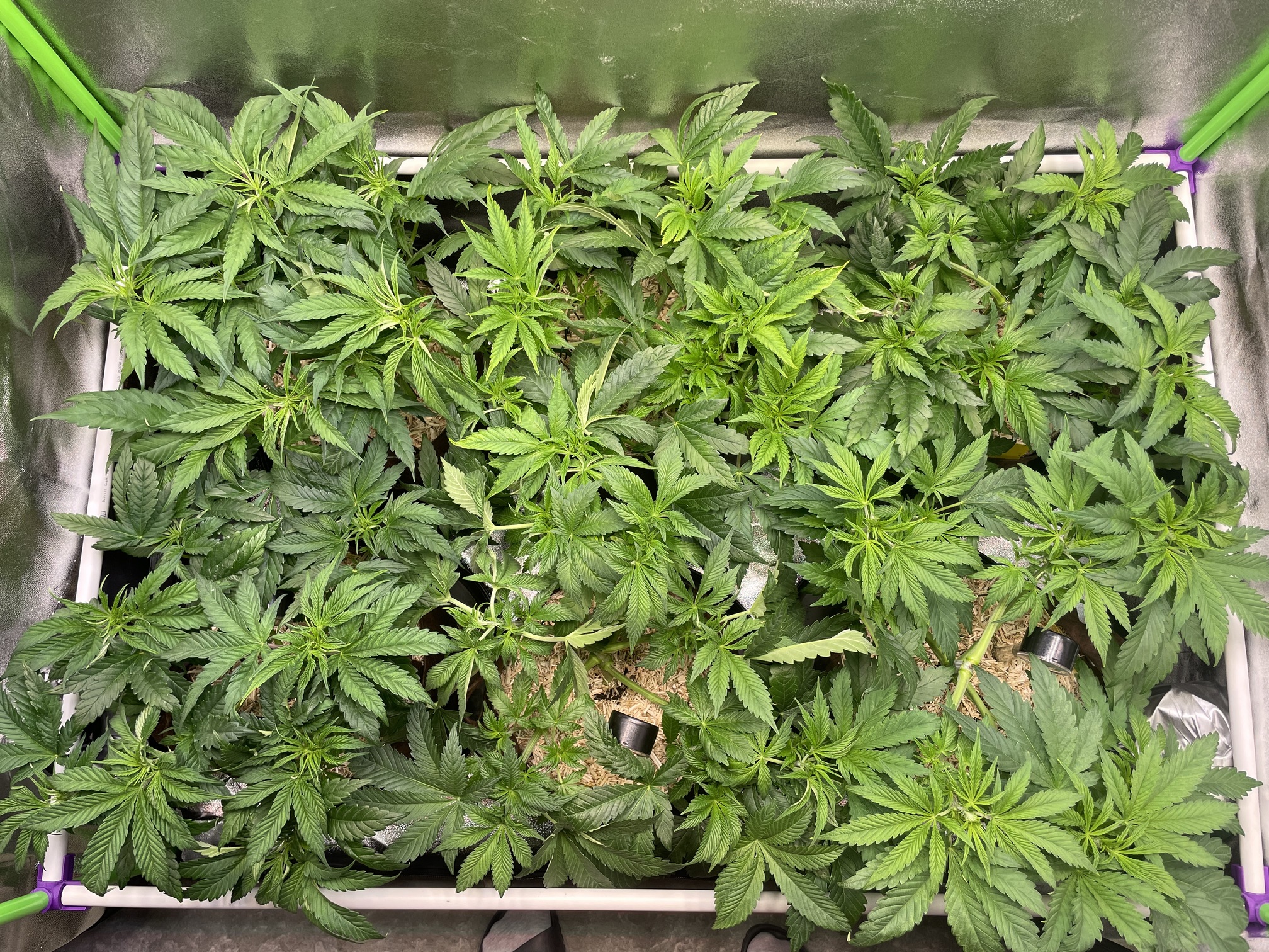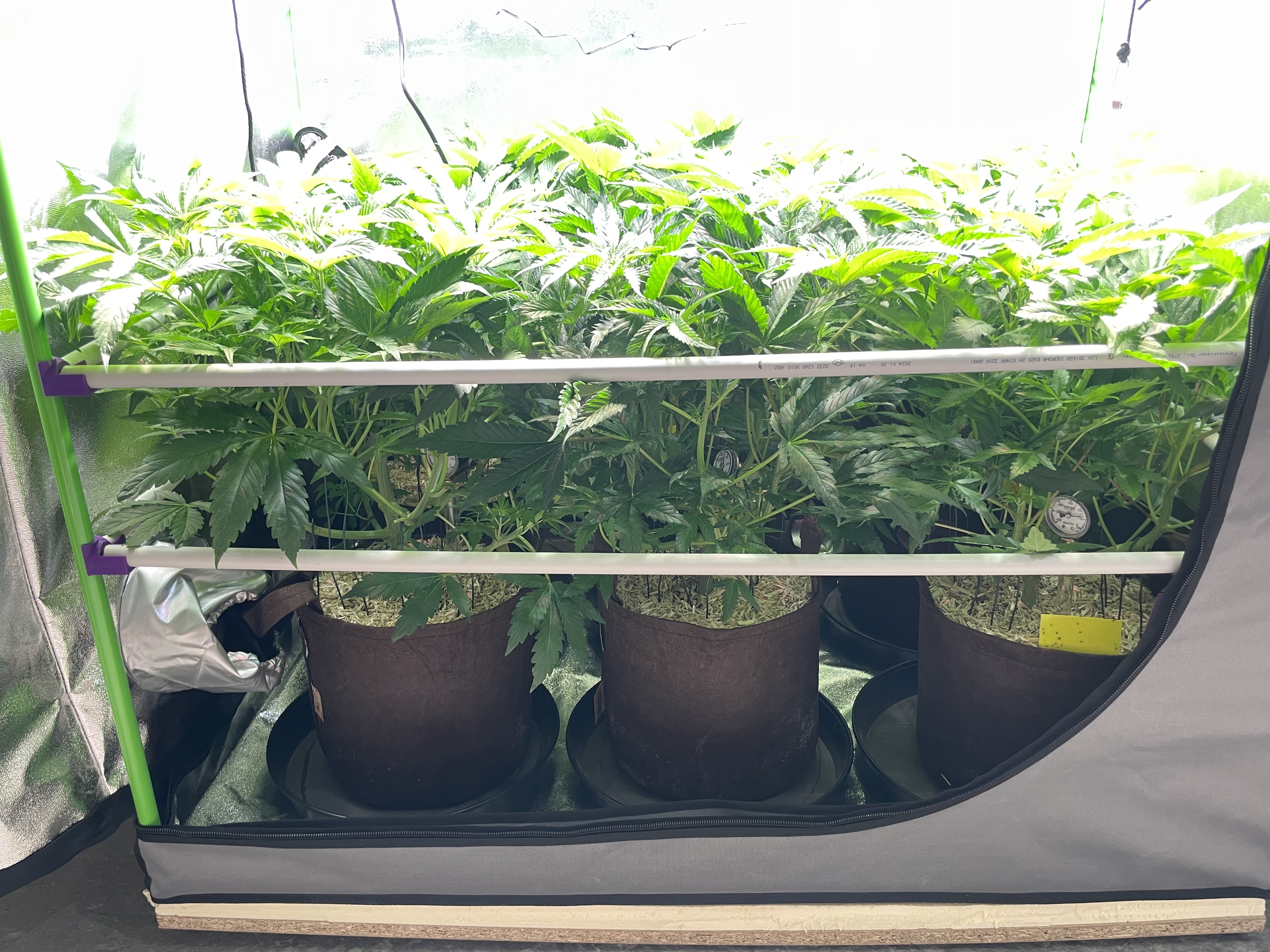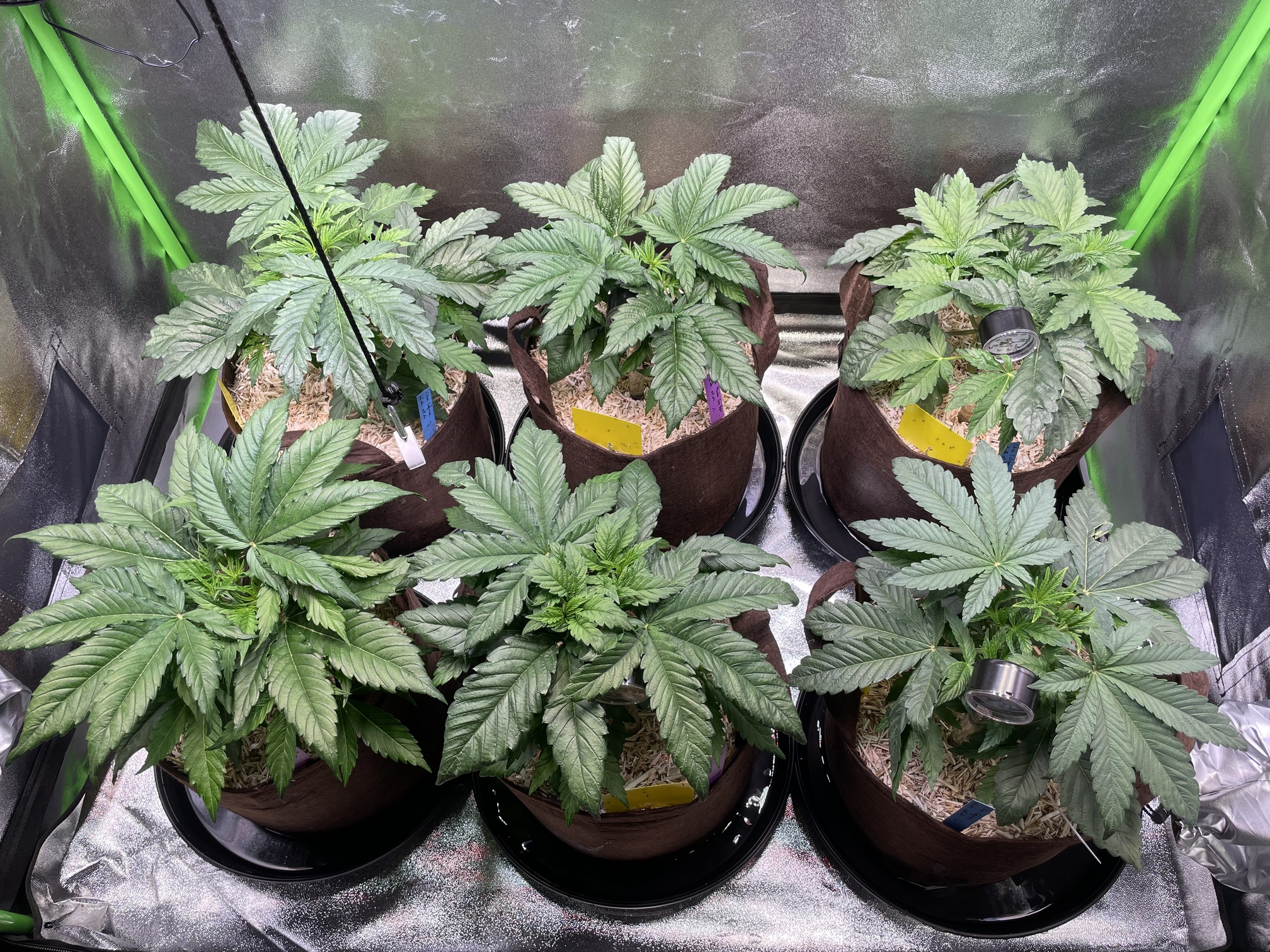 Im letzten Run hatte ich einen Stickstoffüberschuss und gerade Nachts zu kalt, womit der Nährstoffbedarf zusätzlich niedriger war. Für den Anfang bleibt daher auch die Heizmatte für warme Füße an. Bis zu Blüte, sollten die Temperaturen bei etwa 24 Grad im Zelt liegen.
