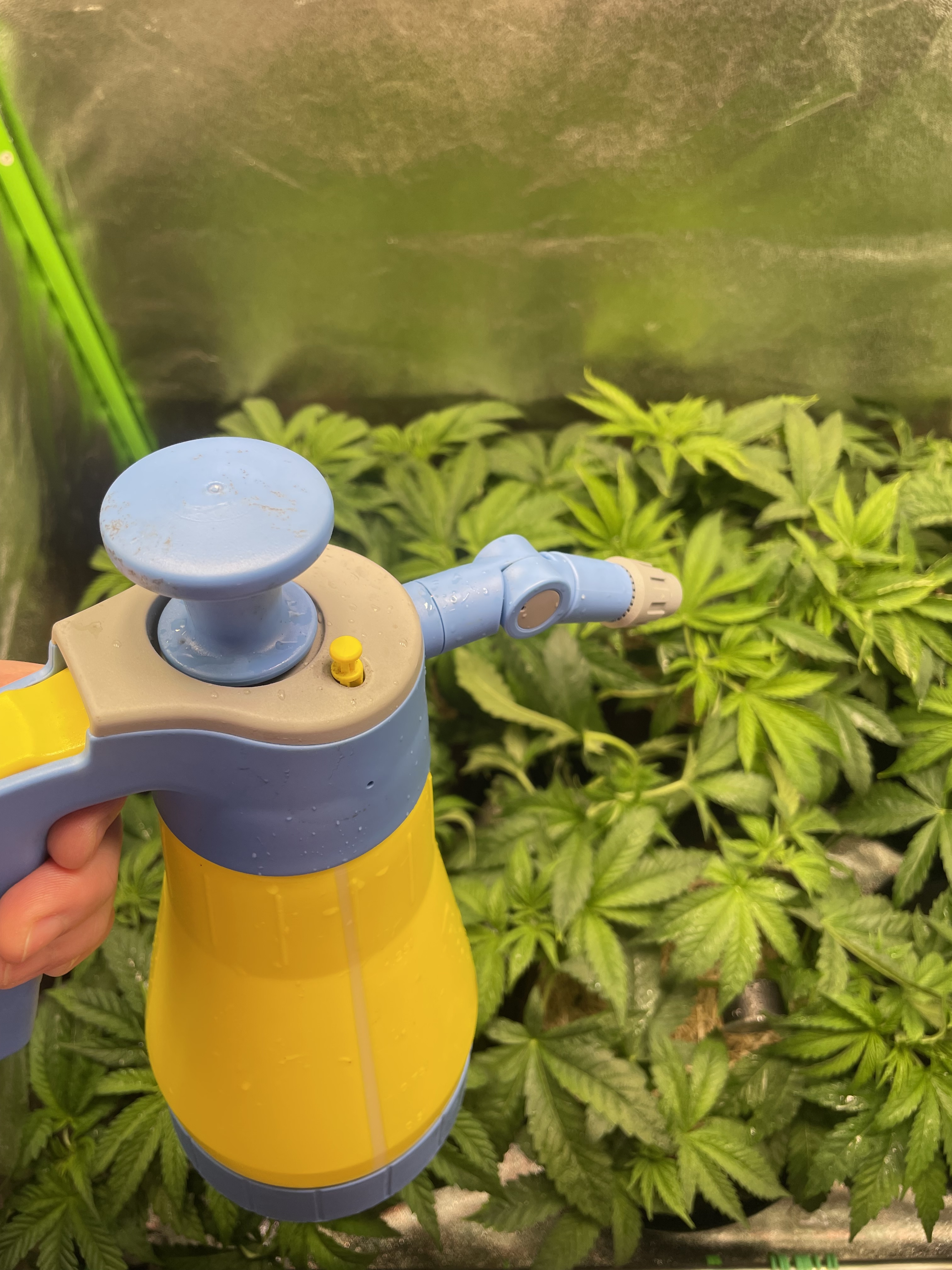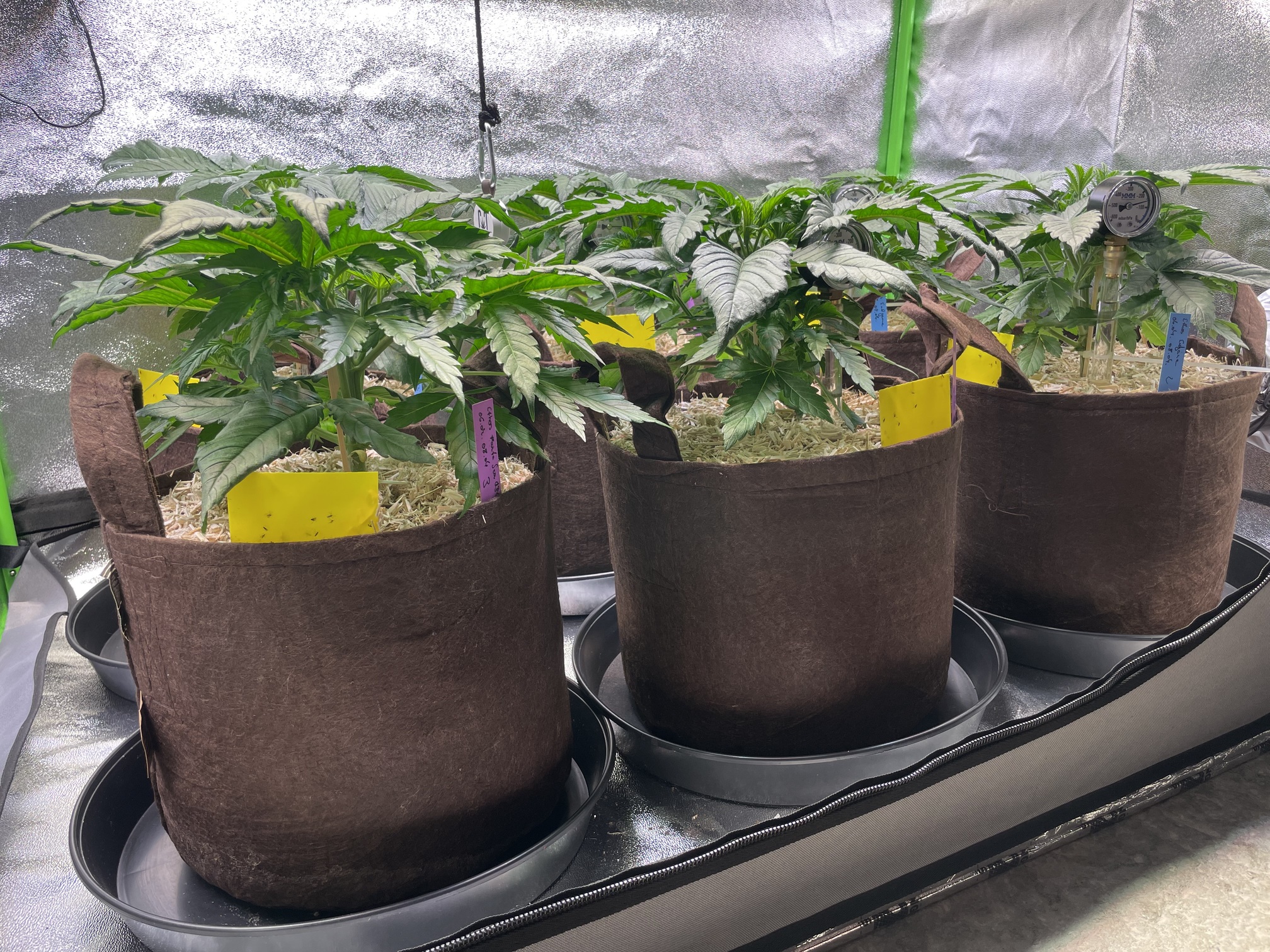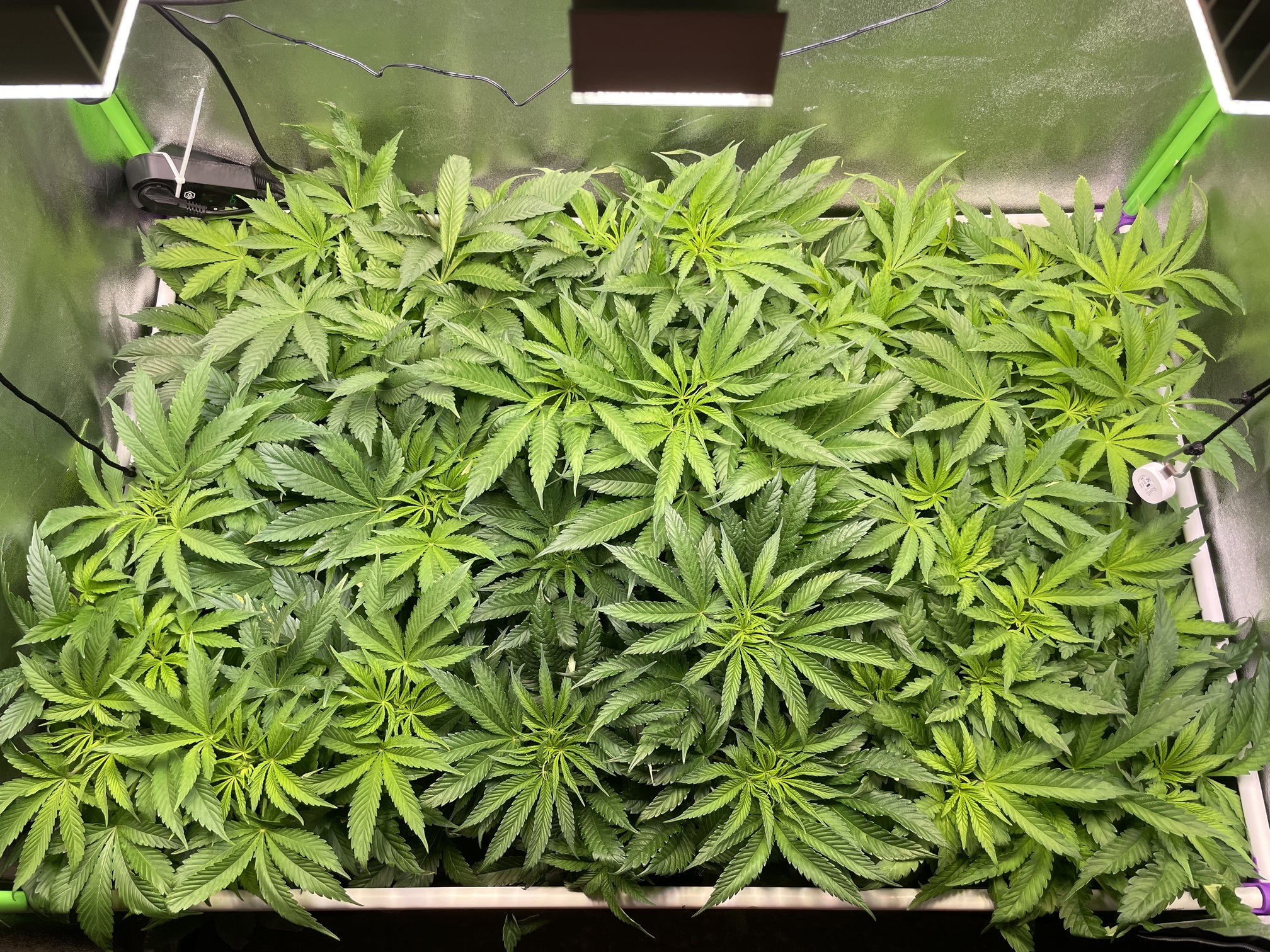 Im letzten Run hatte ich einen Stickstoffüberschuss und gerade Nachts zu kalt, womit der Nährstoffbedarf zusätzlich niedriger war. Für den Anfang bleibt daher auch die Heizmatte für warme Füße an. Bis zu Blüte, sollten die Temperaturen bei etwa 24 Grad im Zelt liegen.