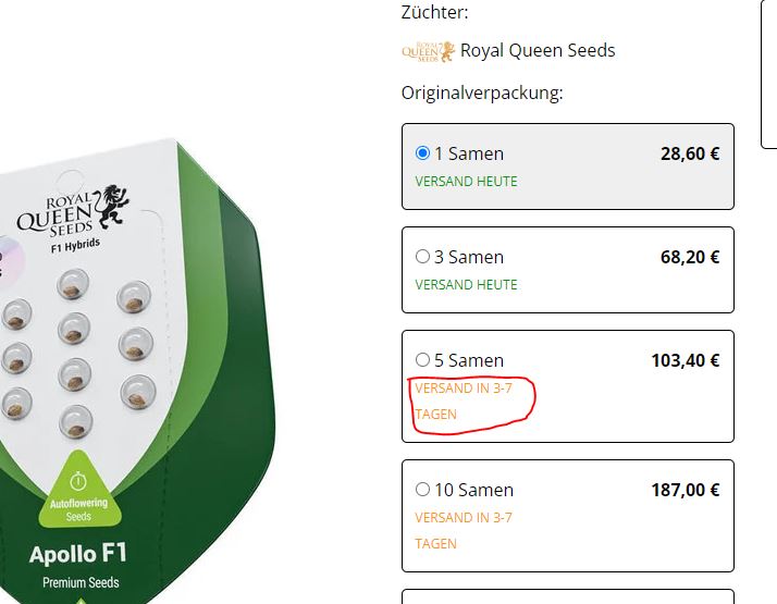 Wenn jemand Saatgut mit dem Status ‚VERSAND IN 3-7 TAGEN‘ bestellt, müssen wir es vom Lieferanten abrufen.