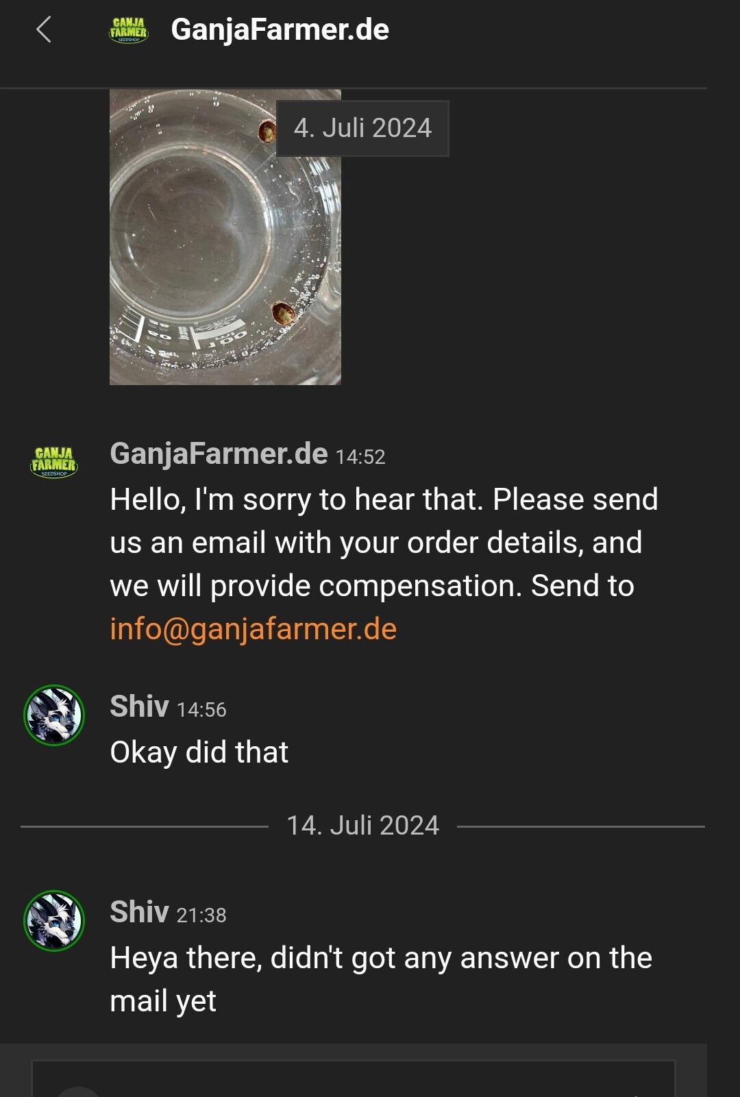 Die Samen wurden bemängelt, es hieß ich solle doch ne Email schreiben.