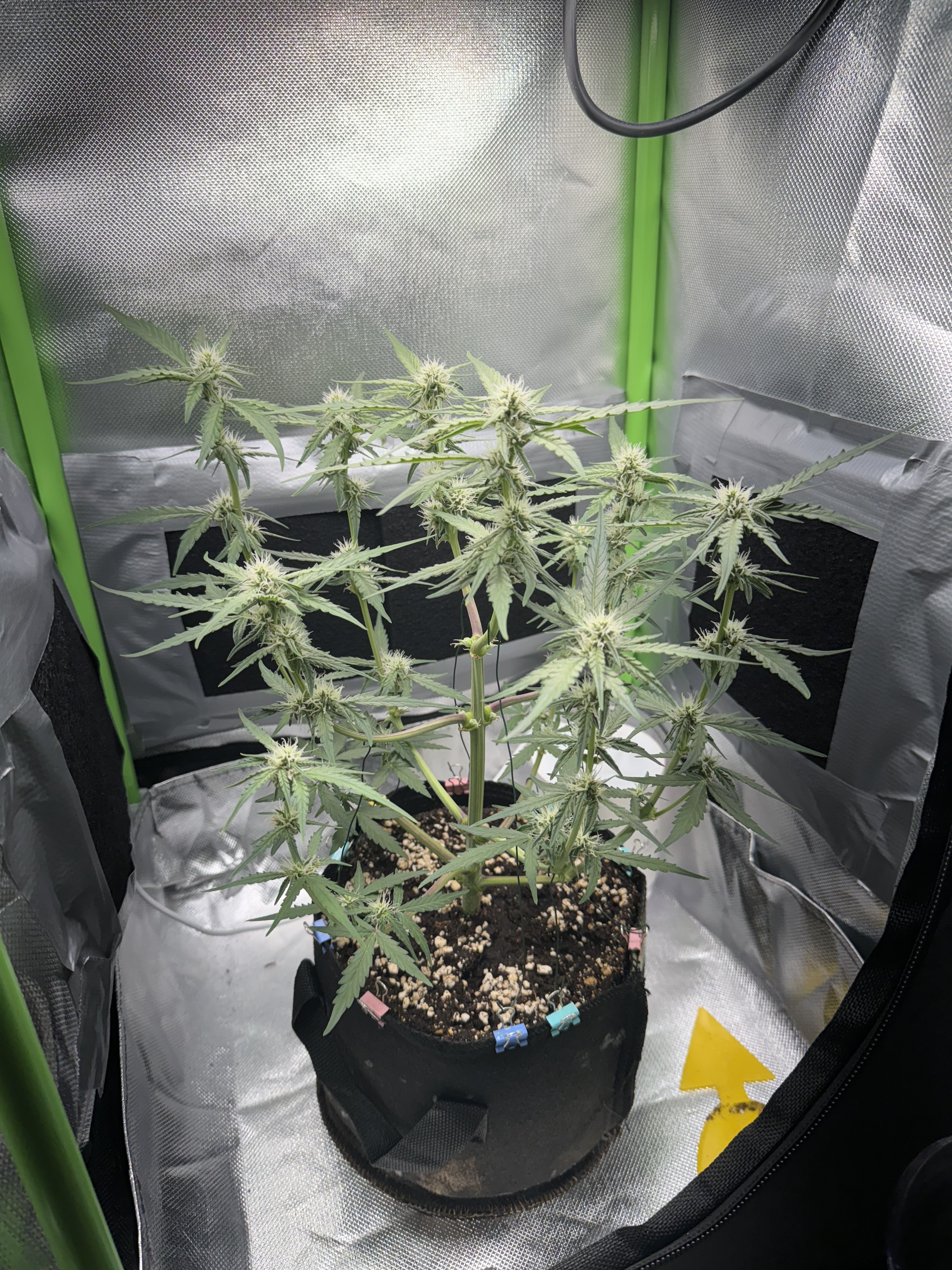 Die Pflanze steht nun seit 14 Tagen unter dem Licht. Ich bin bei der 5 Nodie angekommen und habe sie gerade geköpft.