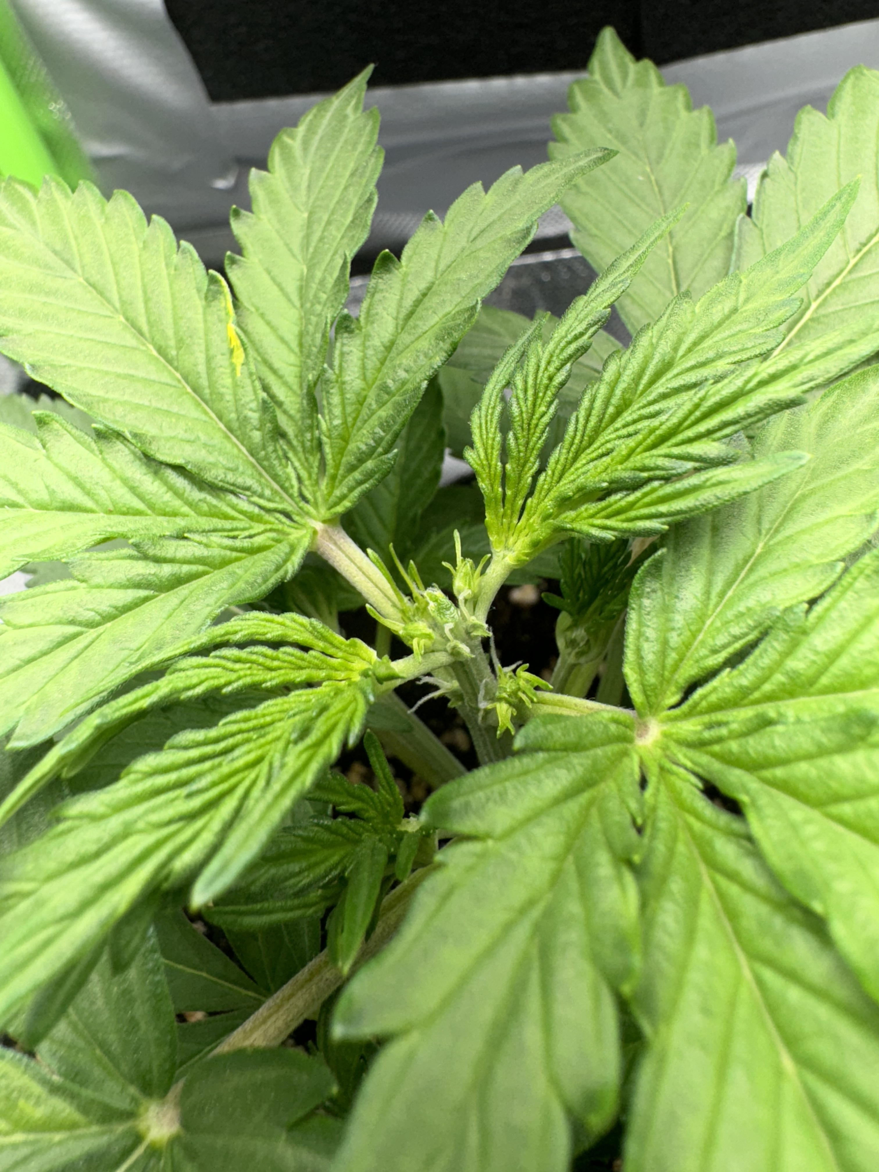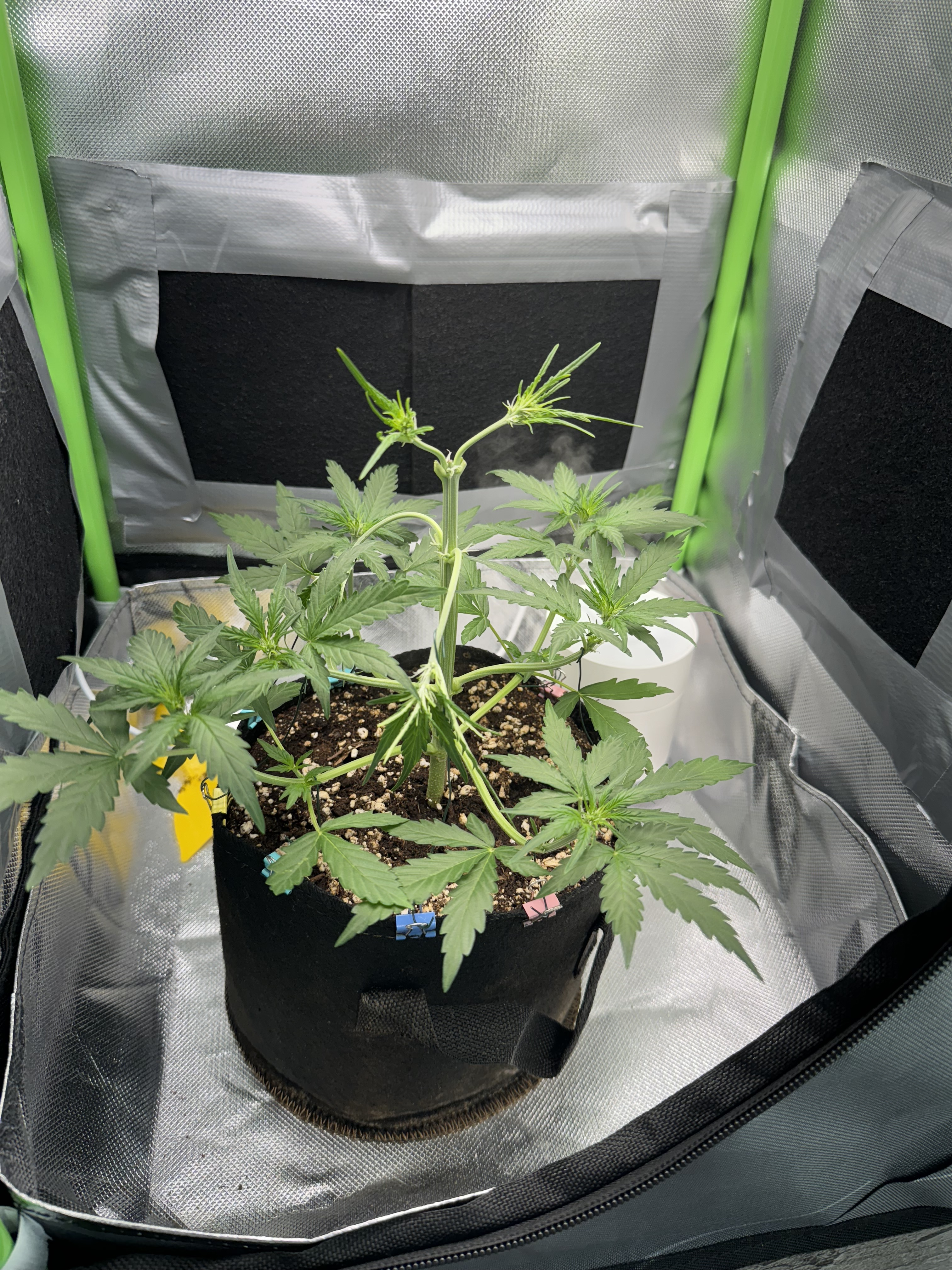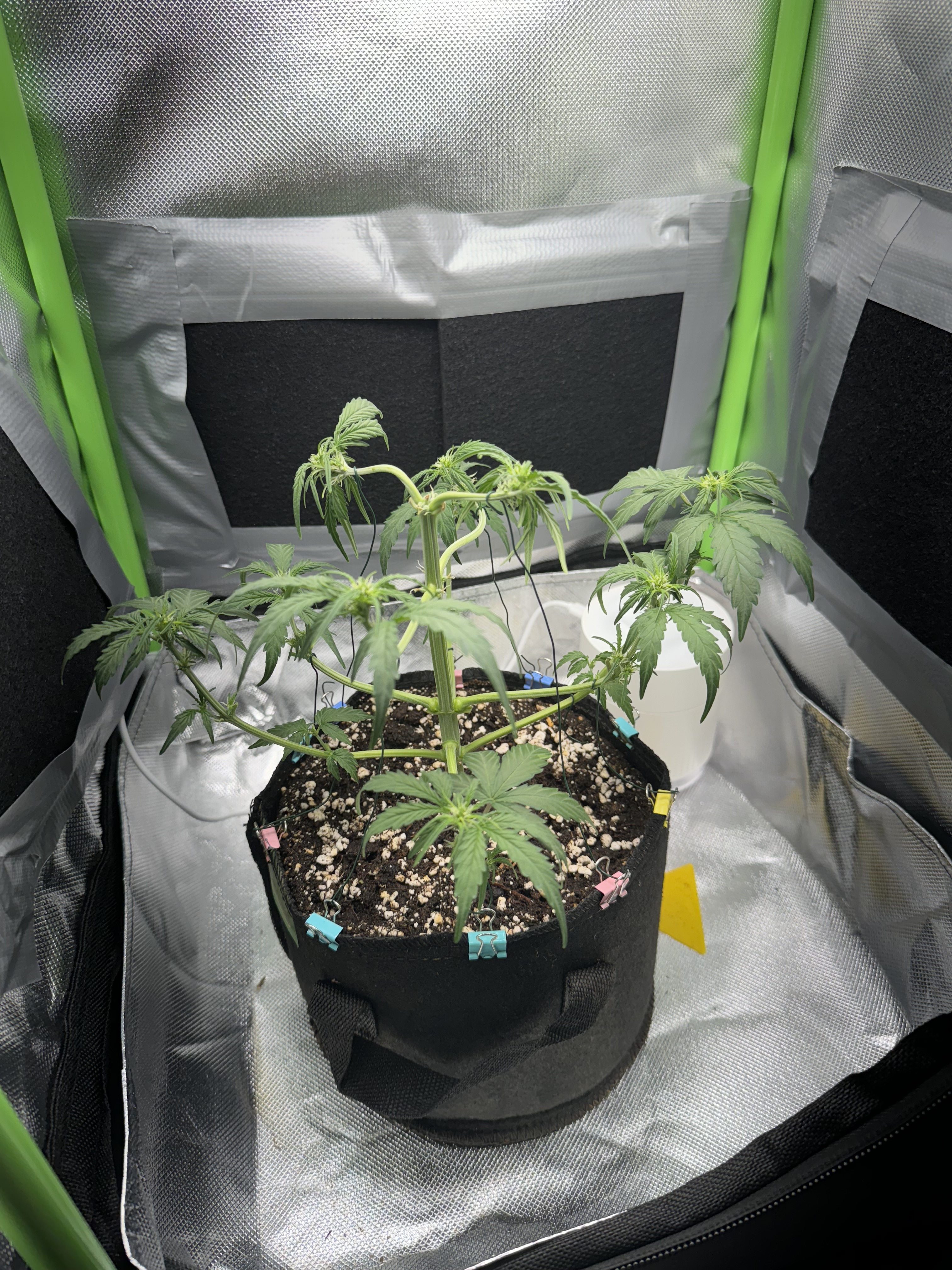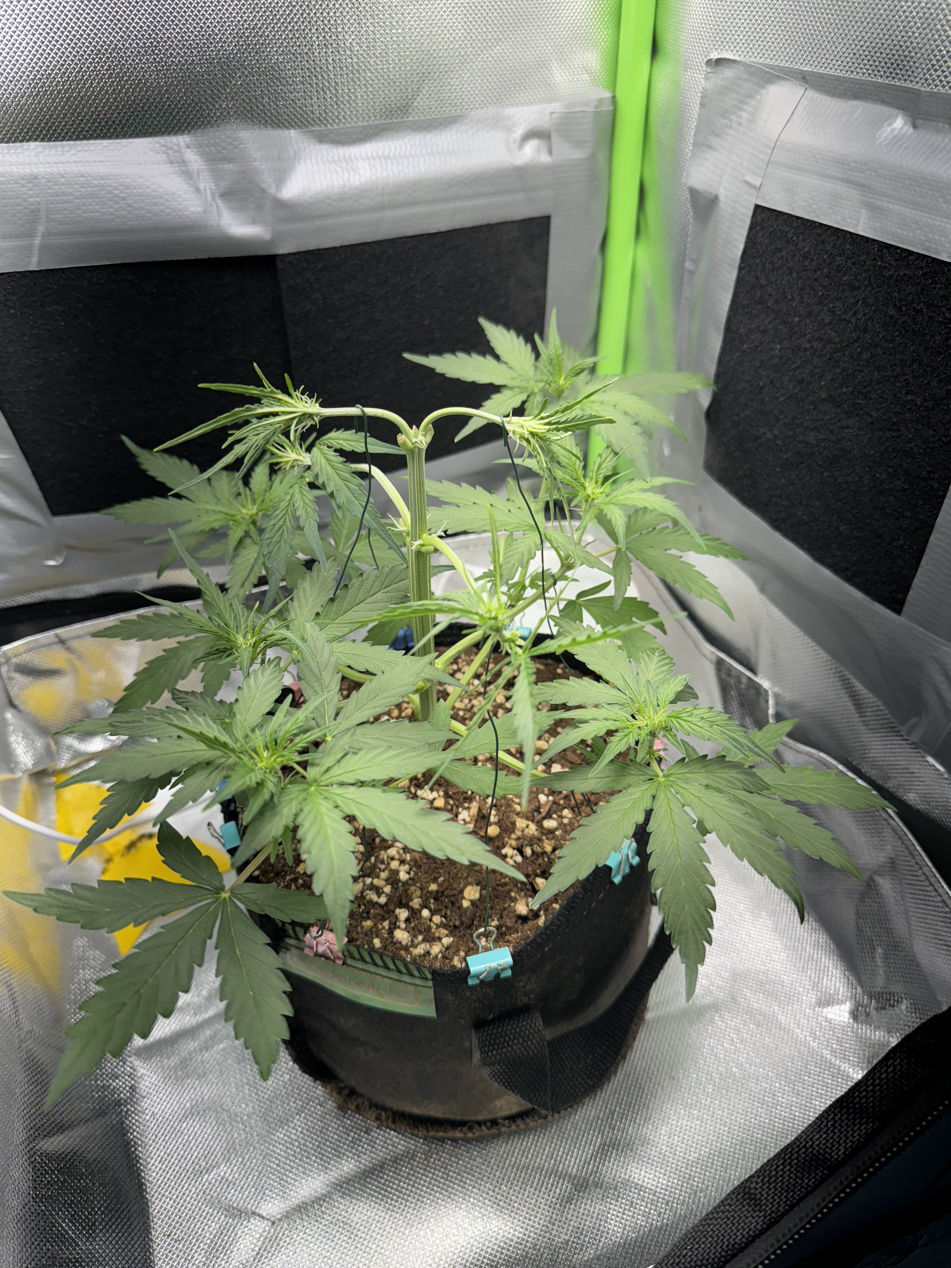 Bleibt bei der einen. Ich wollte hier mal etwas probieren was Topping in Verbindung mit LST angeht. Das habe ich mir beim ersten Grow noch nicht zugetraut. Diese F1 wird auf jeden Fall geköpft.
