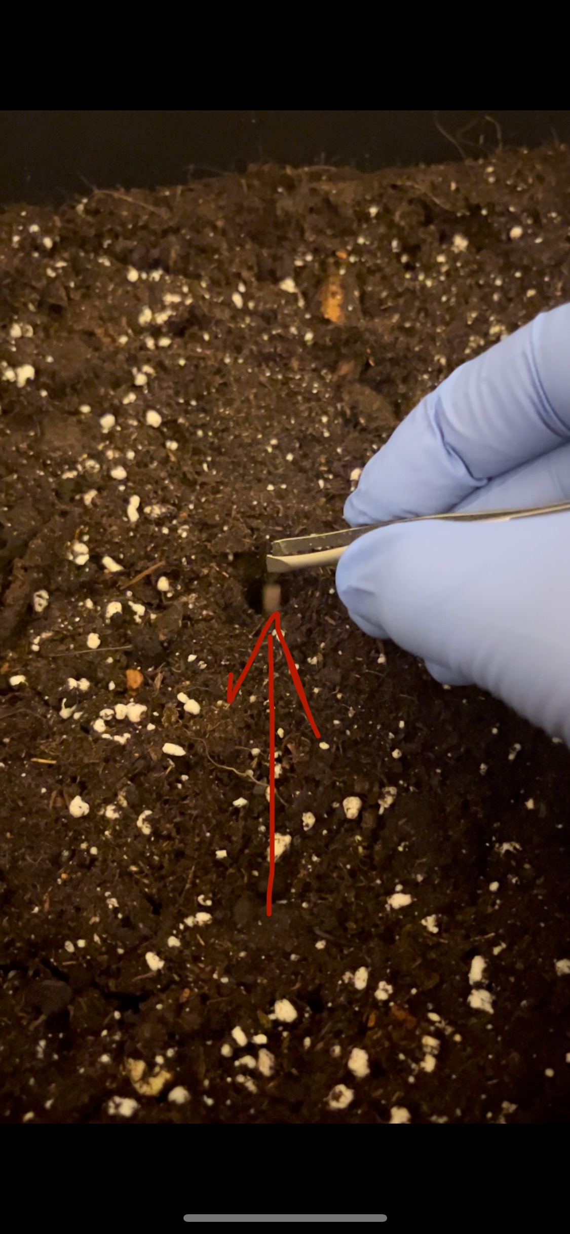 Der Samen wurde dann per Pinzette direkt in die Erde gesetzt, ca. 1-1,5cm tief.