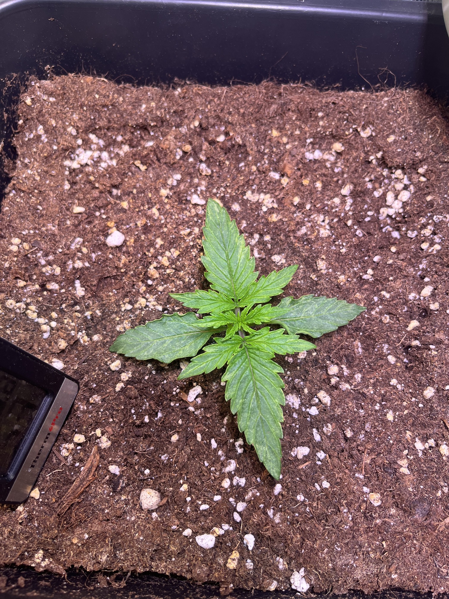 Zähle ab heute Vegetationsphase, die ersten 5-fingrigen Blätter sind jetzt sichtbar.