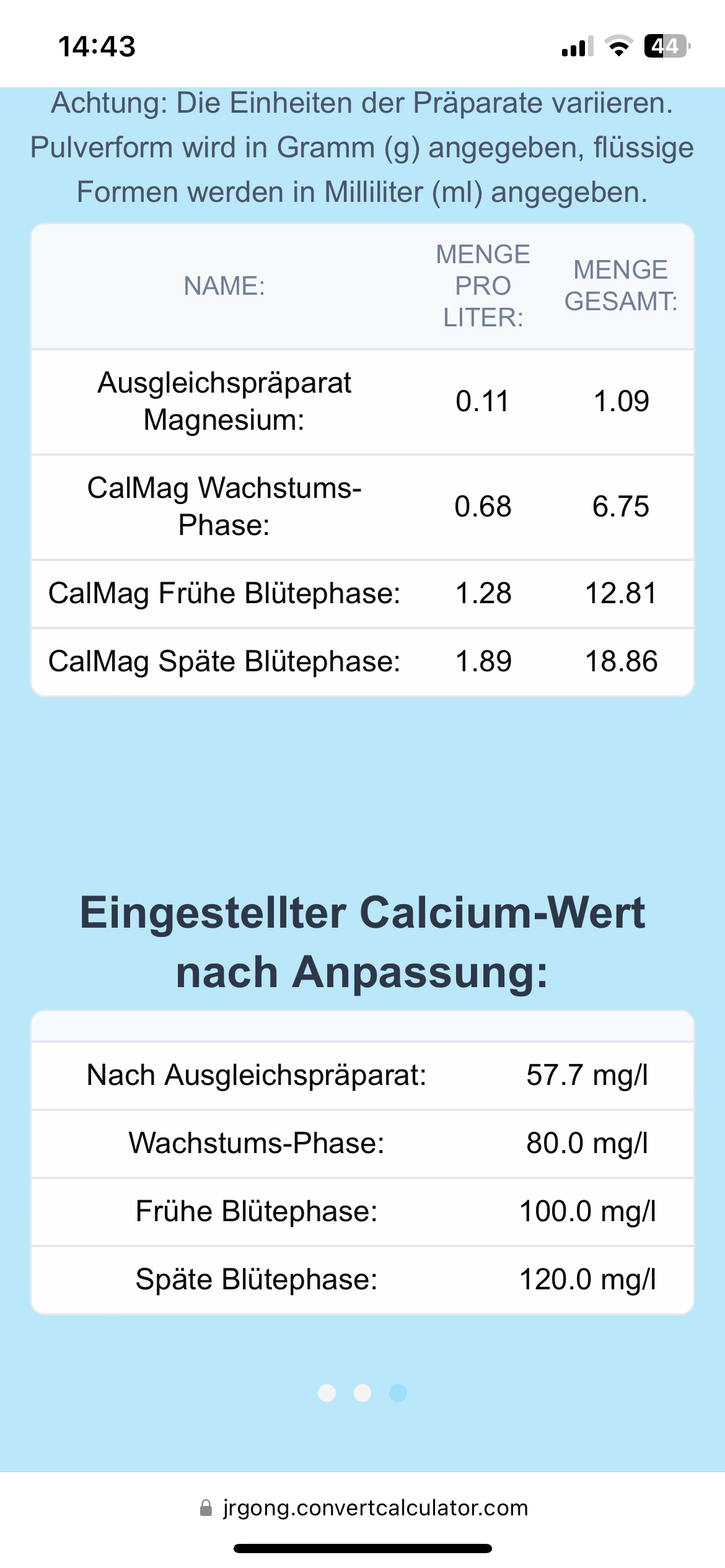 Hab auch den calmag Rechner hier benutzt…ich muss zu geben…bin leicht überfordert jetzt …hier die Bilder was mir der Rechner ausspuckt…wär super wenn sich das jemand mal anschaut und mir eine kleine Anleitung gibt was ich jetzt wie mache/mische usw…Danke im Voraus