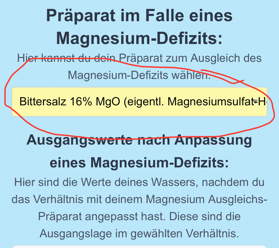 -bittersalz hinzufügen: laut Rechnung auf 10l 1,09g. Und das IMMER!