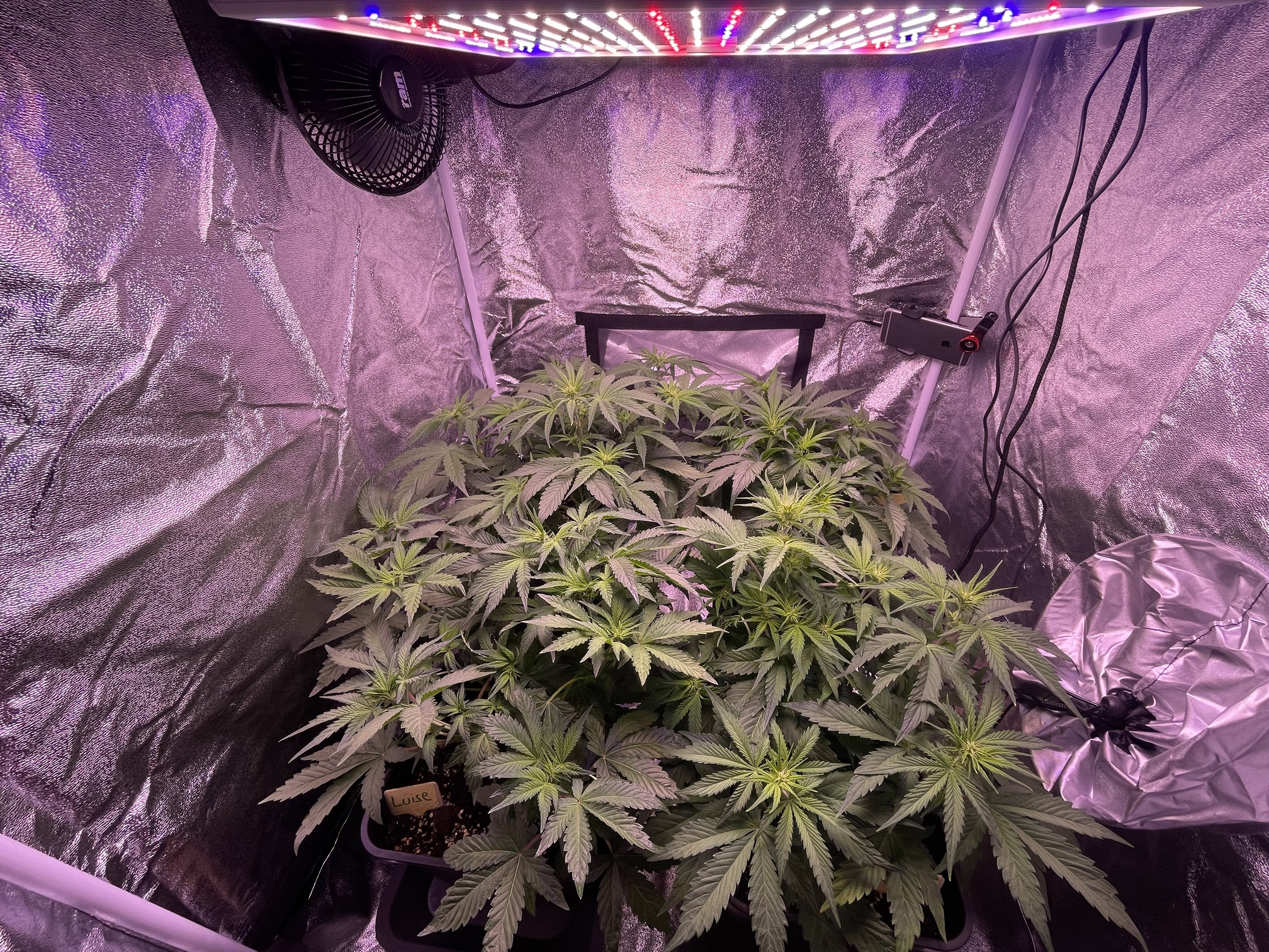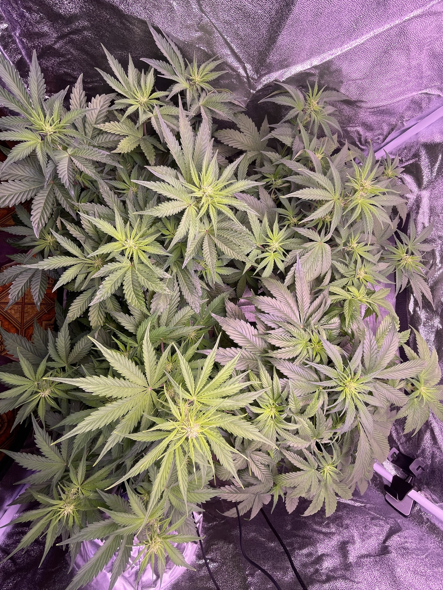 Ich werde jetzt einfach geduldig sein und abwarten bis die Mädels sich voll und ganz der blütenbildung widmen. Dann wird bisschen entlaubt. Vielleicht traue ich mich auch triebe wegzunehmen…mal schauen. Bis jetzt muss ich sagen nehmen mir die Damen alles ab und verzeihen mir sogar auch die anfänglichen Fehler (z.b anfangs zu viel Wasser). Total interessant finde ich auch das es sich um die gleiche Sorte Pflanze handelt aber doch jede etwas verschieden ist. Eine klein und buschig mit vielen und kurzen nodien Abständen. Diese Pflanze (Ginger ihr Name
