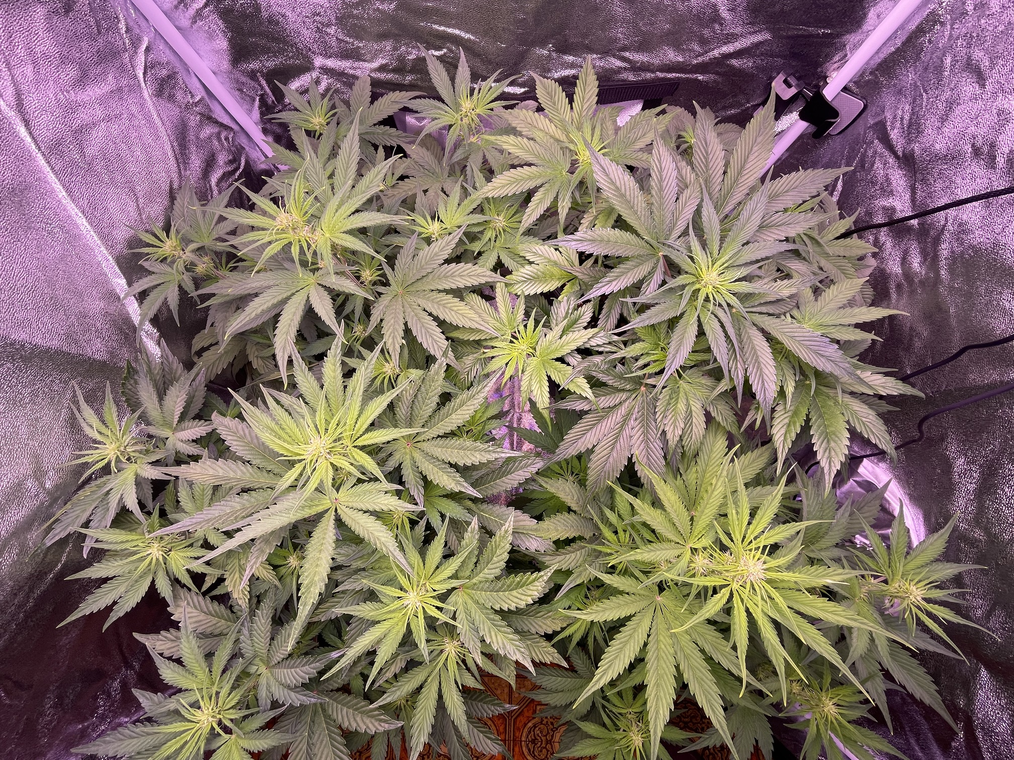 Yo Homies!!! Heute wieder gegossen und entlaubt. Denke das es den Mädels wieder besser geht. Habe sie 2 Tage mit sanften bittersalz und calmag Regen bestäubt. Denke das fanden sie nett. Geschadet hat’s nicht. Habe Düngeschema 150% angewendet. Habe die Lampe von 30cm auf ca 45cm erhöht…nebenbei kamen noch die caluma Taschenlampen an ![]()