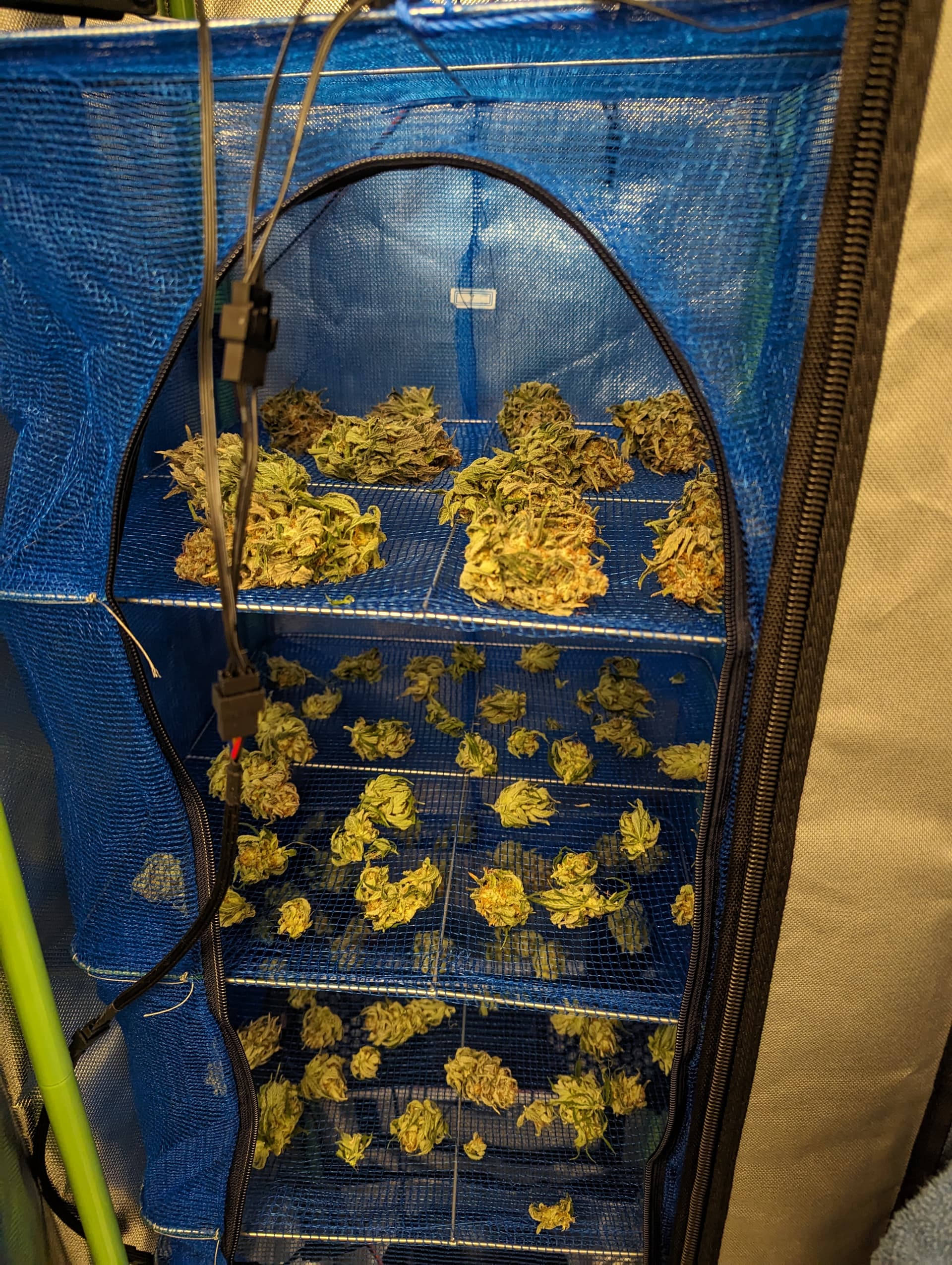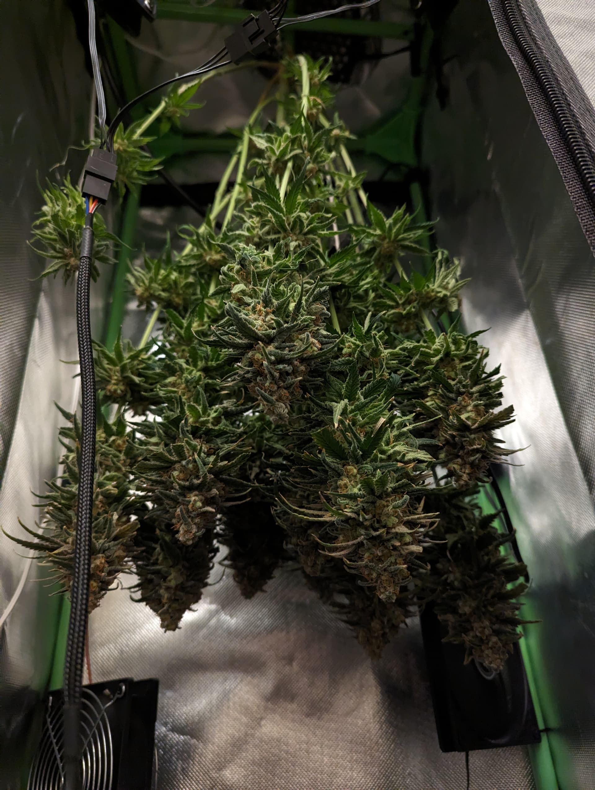 Lasse den Luftbefeuchter zwischen VPD 0,75 und 0,85 regeln. Freitag oder Montag dann wiegen und in die Bags.