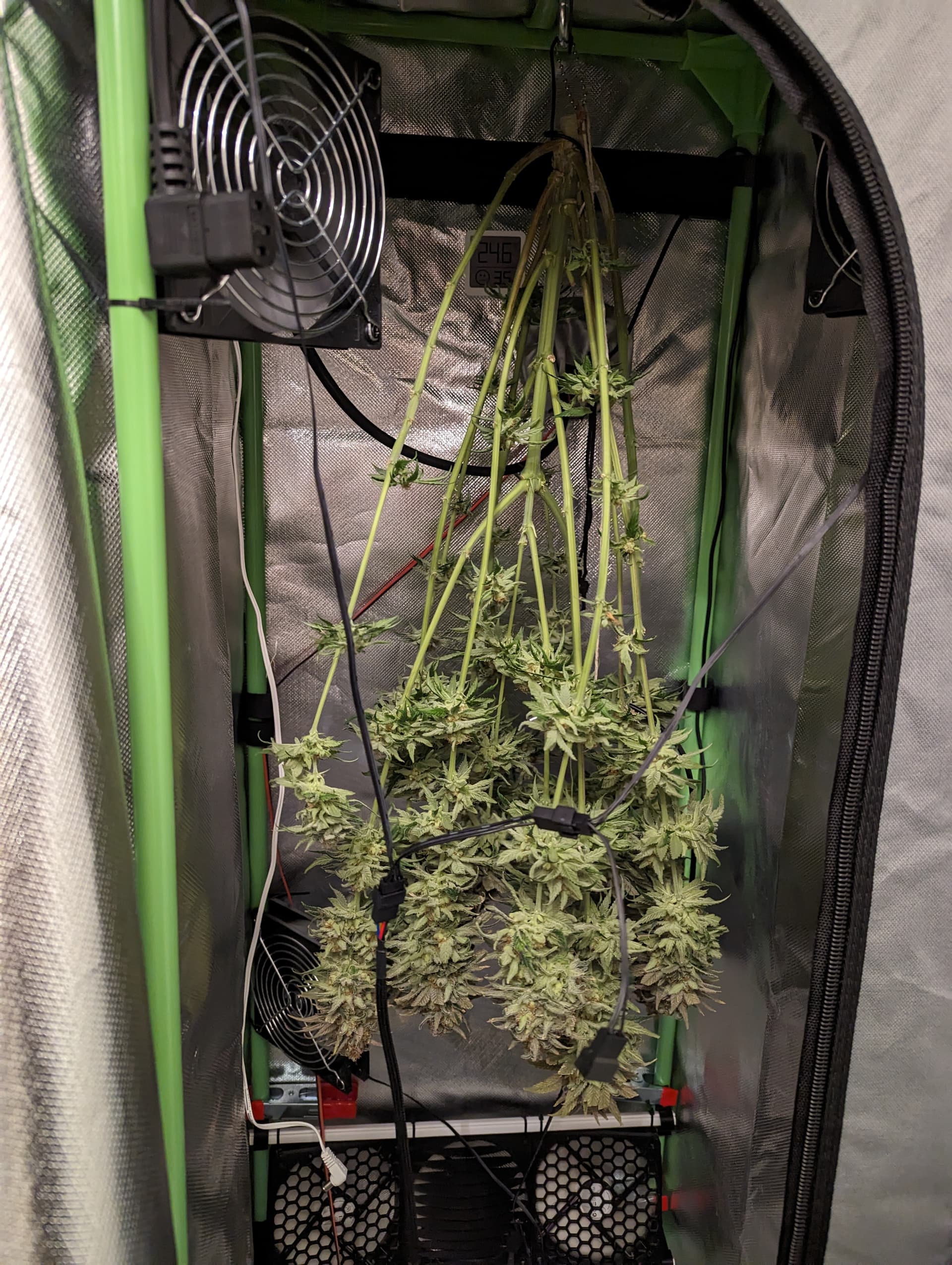 Die LED etwas zu drosseln war wohl eine gute Idee. Habe dadurch ein Grad gewinnen können und den Geruch außerhalb des Zeltes deutlich reduziert.
