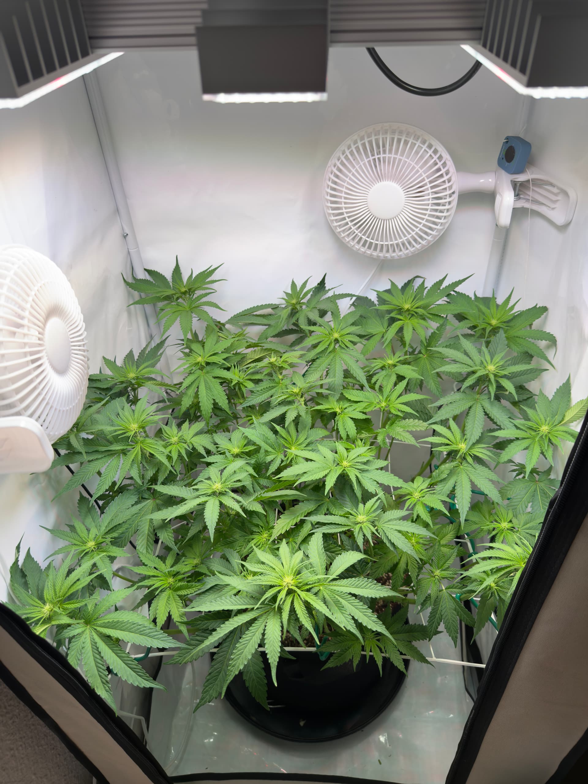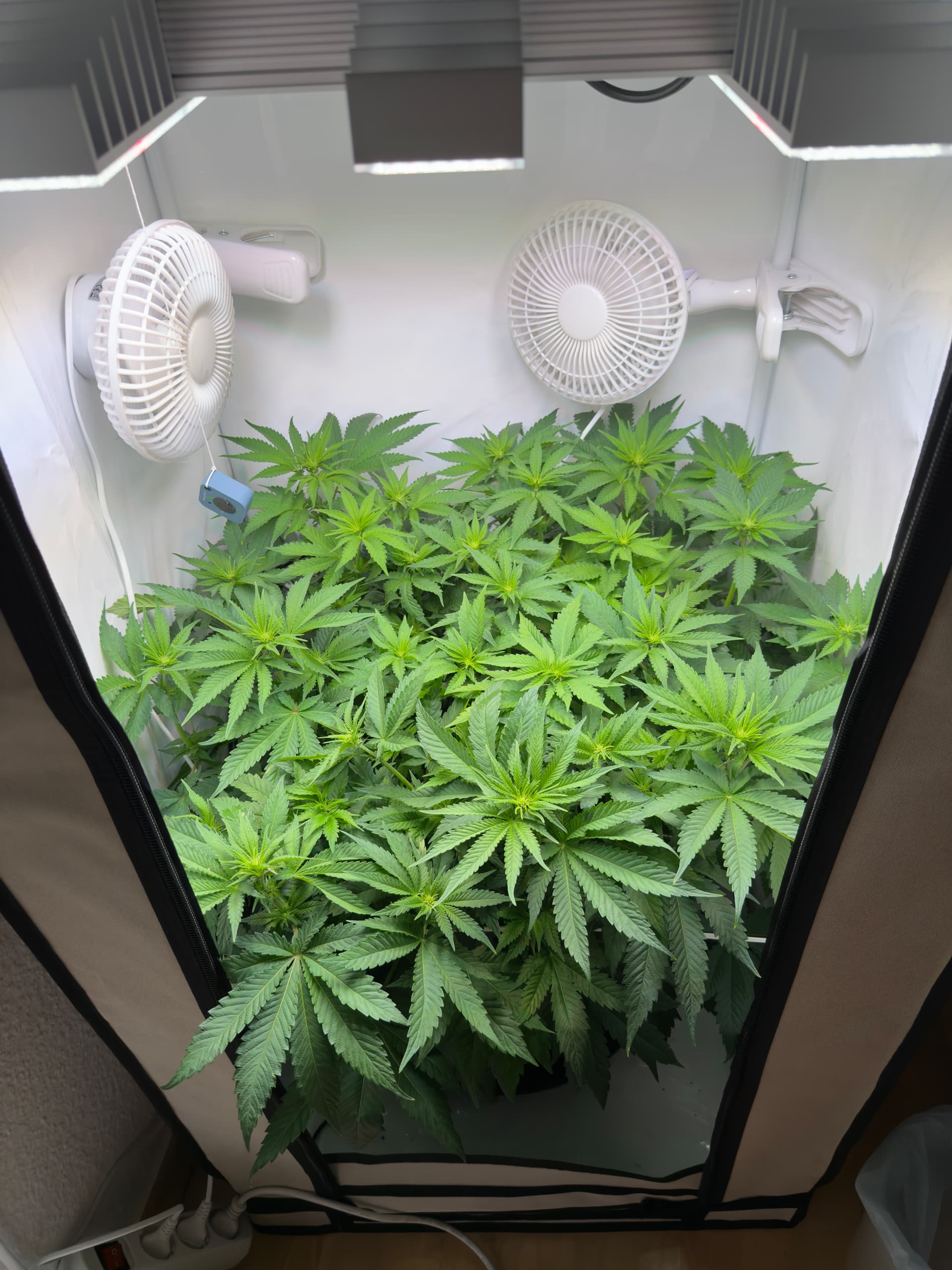 Der Grow befindet sich aktuell in der 8. Woche. Erst jetzt habe ich mich dazu entschieden, meine Erfahrungen und Eindrücke mit euch zu teilen. Vielleicht ist es sogar von Vorteil, da sich dadurch ein retrospektiver Blick auf die bisherigen Entwicklungen werfen lässt, während wir gleichzeitig die entscheidenden Blütenwochen gemeinsam angehen können.