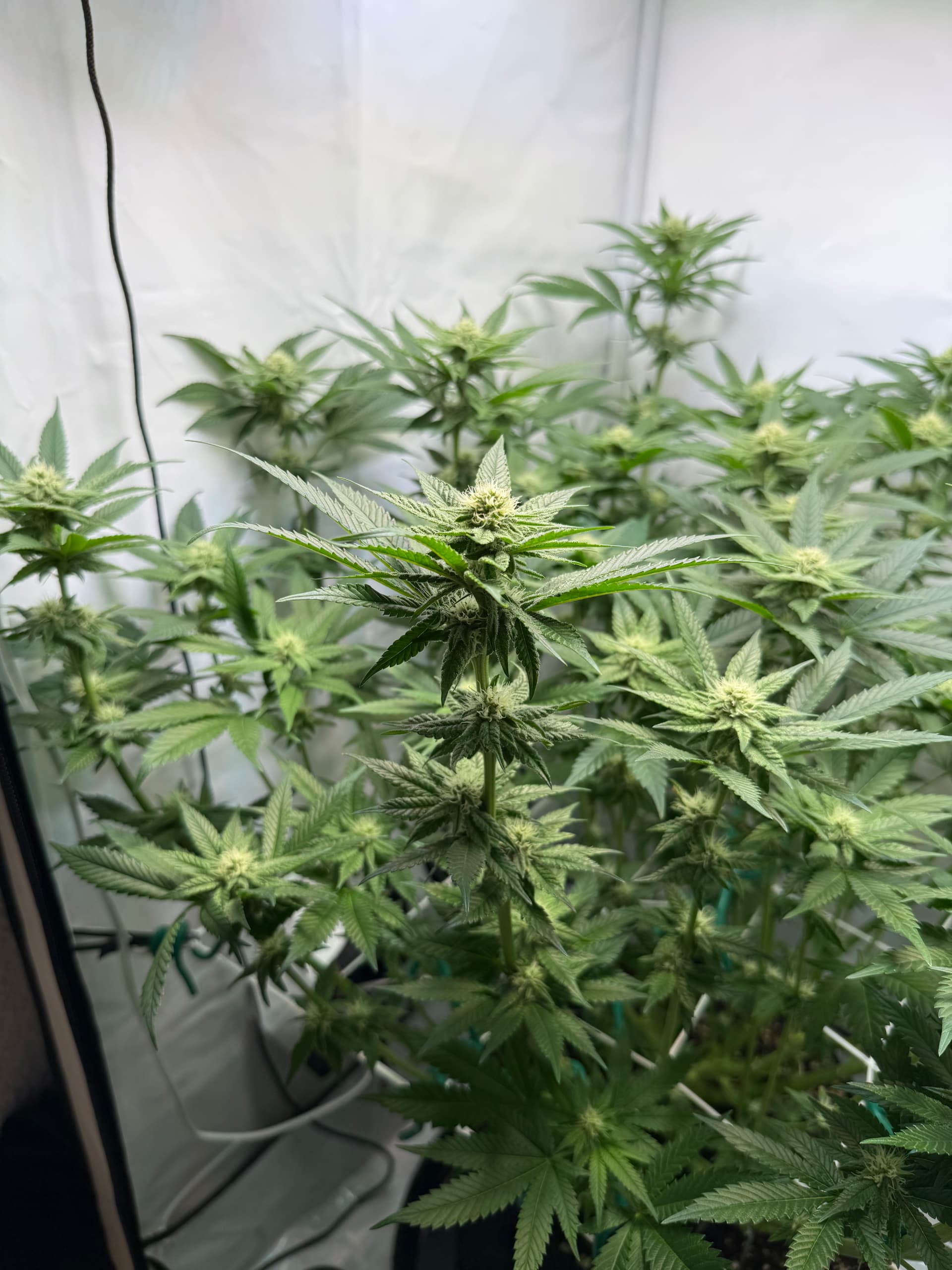 Die Pflanzen entwickeln sich prächtig. Der Stretch ist mittlerweile abgeschlossen, und die Blüten legen von Tag zu Tag sichtbar an Harz zu.