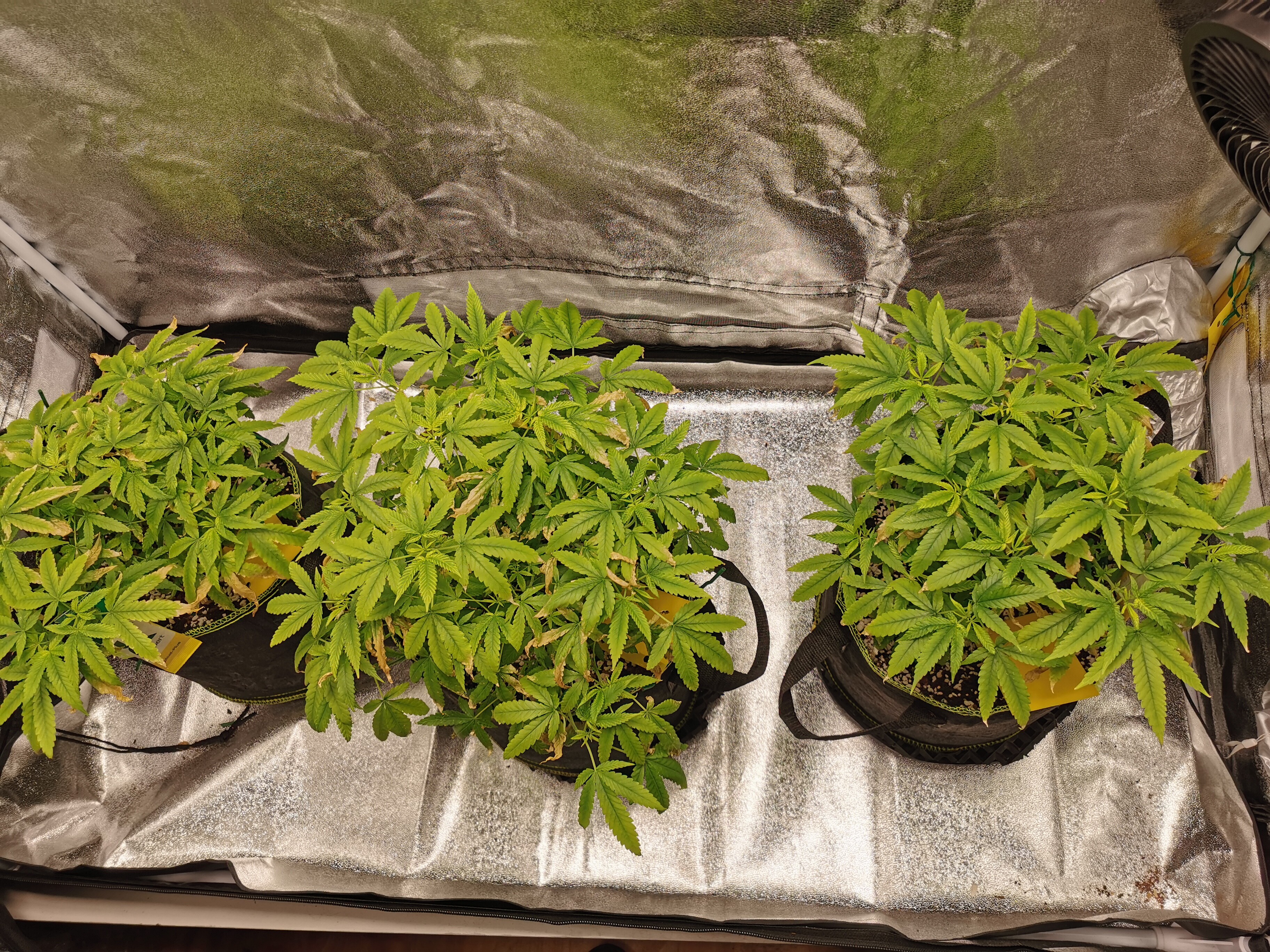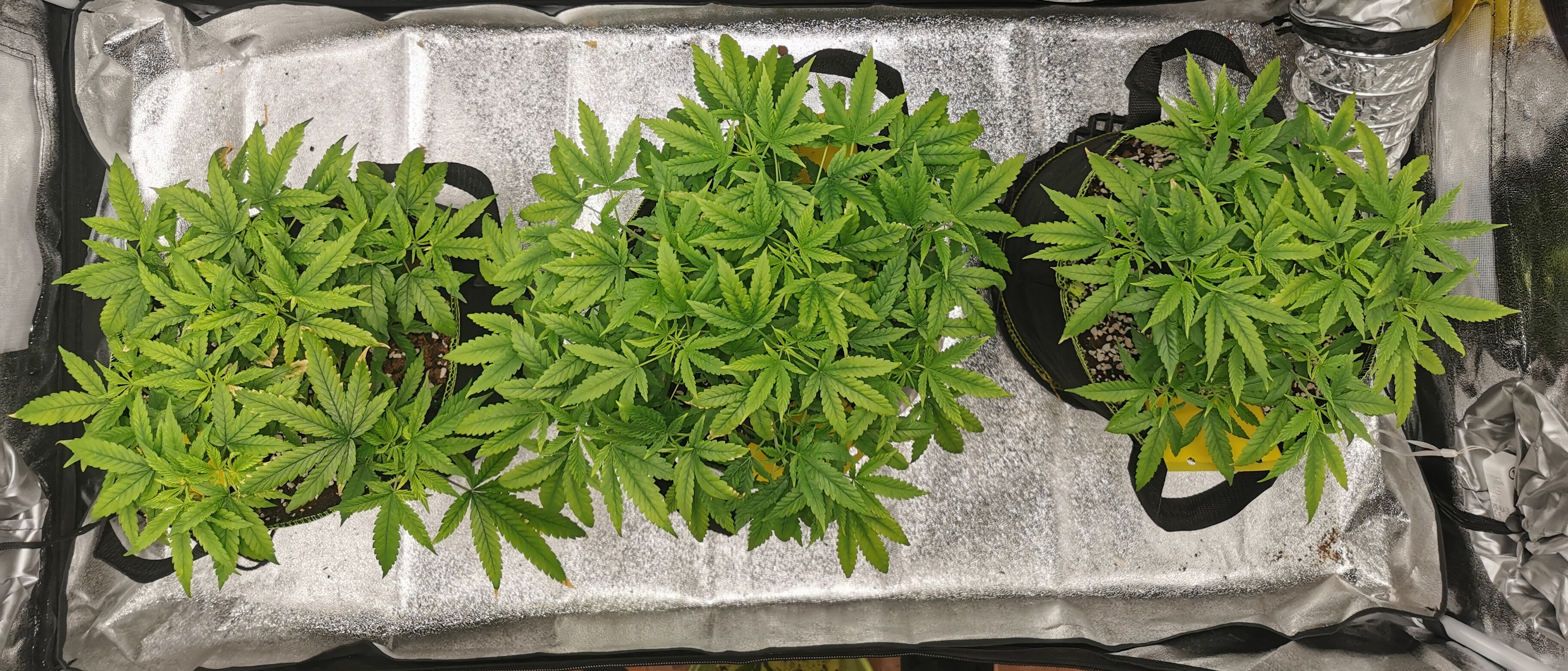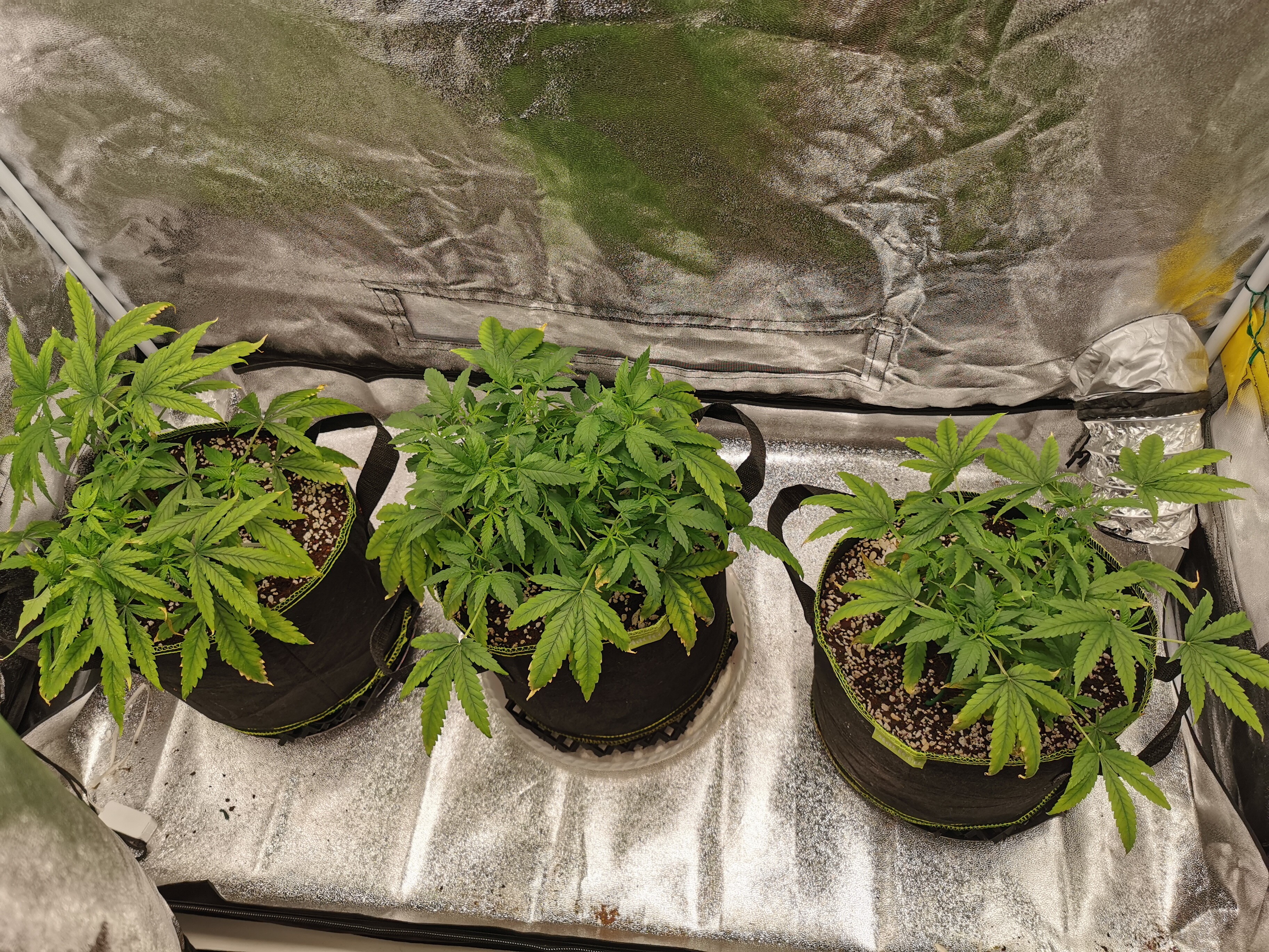Alle drei sind in 3.5L Plastik Töpfen gelandet und wurden mit einem EC von 0.6 angegossen. 2 Tage später getoppt und dann erstmal in Ruhe gelassen.