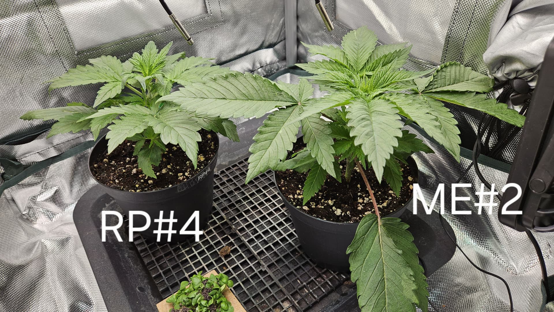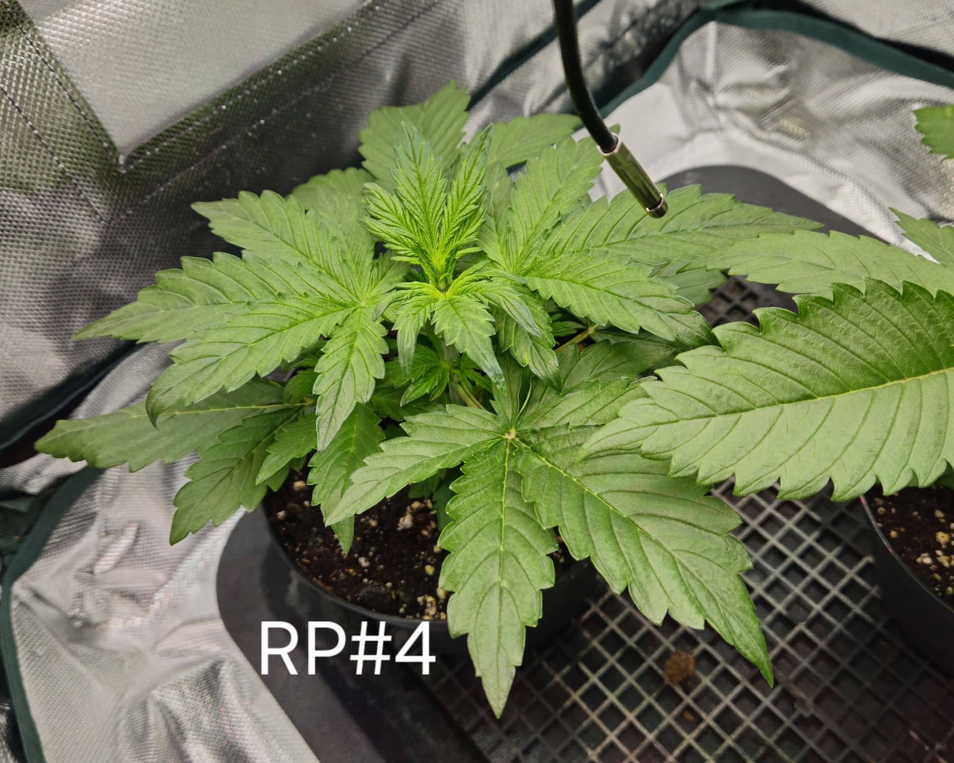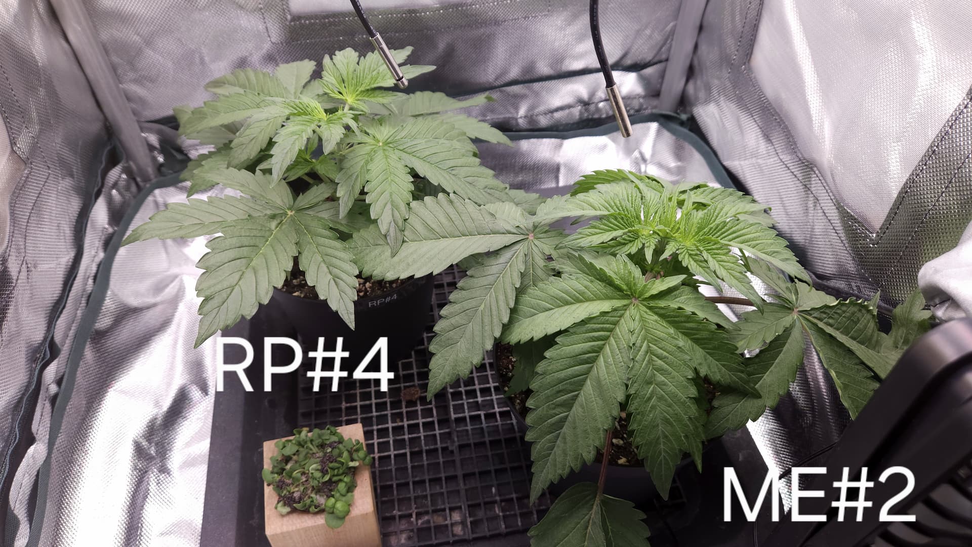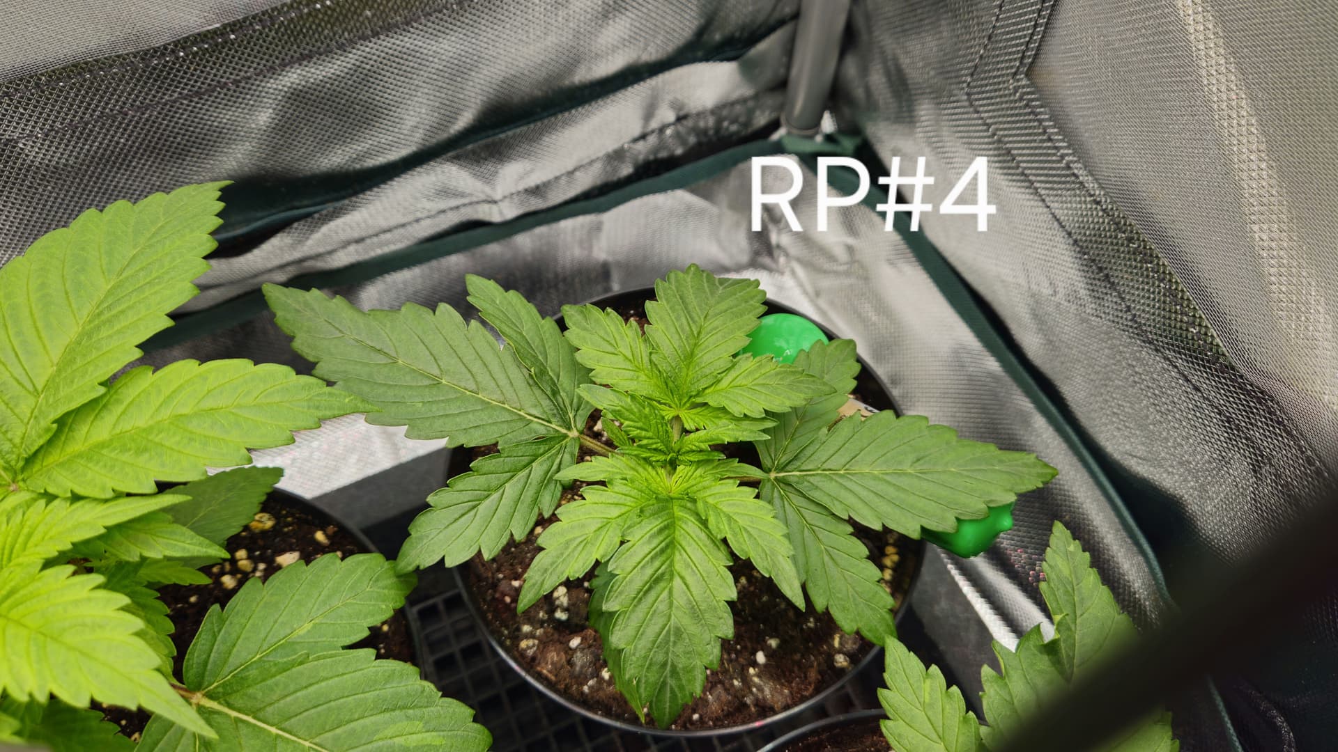 Ich überlege, ob ich RedPure#4 zusammen mit MimosaEvo#2 in einen 15L-Topf setze. Pro: RedPure wächst langsam – vermutlich wird sie die 50x50-Fläche nicht ausfüllen. Contra: Die RedPure wird viel früher fertig → spätere Höhenprobleme wahrscheinlich. Einzelner Topf für MimosaEvo#2 passt platztechnisch nicht mehr ins große Zelt.