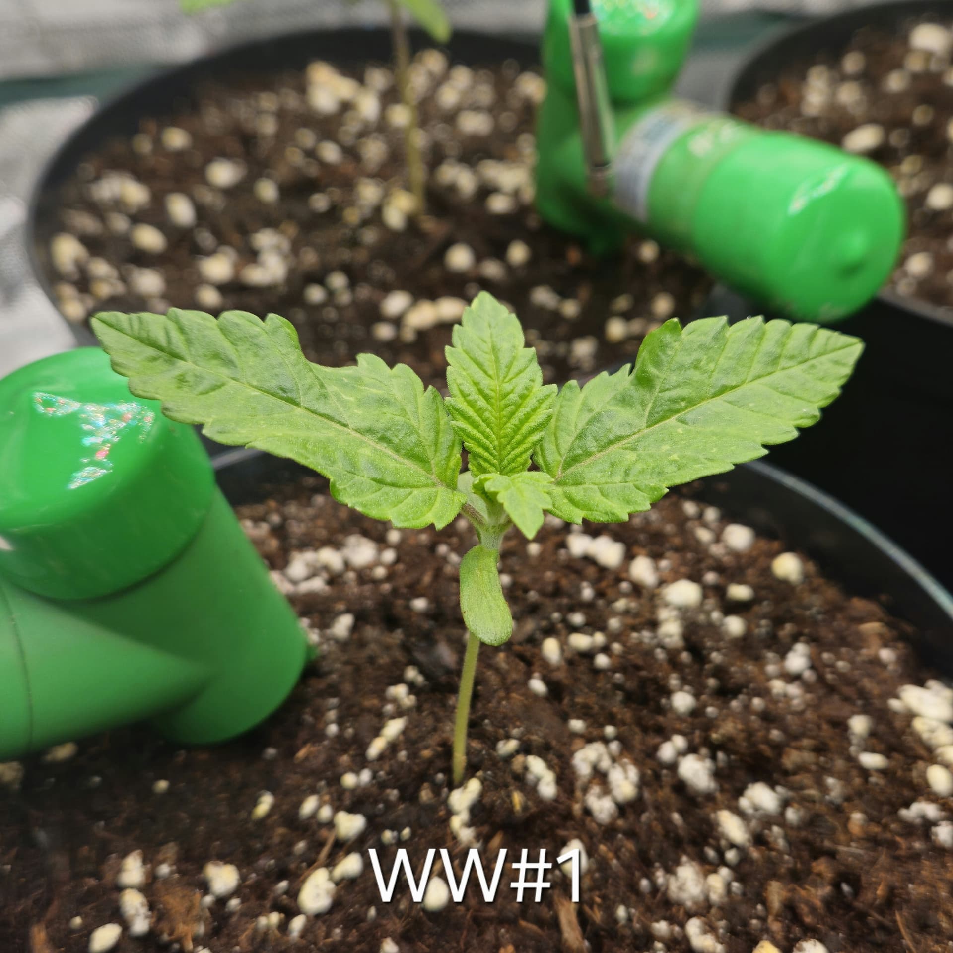 WhiteWidow#1, MimosaEvo#3 und RedPure#4 wurden heute getoppt. Das Umtopfen in 15L-Stofftöpfe ist für diese Woche geplant.