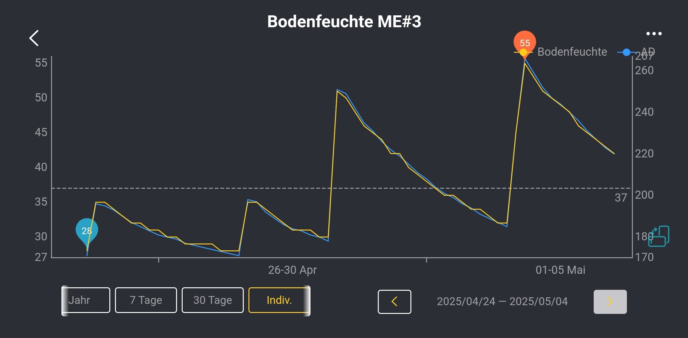 Ansonsten wurde zum ersten mal gegossen mit 50ml pH 6,4; EC 0,4; VPD zwischen 0.6 - 0.7.