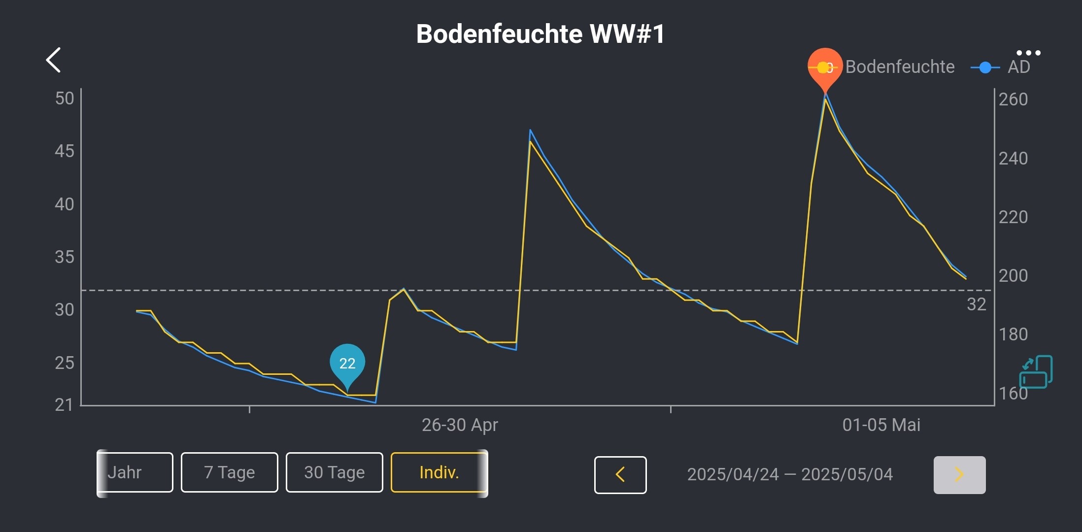 EC 0.9 gabs erst vor 2Tagen zum ersten mal. Durch die Anhebung auf VPD 0.9 und PPFD 400 vermute ich eine Unterversorgung. Zwar gebe ich CalMag Xtra aber ich bin noch bei 50% vom Schema.
