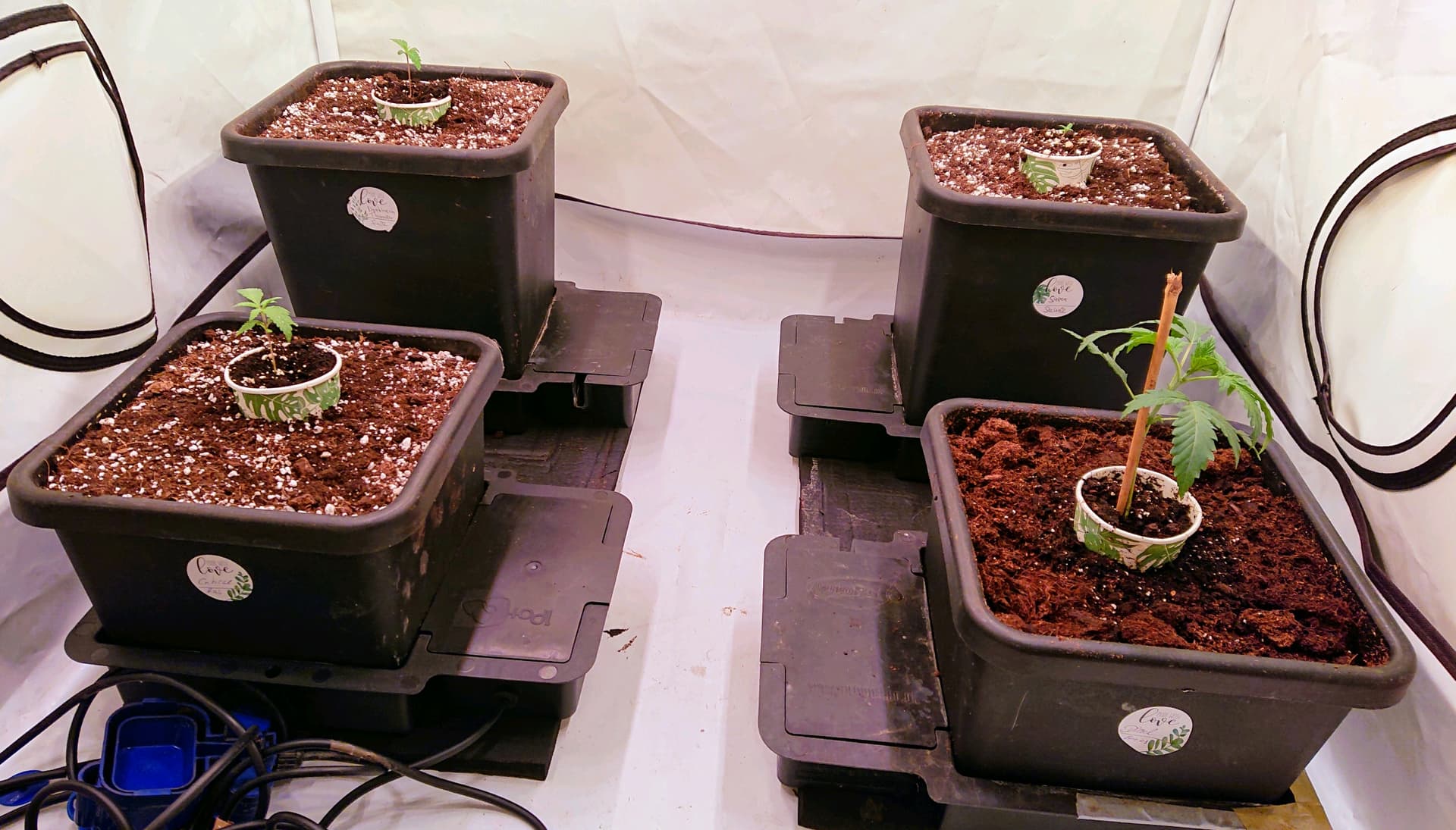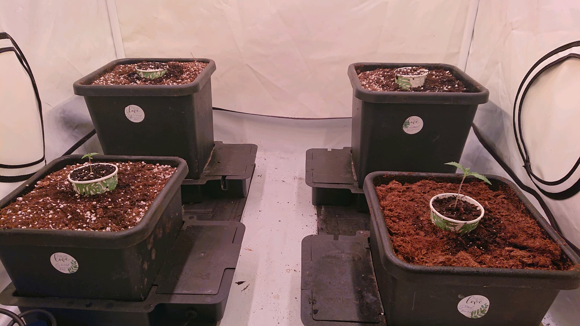 Kleines Update vom Growreport. Hab mich doch umentschieden und werde den Report doch hier weiterfĂŒhren. Wahrscheinlich gibt es nur dann und wann kurze Updates weil die Zeit bei mir zunehmend knapper wird. Nachdem es die letzten Wochen ehr turbulent zuging, konnte ich nun innerhalb der letzten 72h vier Seeds zum keimen bringen. Heute wurden sie zur Aussenstelle gebracht und eingetopft. Ich habe zwei