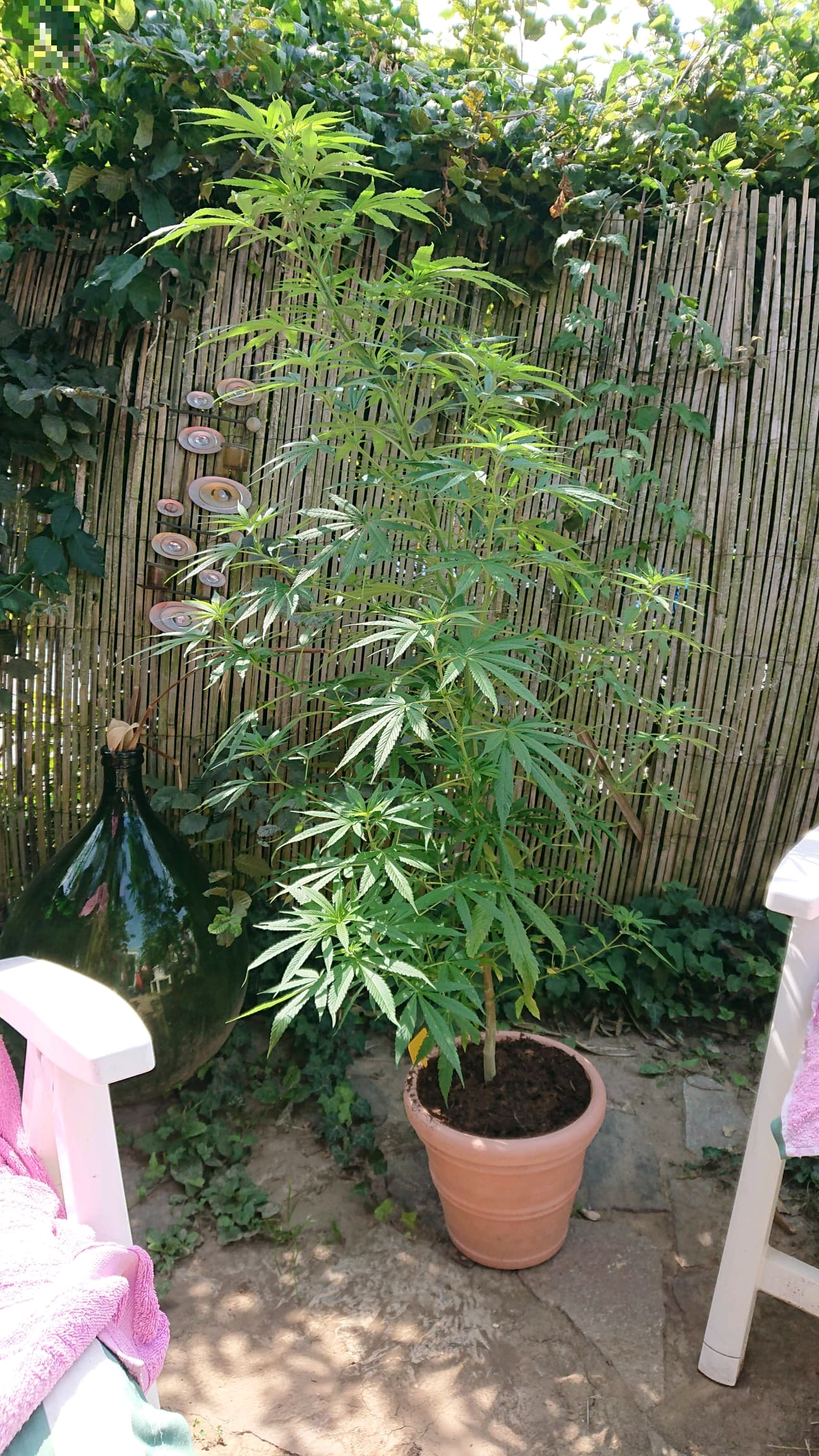 zum topfen vorbereitet. Die Seeds werden wie die Autoseeds vorher auch mittels der Topf in Topf Methode eingepflanzt. Ich hoffe nun, dass die vier das Licht der Welt erblicken und es nicht wieder eine weitere Nullrunde unter Tage gibt. Die Mimosa Cake habe ich nach draussen gestellt, sie leistet nun der Banana gesellschaft. Zum Abschluss noch ein paar Bilder von drinnen und draussen.