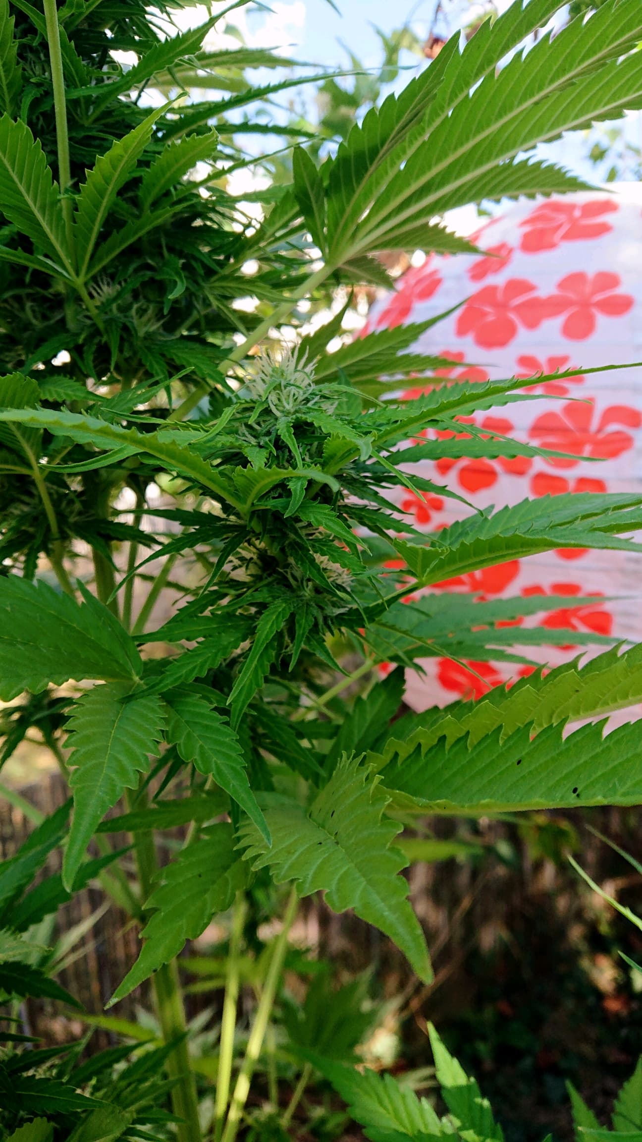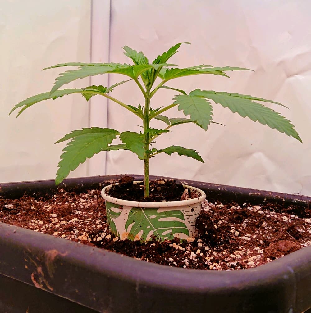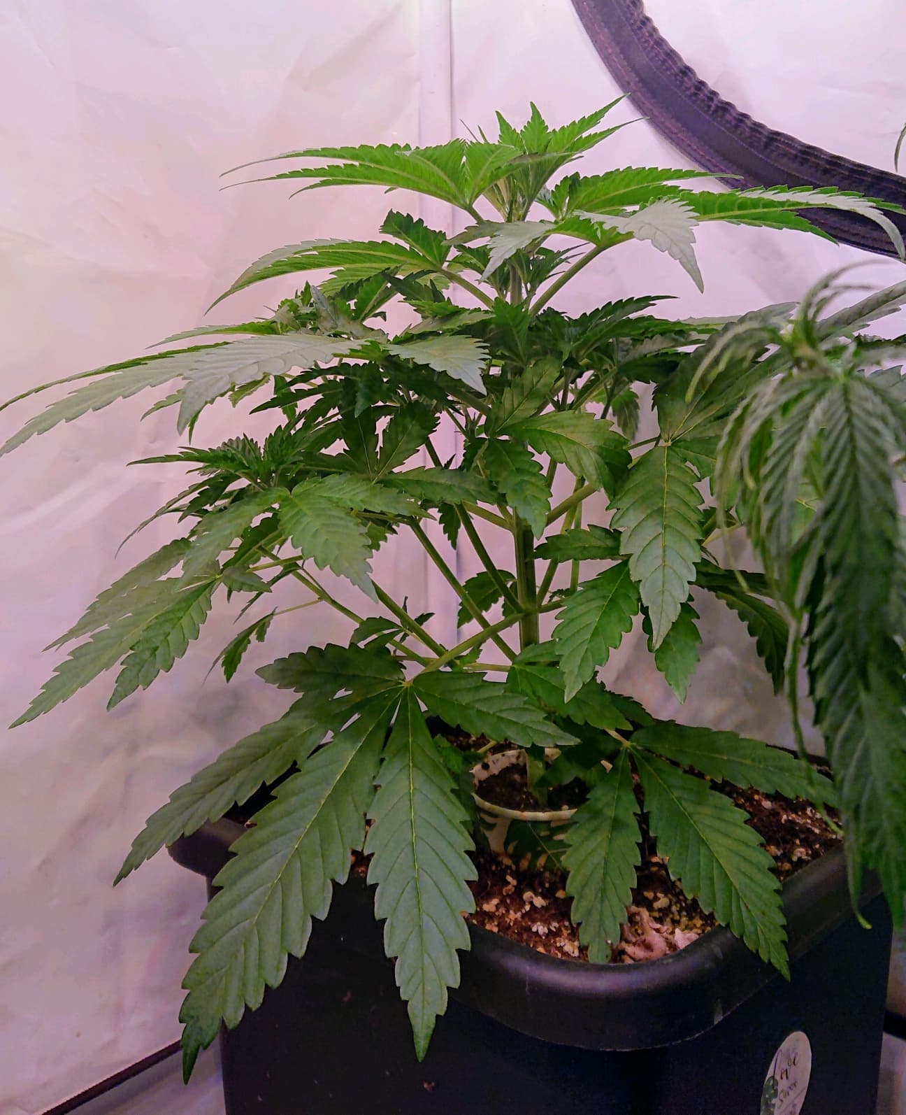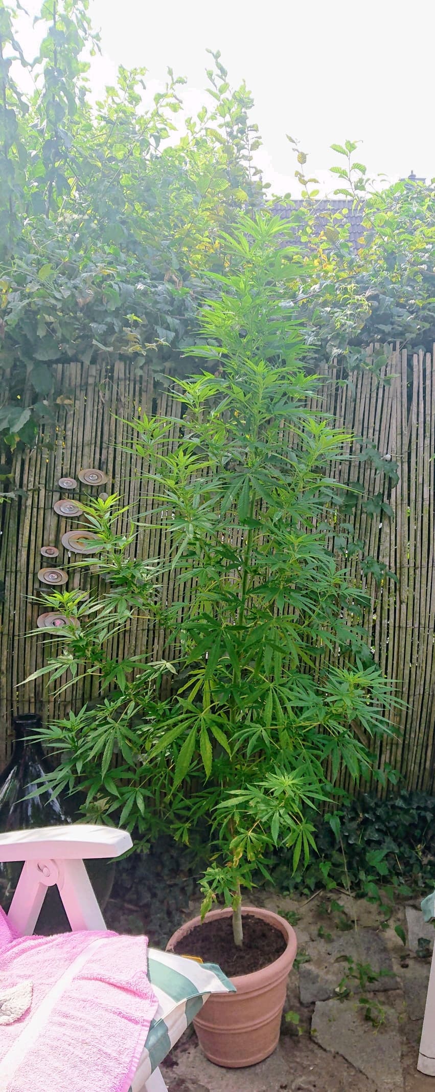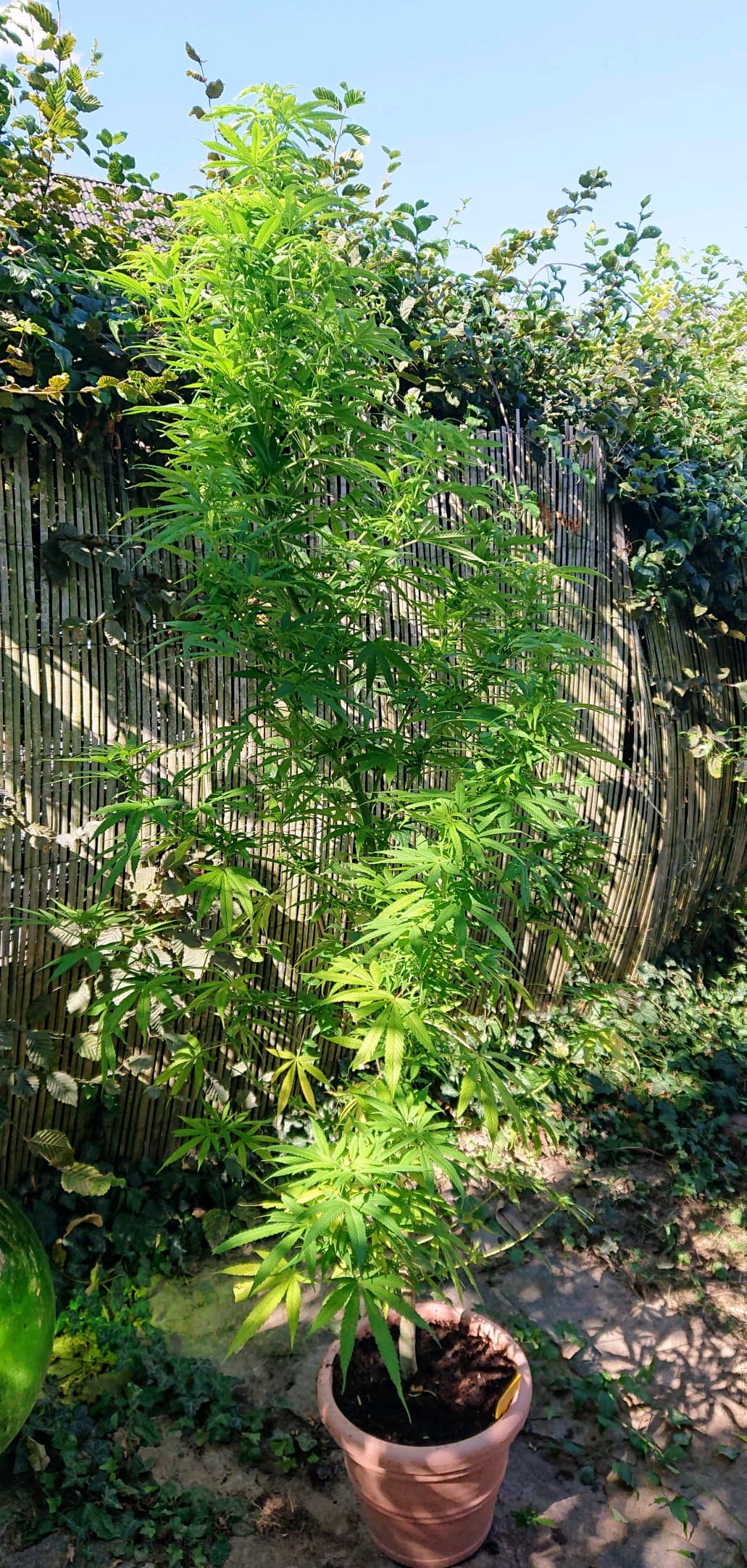 Hier die Mimosa Cake, ist noch gut in die höhe geschoĂen und beginnt nun fleisig an zu budden. Wie man sieht funktioniert die Topf- in Topf Methode ganz gut und erspart der Autoflower dass umtopfen.